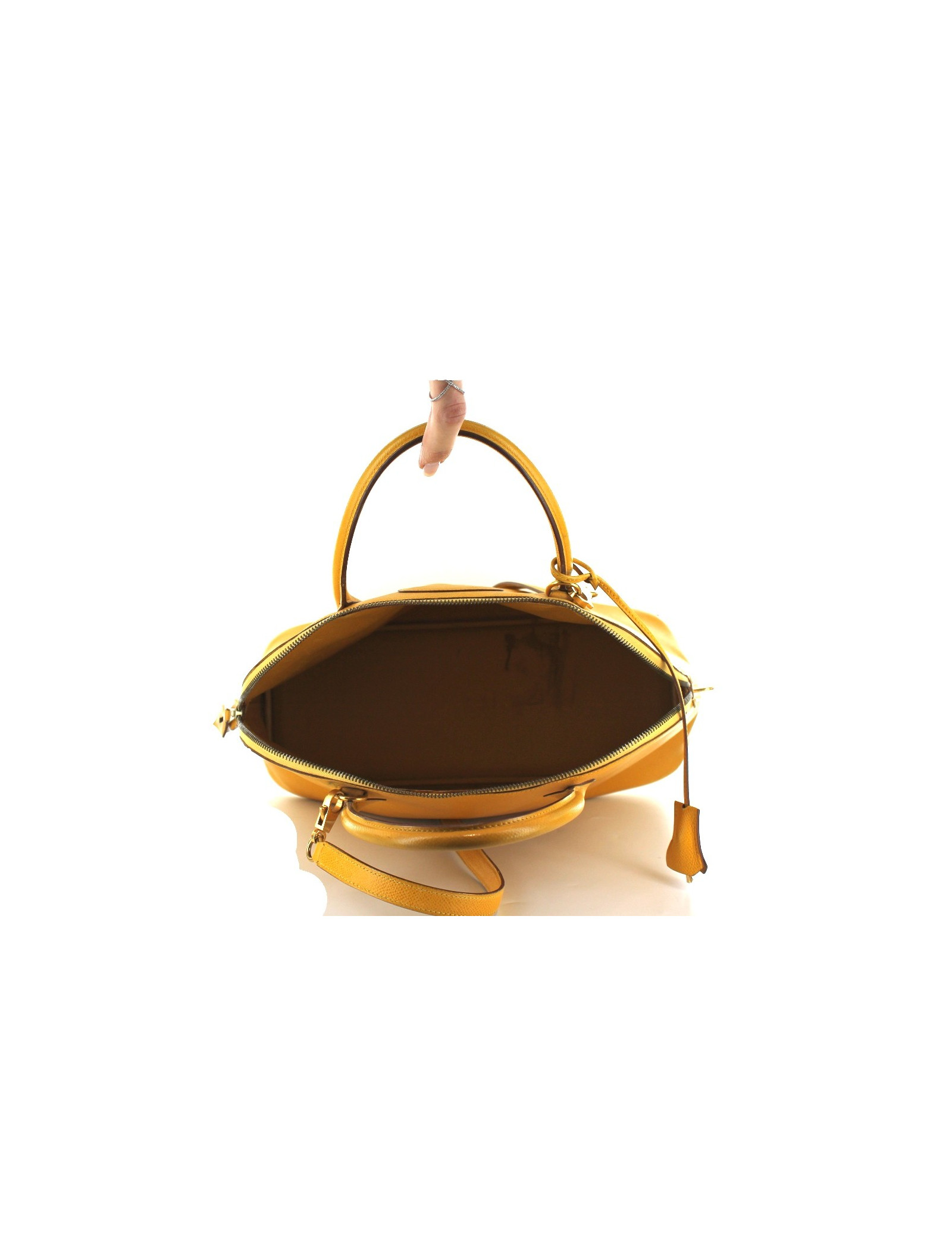 Bolide HERMES en cuir jaune orangé bijouterie dorée