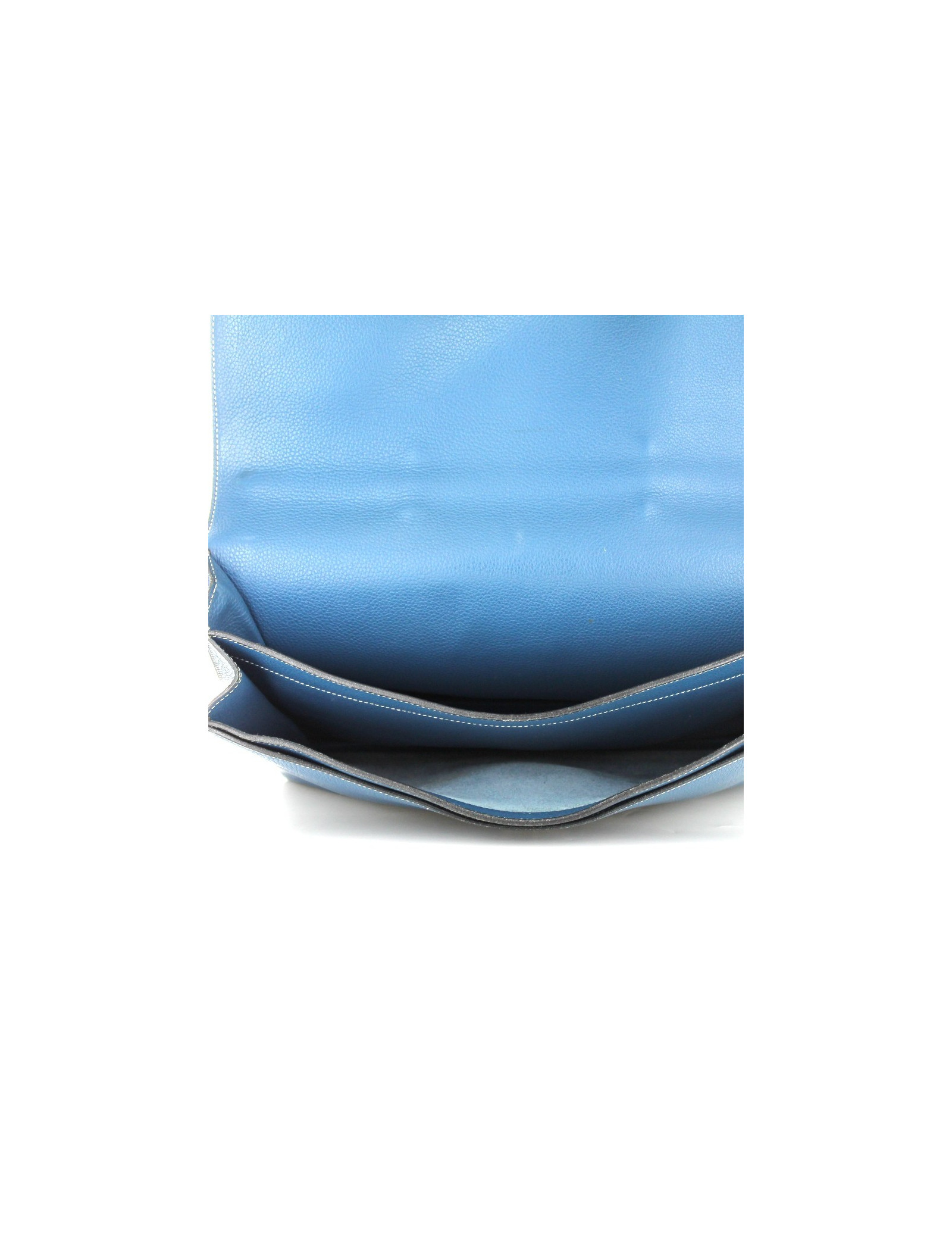 Sac à dépêches HERMES double-soufflet en cuir bleu