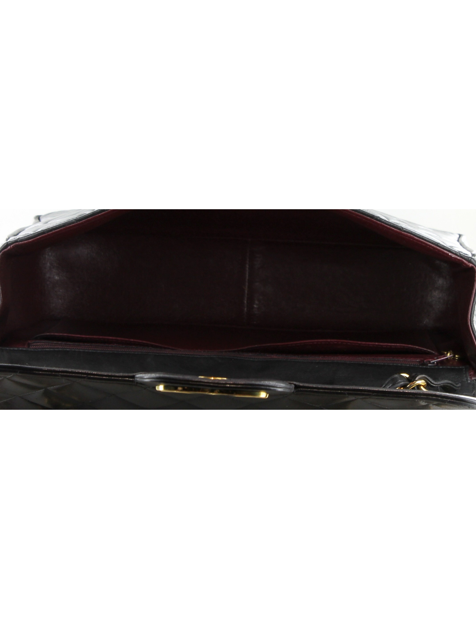 Rare sac des années 90, maxi jumbo CHANEL en veau lisse noir et ferrures dorées (alliage à l'or 24 carats) avec micros rayures.