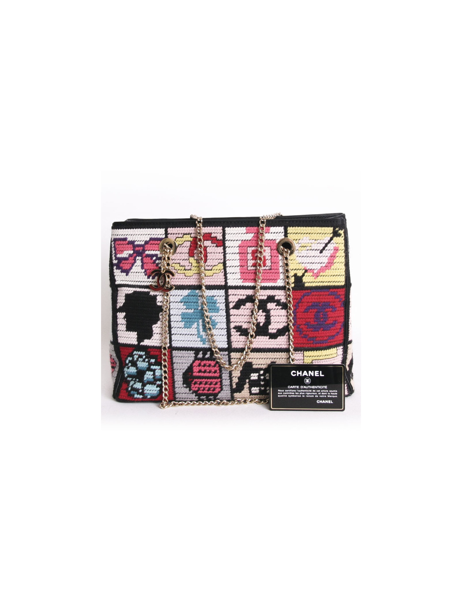 Joli sac CHANEL collector , en crochet multicolore, idéal pour les jours ensoléillés!