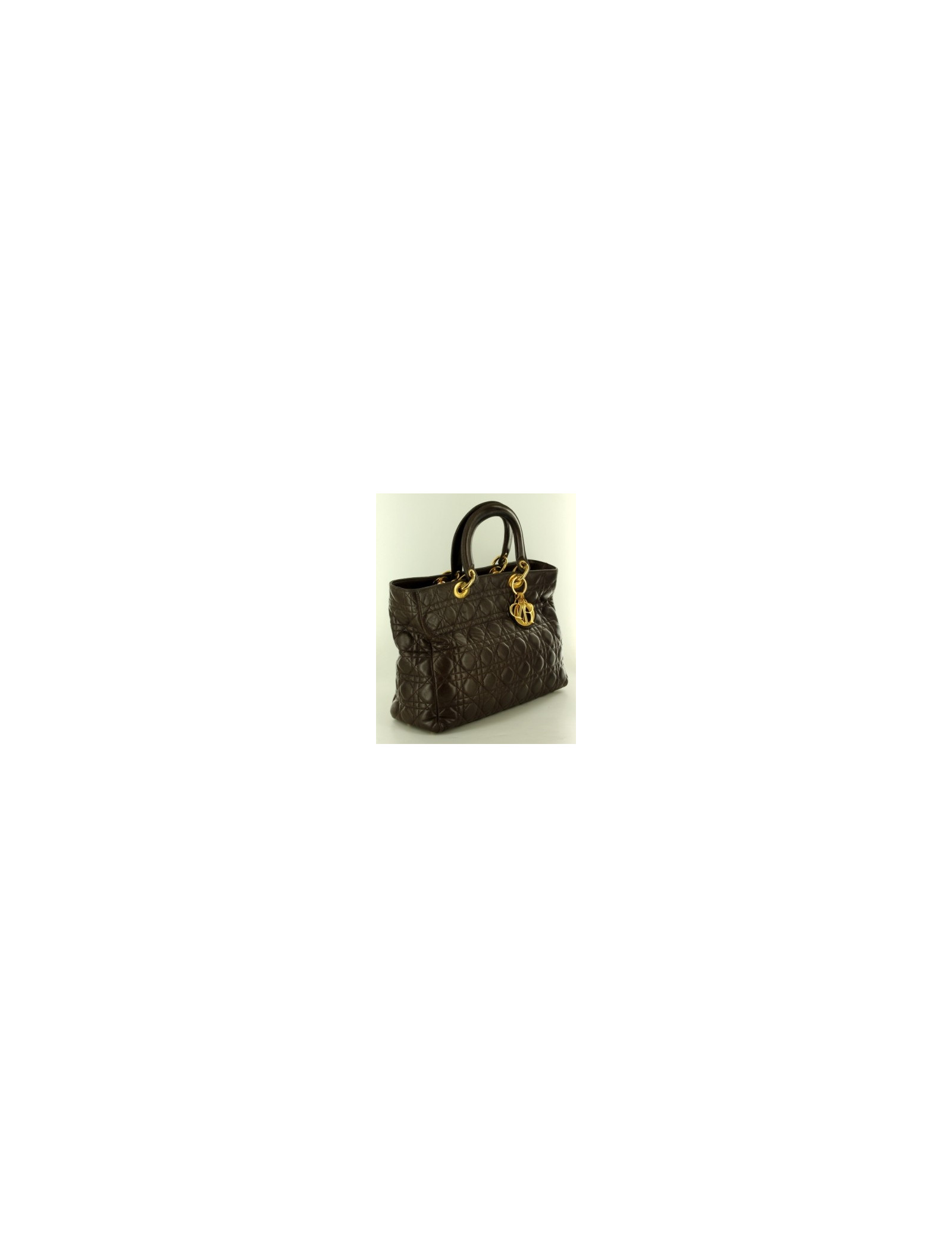 Sac iconique Lady DIOR , en cuir lisse souple marron , avec une très belle patine,