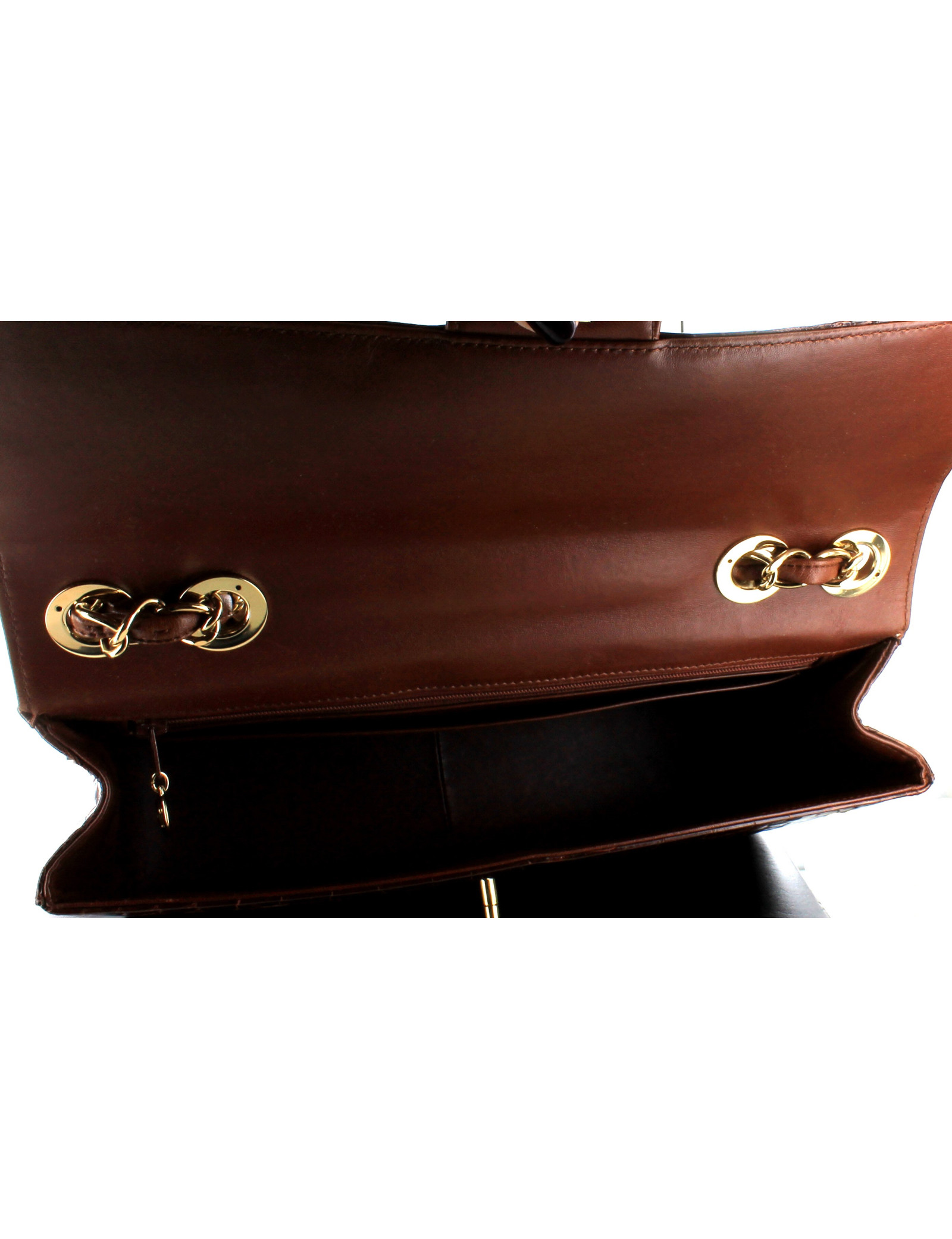 Magnifique sac jumbo CHANEL, en cuir cuir croco marron.