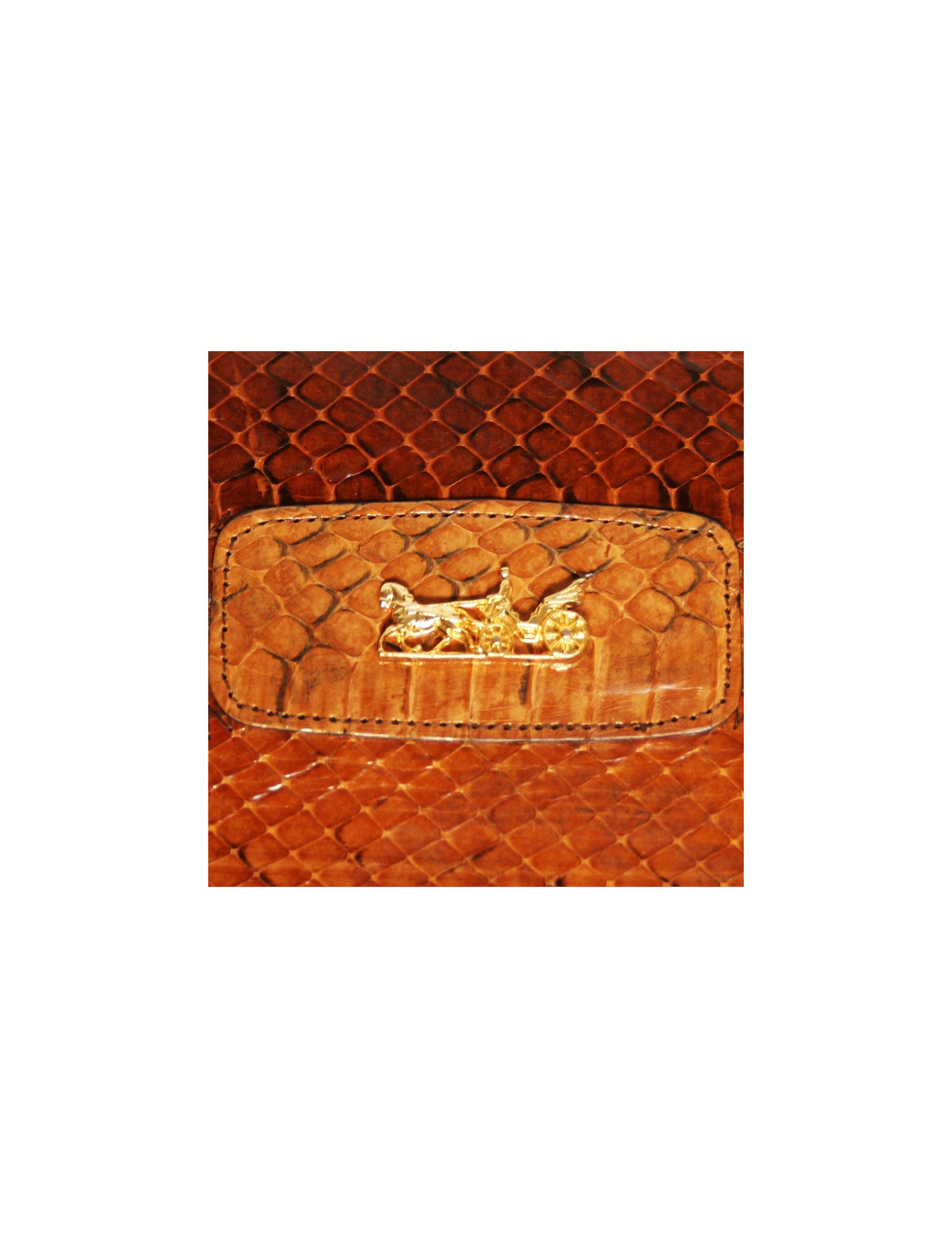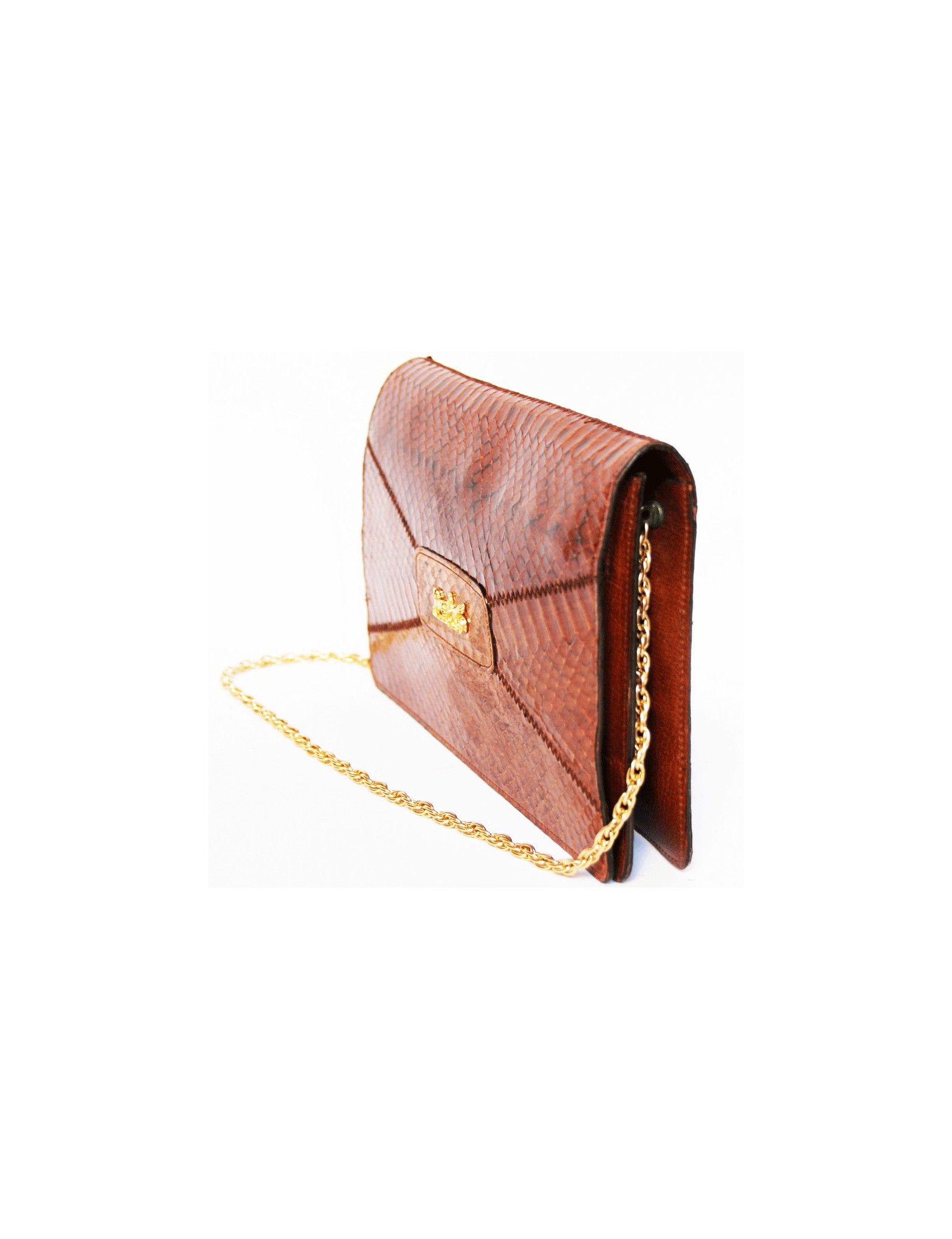 Sac-pochette vintage en python verni mat dans des tons chauds, beige, marron.