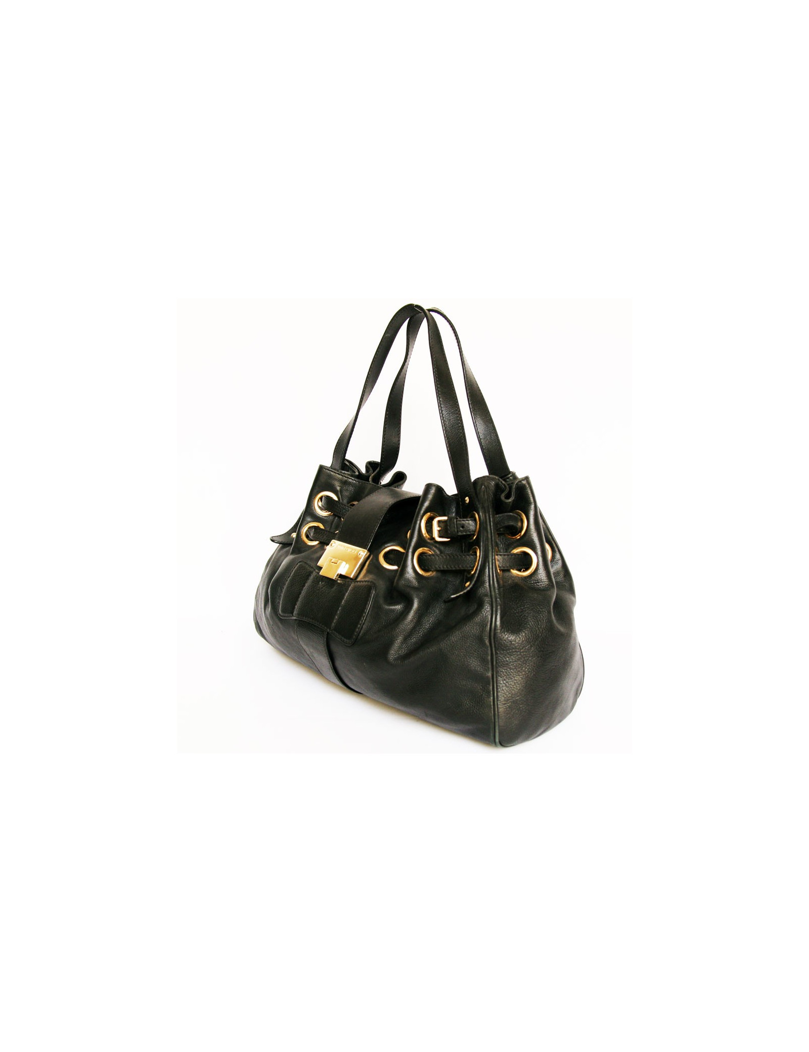 Porté par des célèbres stars, le sac Ramona JIMMY CHOO en cuir grainé noir sera habillé vos tenues quotidien. Effet maxi froncé accompagné d'une boucle en métal doré.
