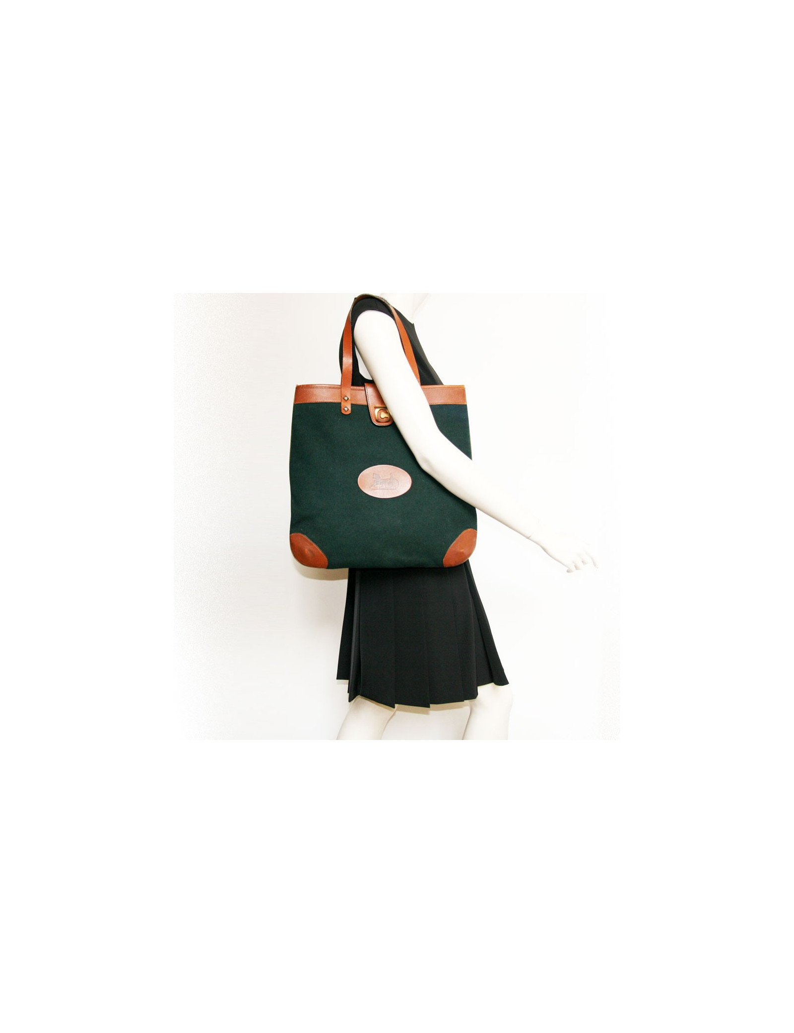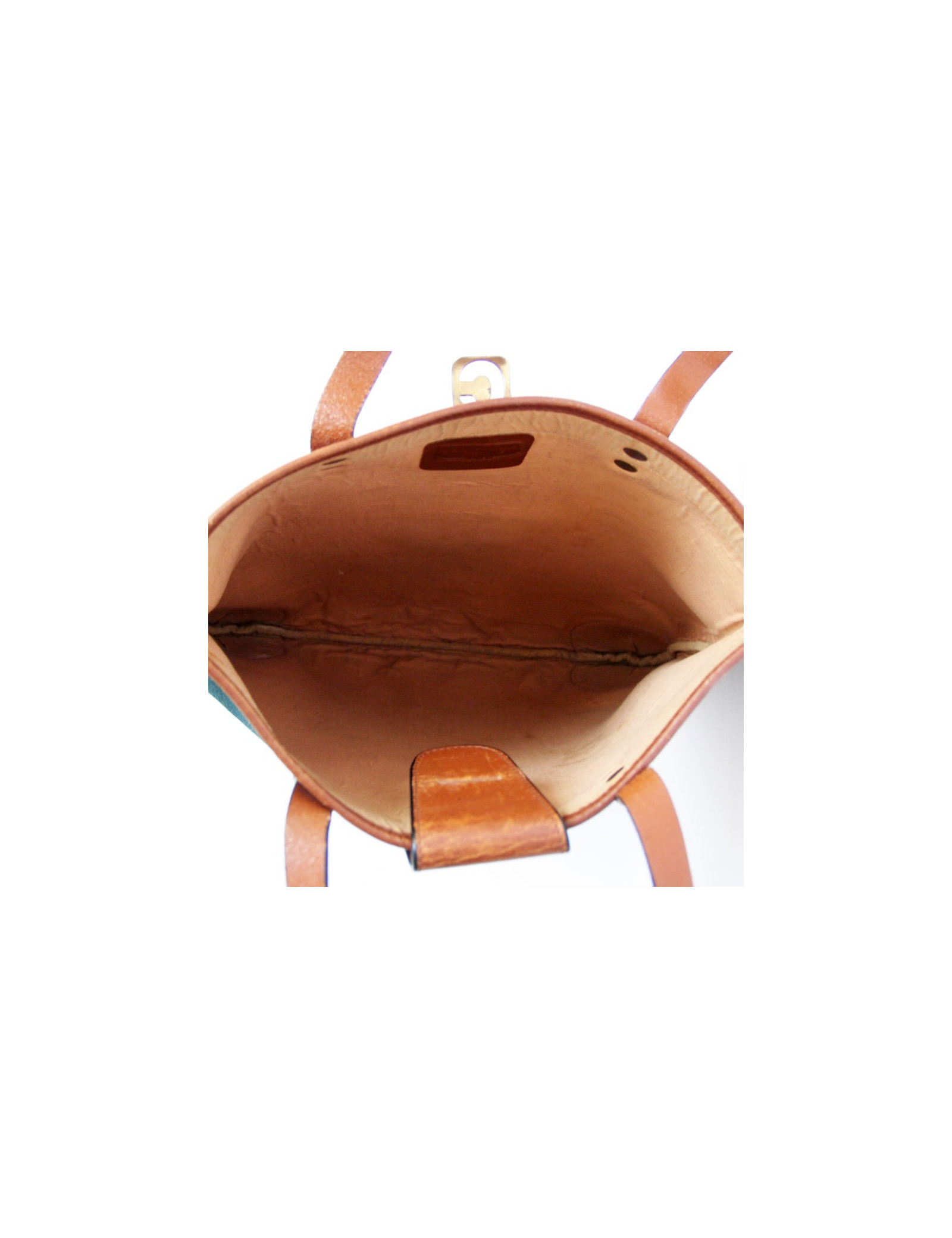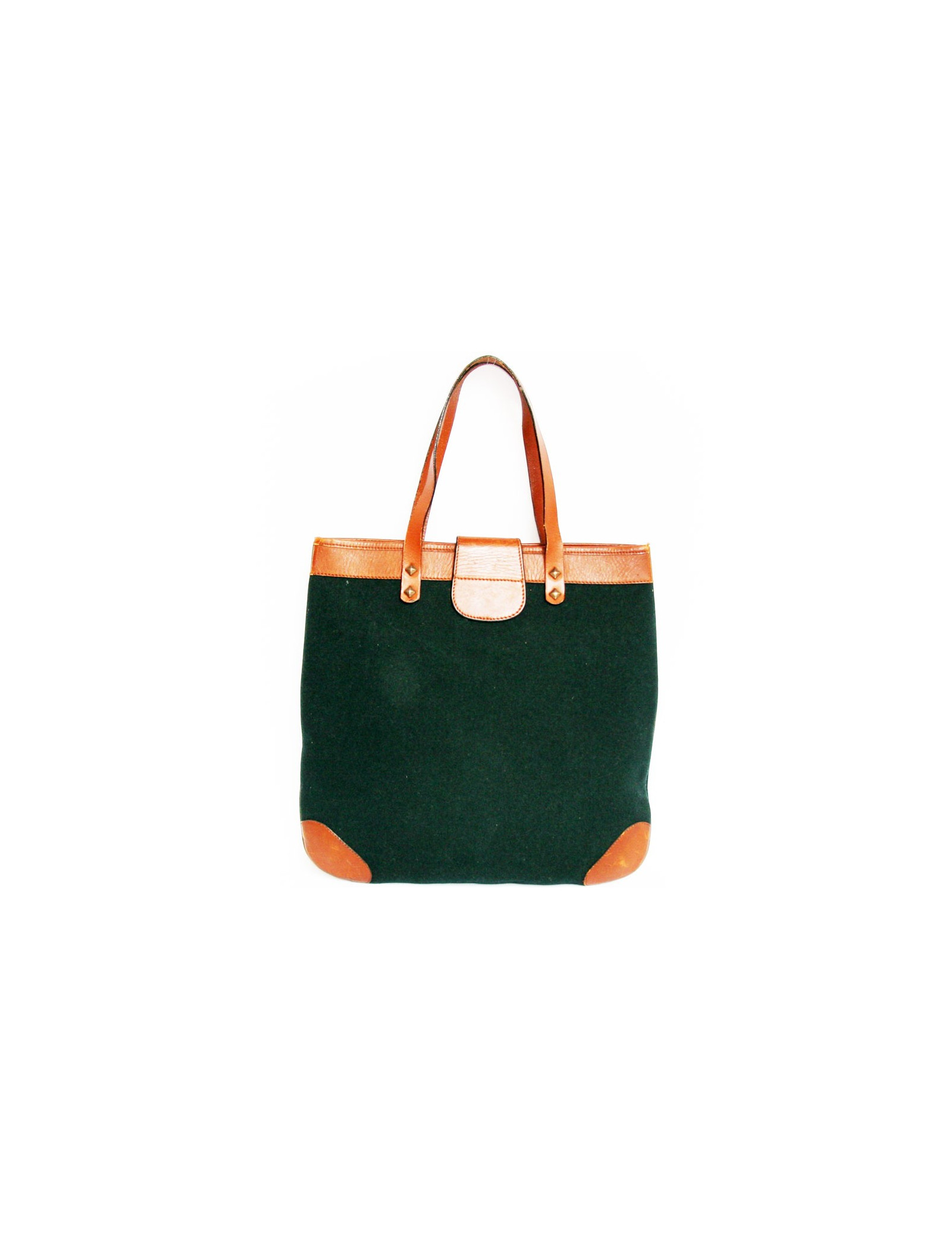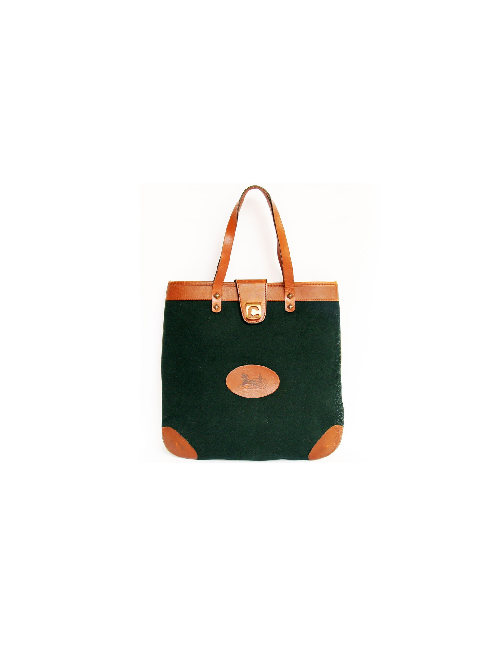 Rarissime sac CELINE en feutrine verte et cuir marron.