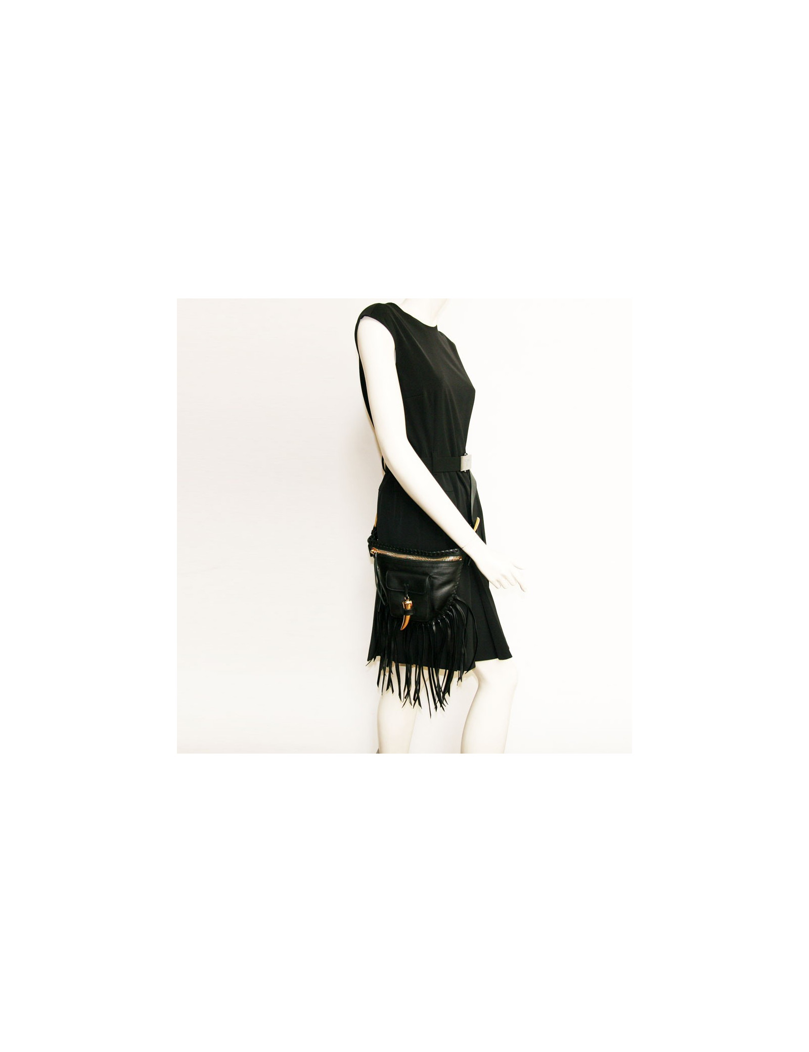 Ceinture sac GIUSEPPE ZANOTTI cuir noir franges