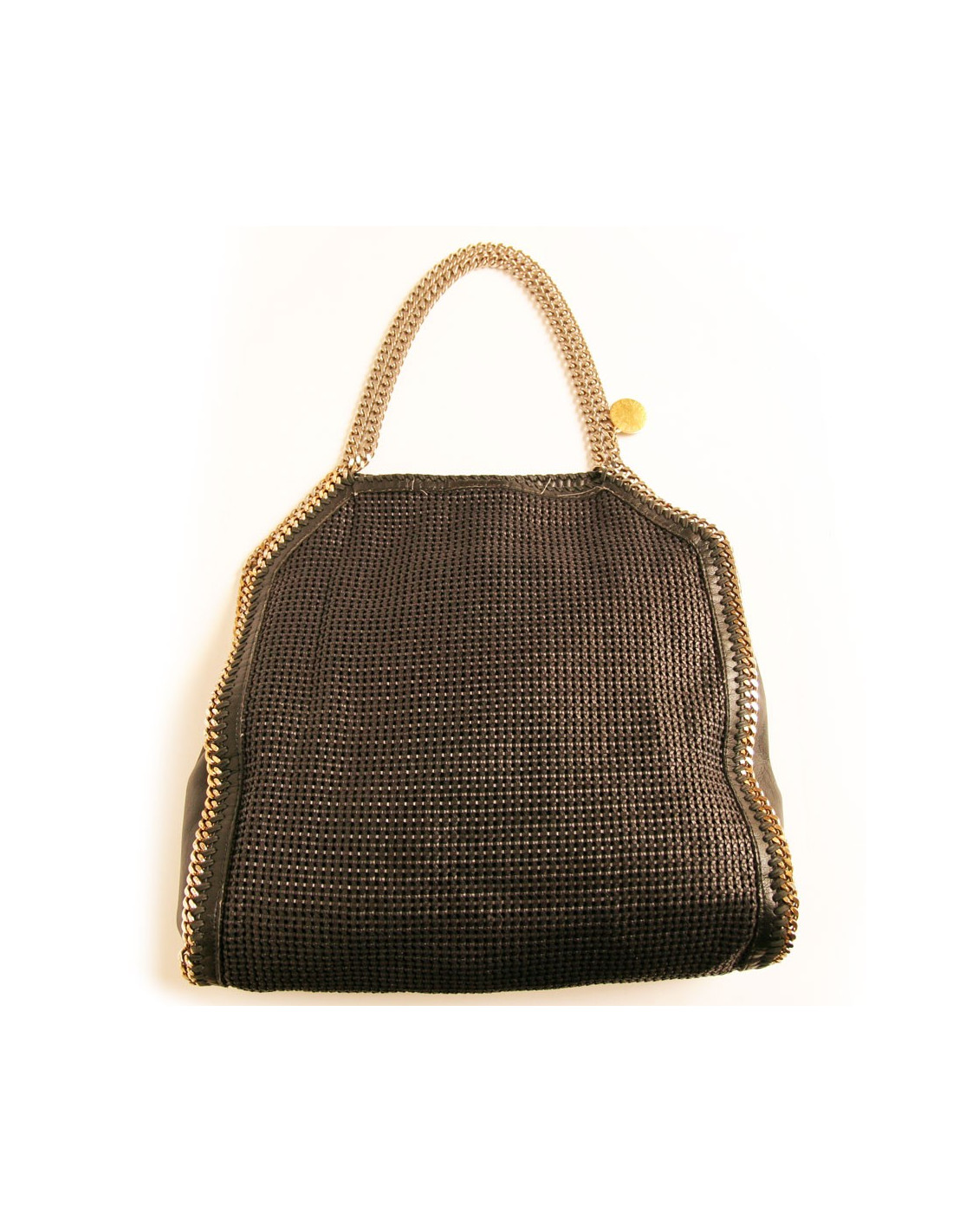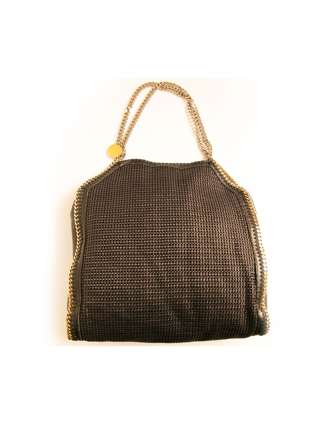 Sac Falabella Stella Mc Cartney imitation cuir tressé noir avec chaines en métal argenté et doré