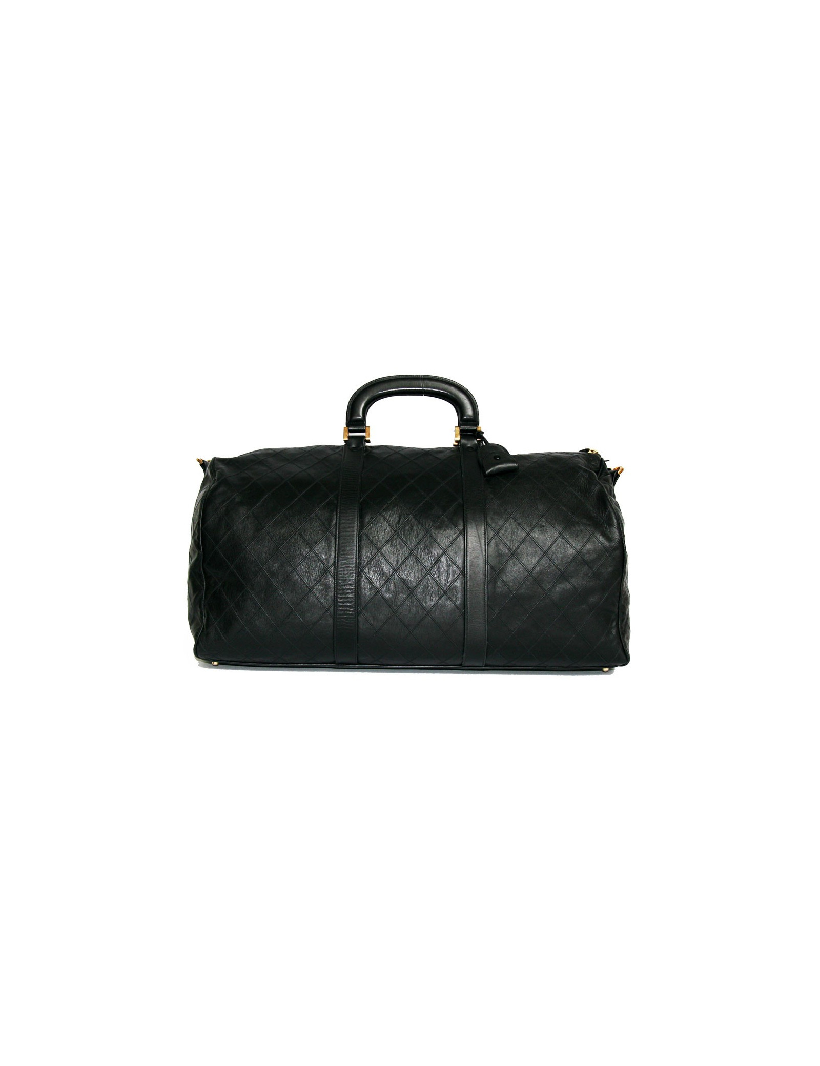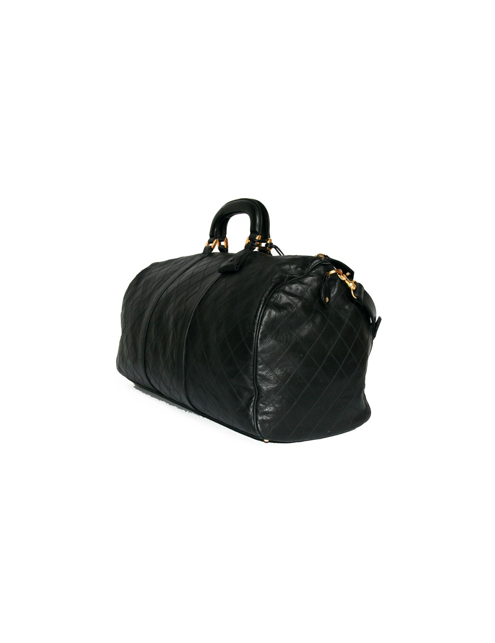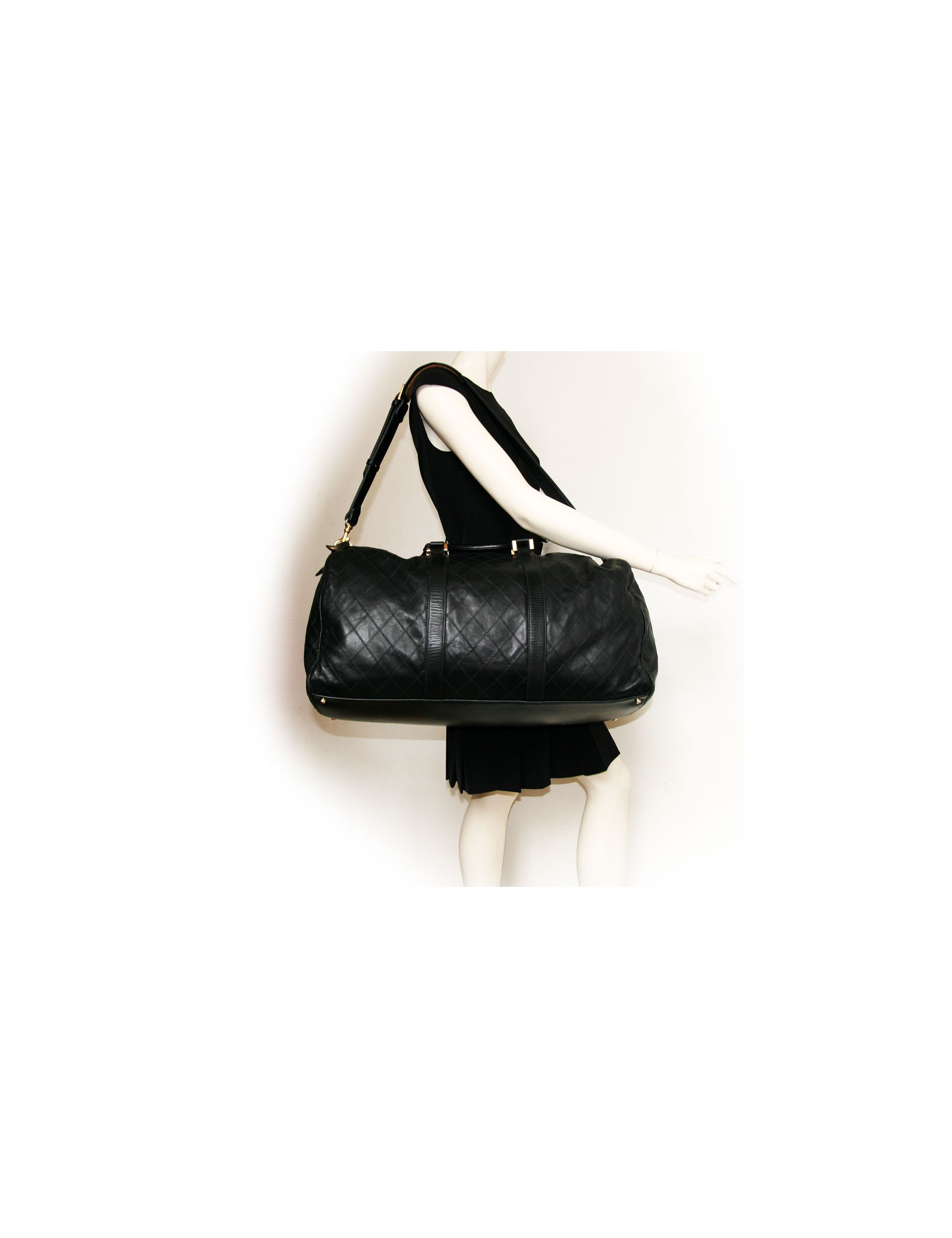 Rare! Weekender en cuir noir matelassé Chanel. Les ferrures sont en métal doré