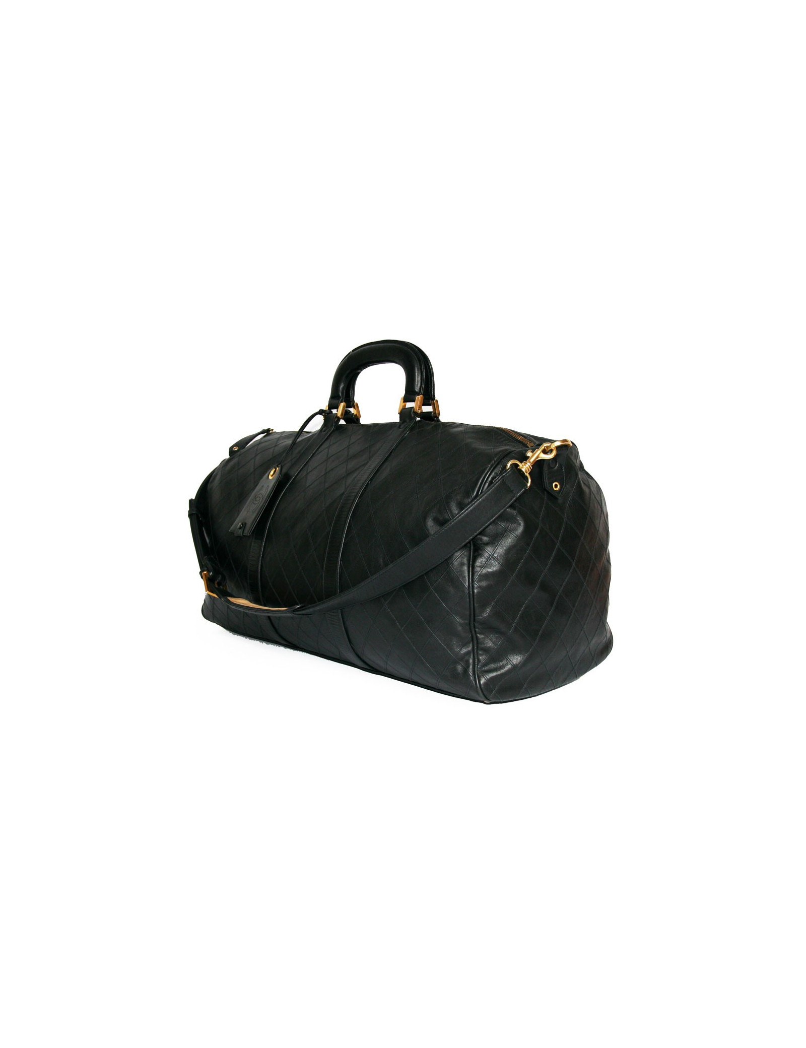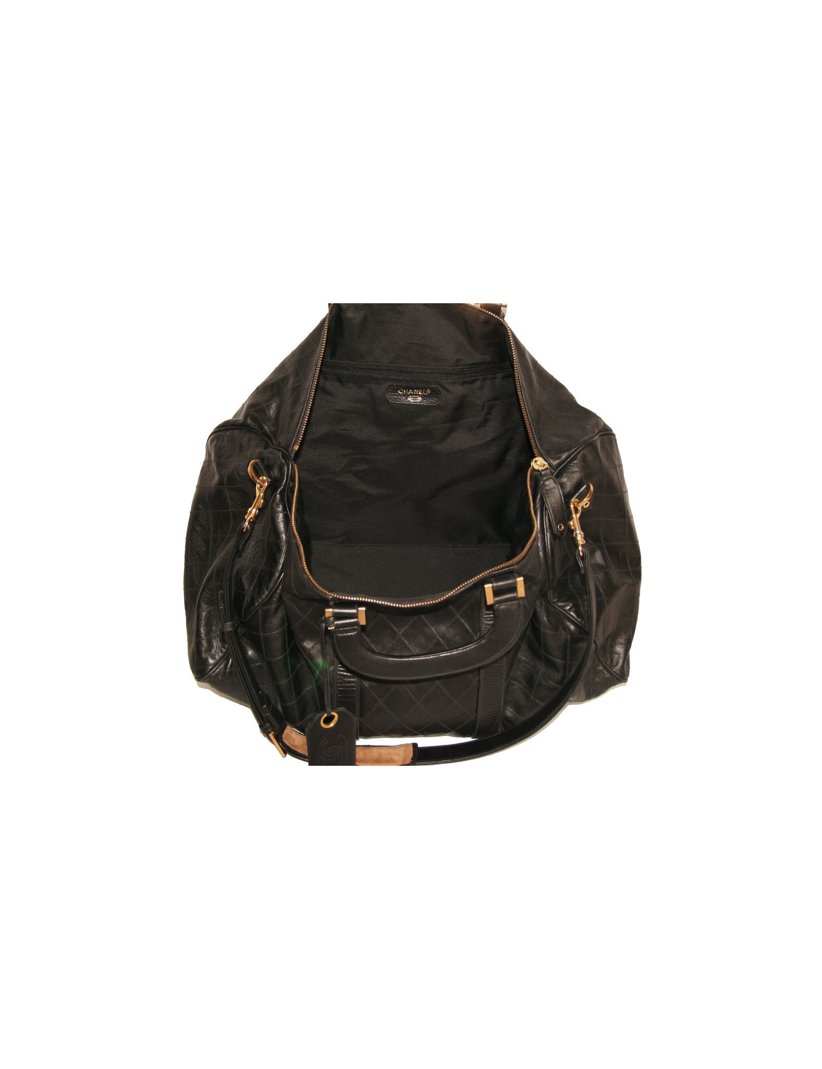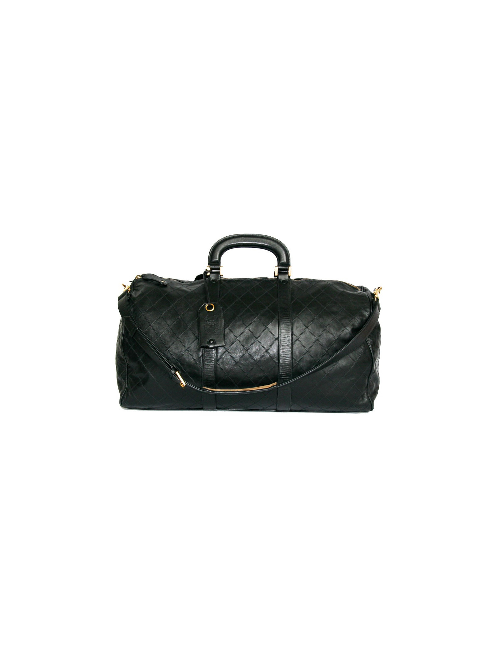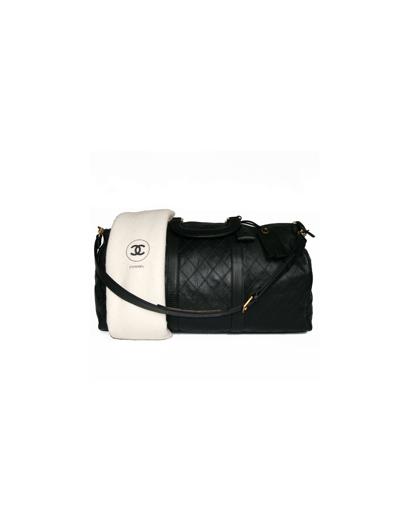 Rare! Weekender en cuir noir matelassé Chanel. Les ferrures sont en métal doré