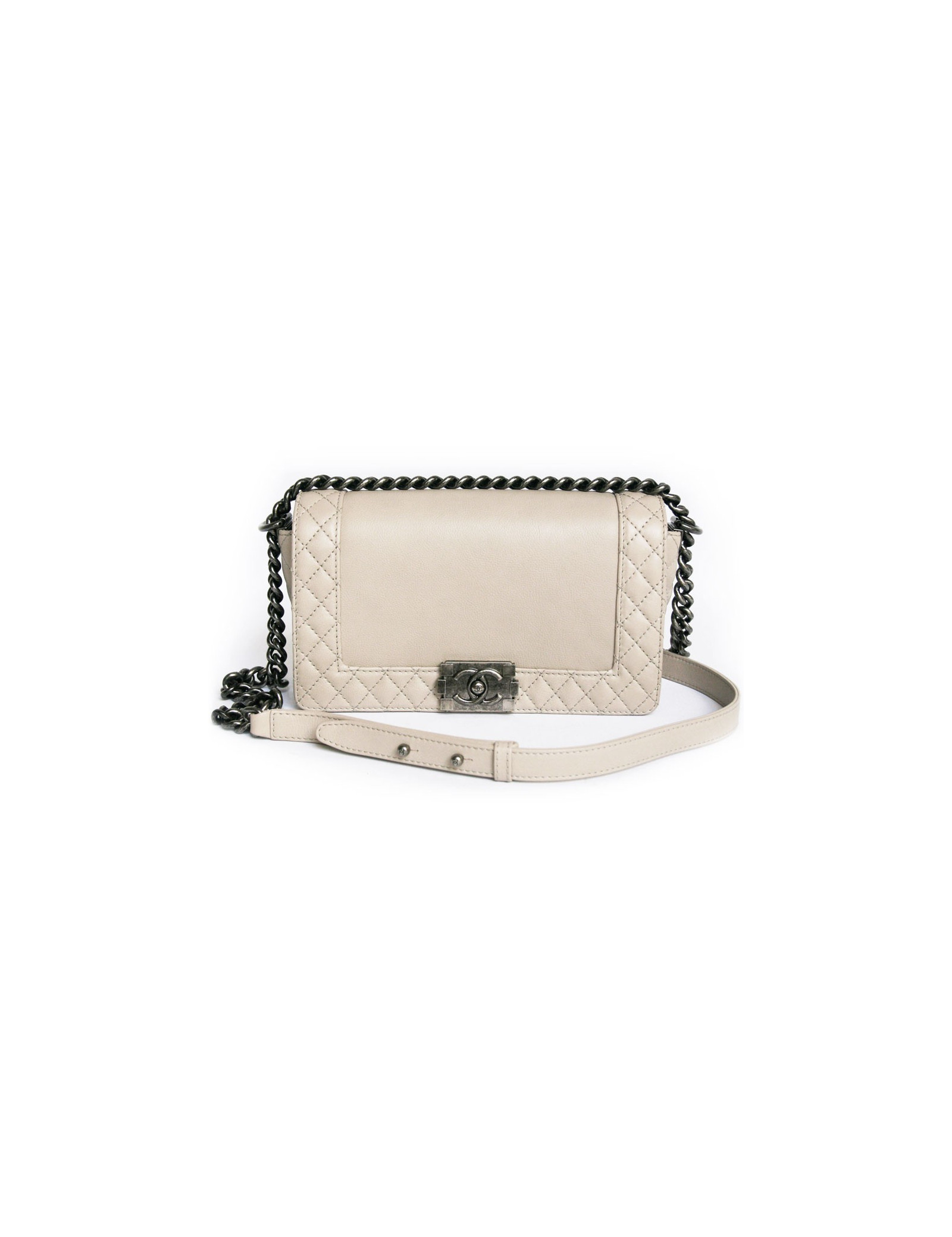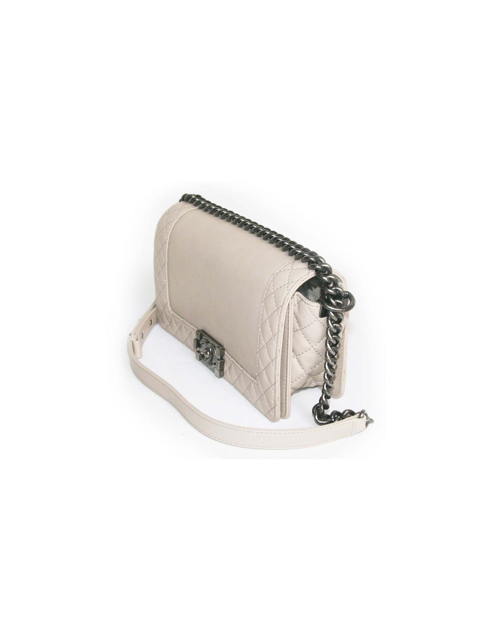 Sac "Boy" CHANEL en cuir d'agneau gris clair