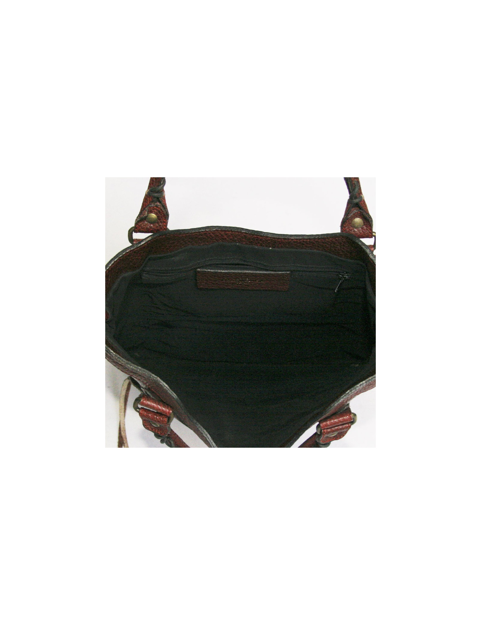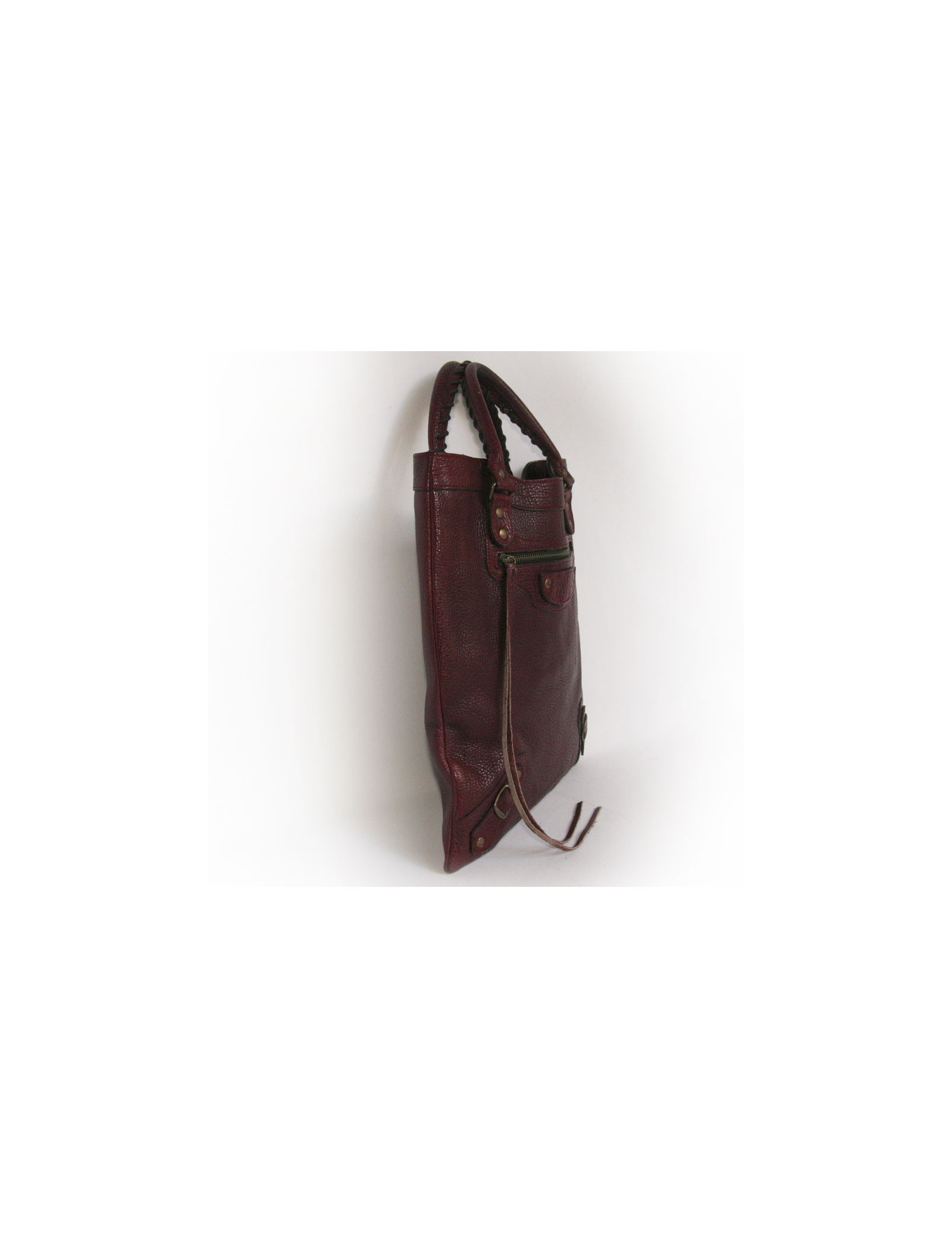 Sac cabas Balenciaga en cuir bordeaux. L'accastillage est en laiton doré vieilli. Il se porte à la main. L'intérieur est en toile noire avec une poche zippée. Il y a également une poche zippée à l'avant du sac. En très bon état.