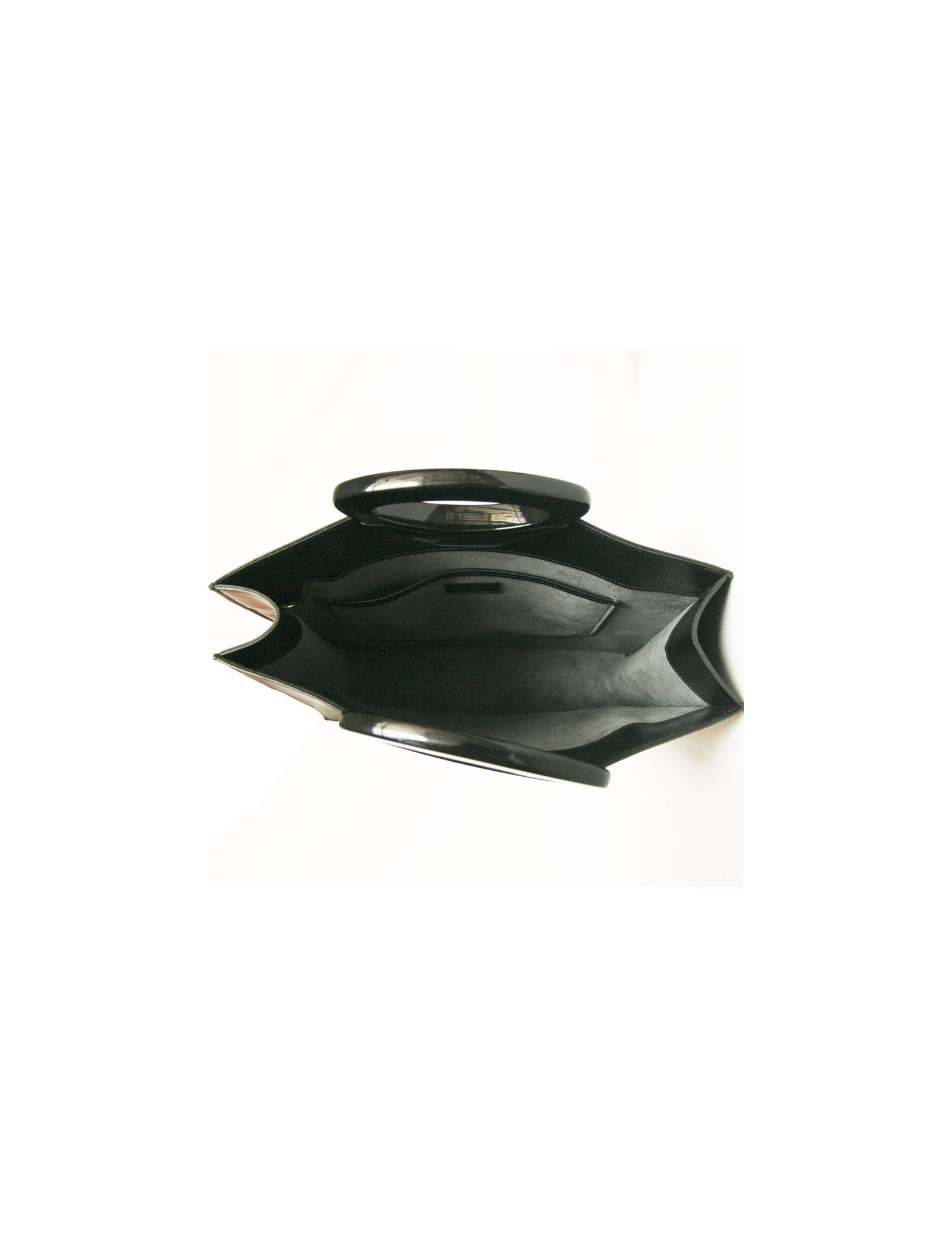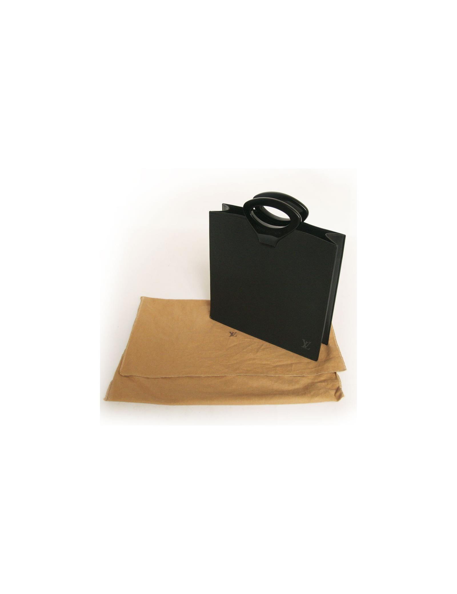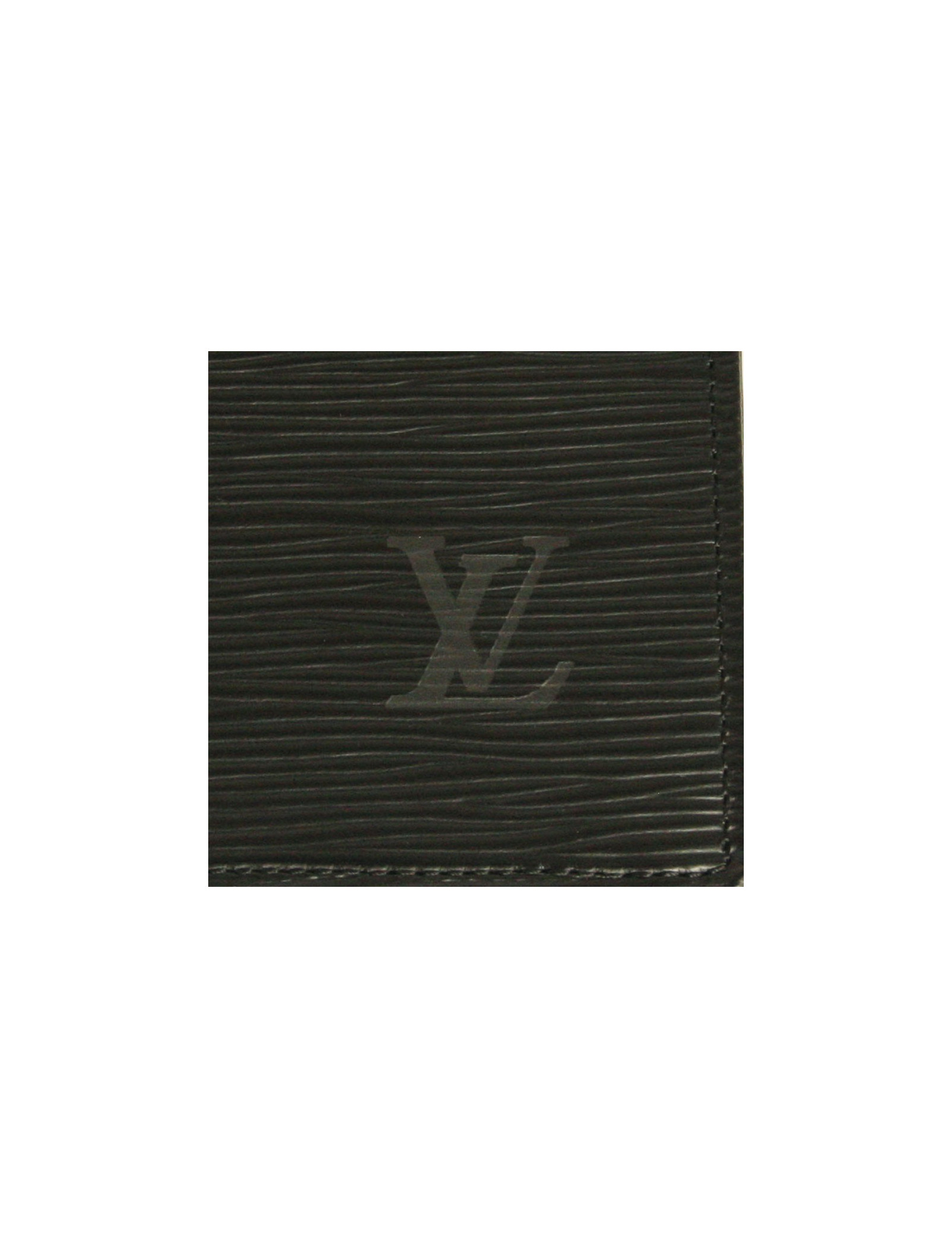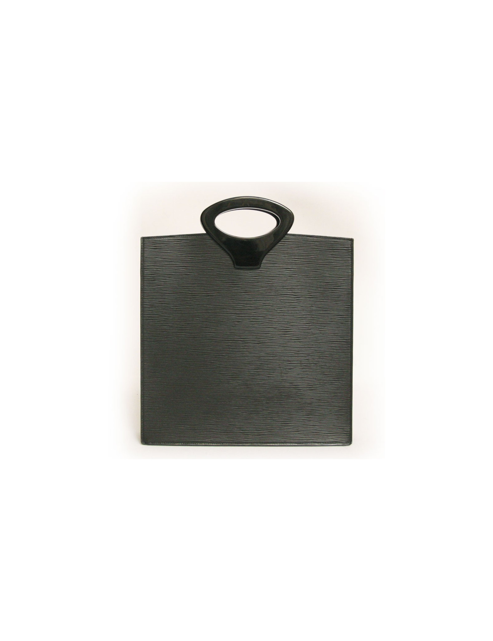 Sac Louis Vuitton en cuir épi noir. Il est de forme rectangulaire. Il se porte uniquement à la main avec deux anses en plastique noir. L'intérieur est gris avec une poche. Sigle LV en bas à droite ainsi que le nom de la marque LOUIS VUITTON sur l'une des anses. En très bon état. A l'arrière du sac très légère marque plus claire.