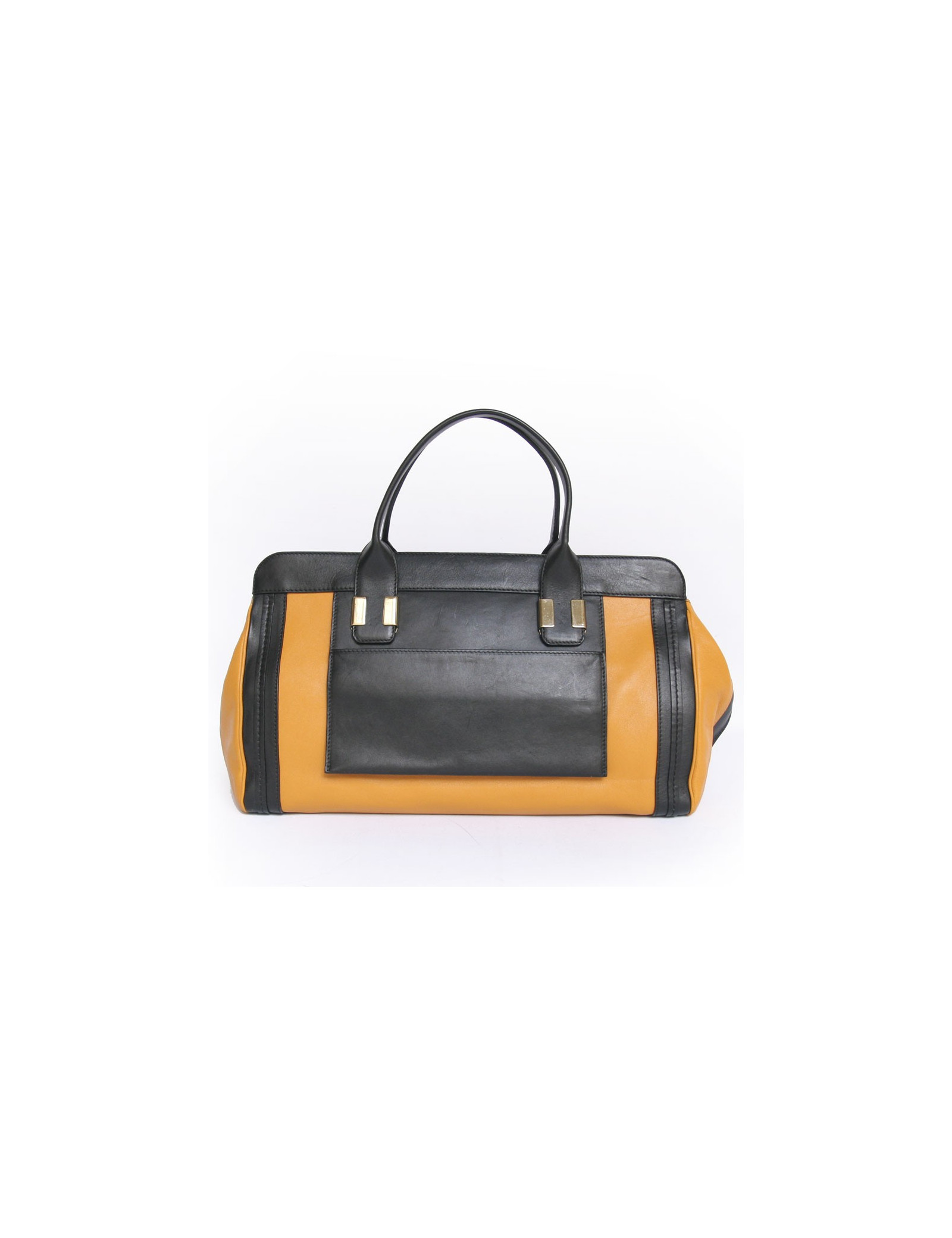 Sac Chloé bicolore en cuir noir et jaune moutarde. Idéal pour tous les jours car il est très pratique d'utilisation et il dispose un grand espace de rangement. Double poignées pour un porté à la main ou au bras. Accastillage en métal doré. L'intérieur est en tissu noir avec 3 poches dont 1 zippée. Il y a également une poche à l'avant et une à l'arrière.