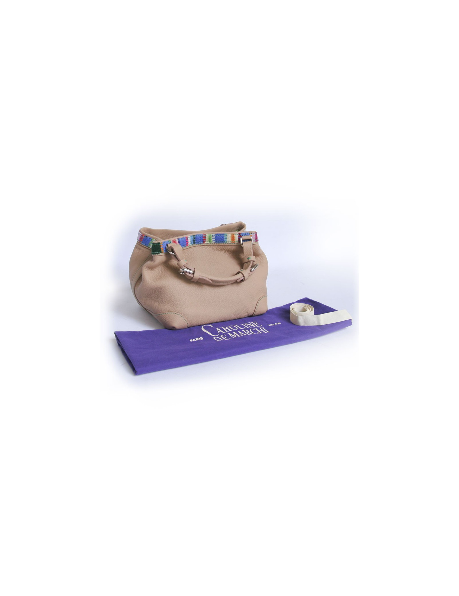 Sac "Cubo" CAROLINE DE MARCHI cuir grainé beige