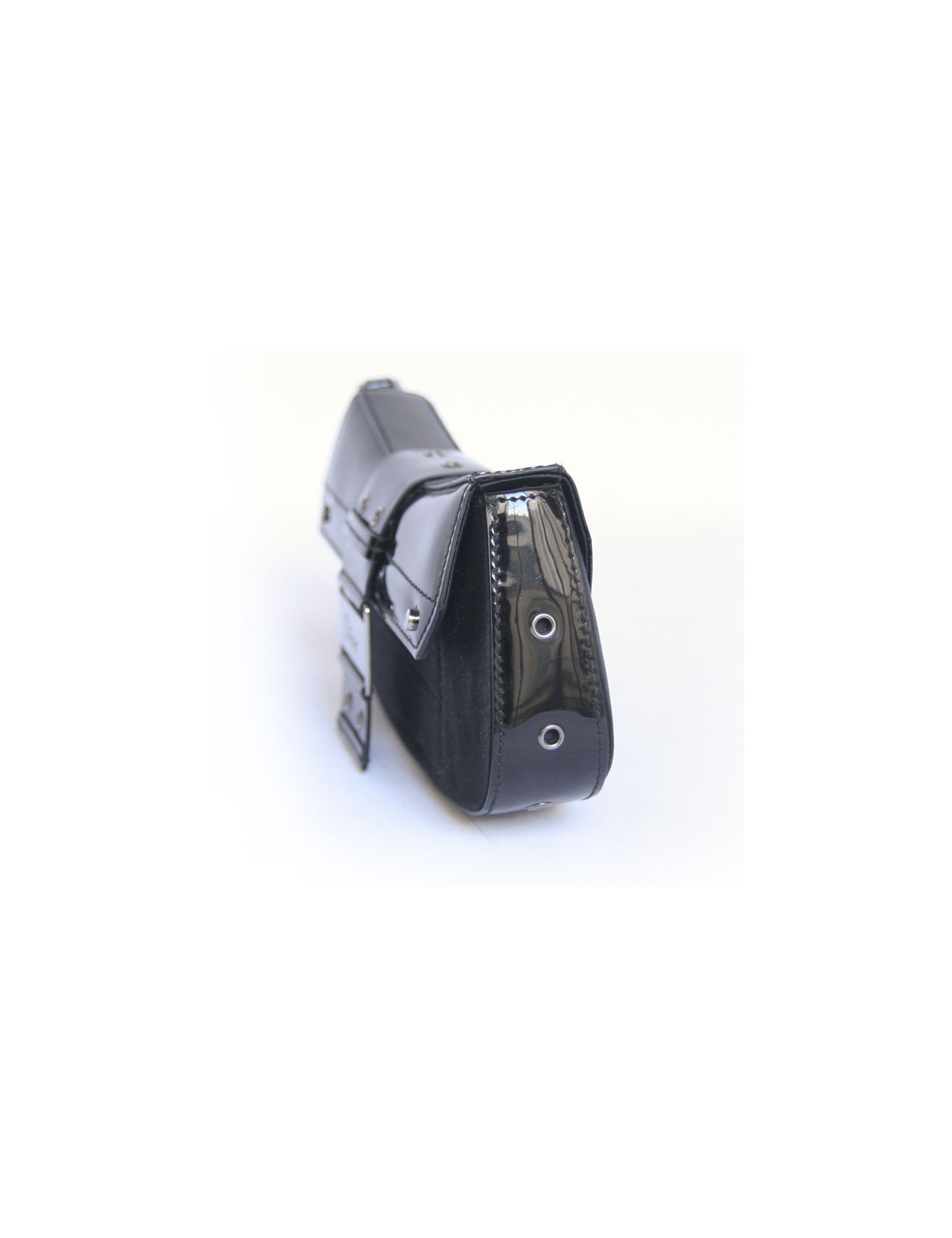 Mini sac du soir Christian Dior en satin et cuir verni noir.