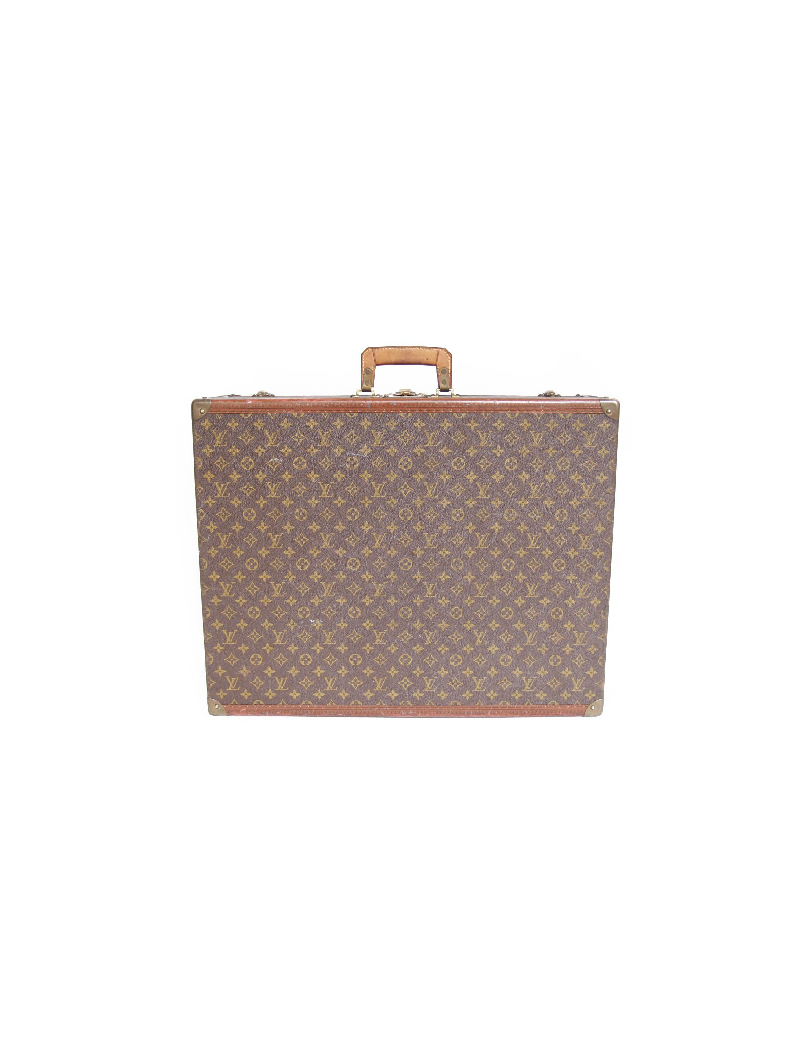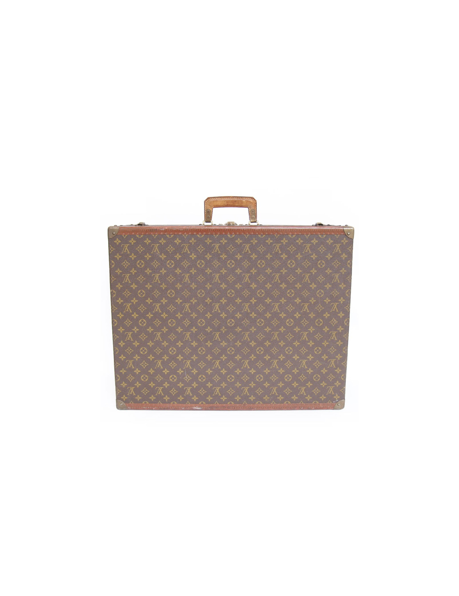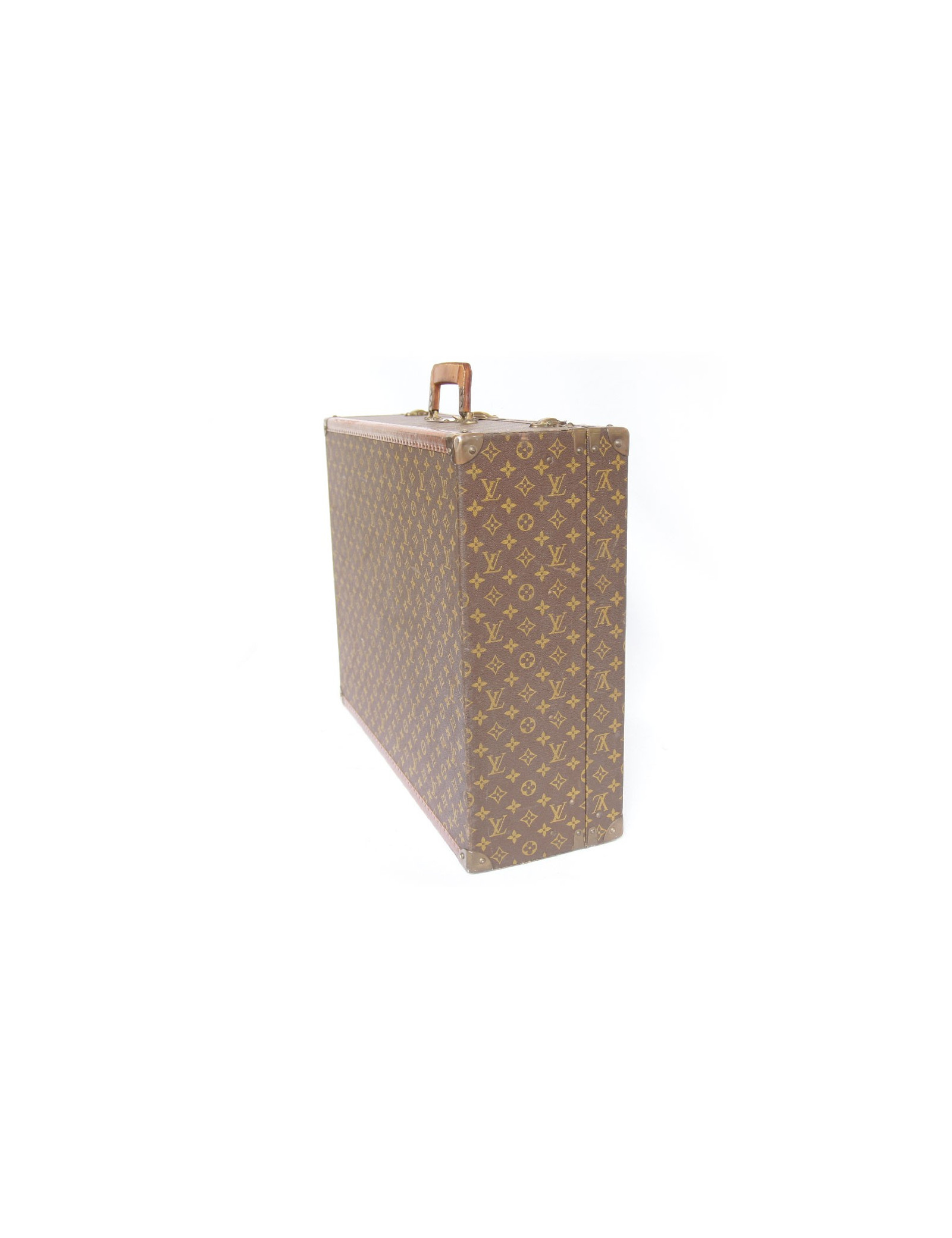 Valise rigide Alzer de la Maison Louis Vuitton en toile Monogram, un caisson à deux sangles, coins et garniture en laiton. Il manque le porte étiquette et ses deux clés. Numéro d'authencité 875695. Excellent état, légère patine du cuir sur les bordures de la valise ainsi que quelques marques d'usures. Voir photos.