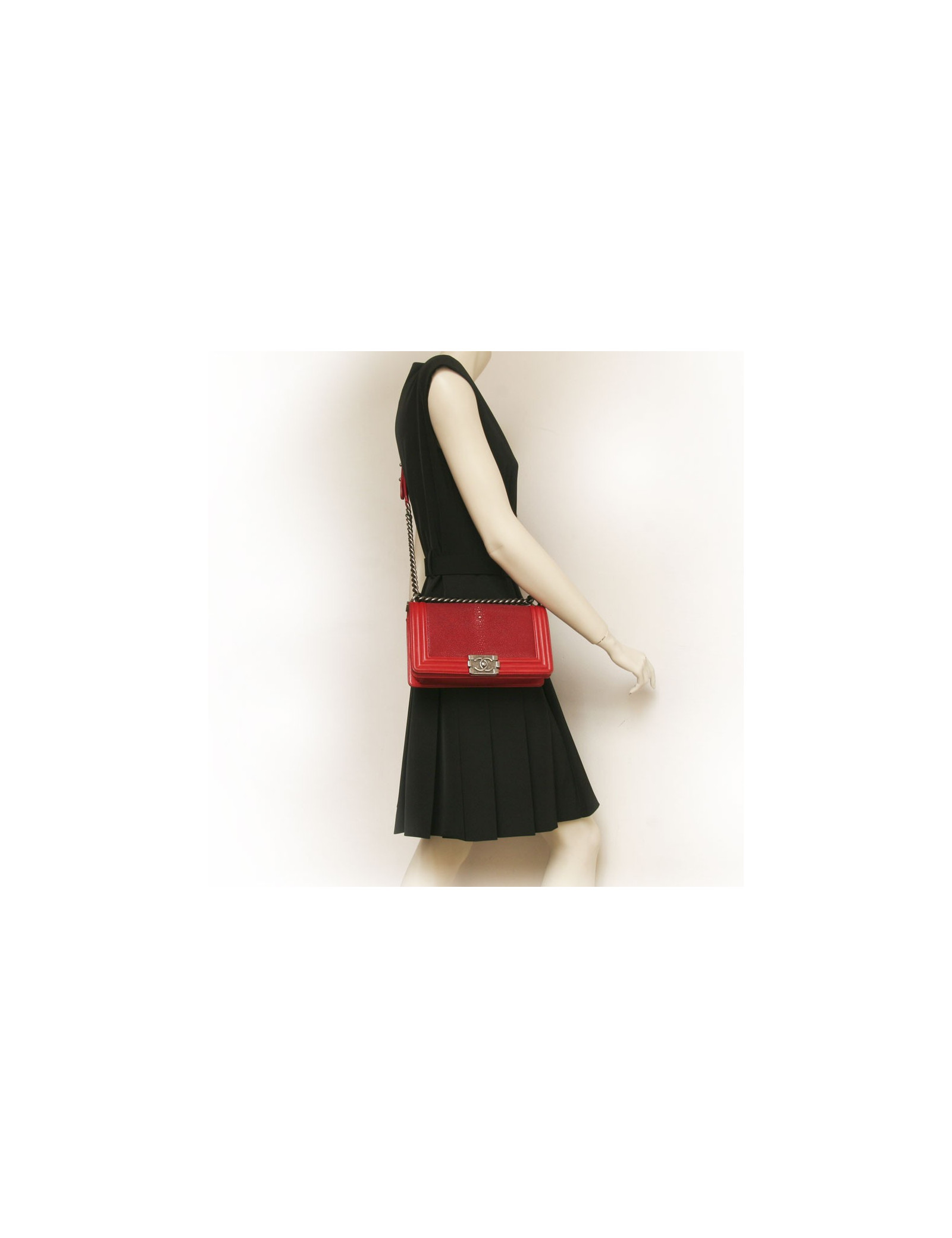 Sac boy CHANEL en galuchat rouge