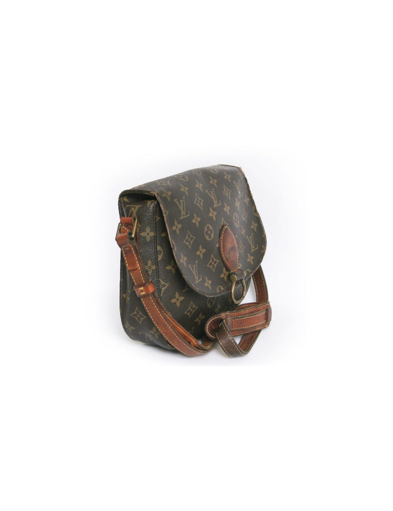 Sac "cartouchière" de la Maison Louis Vuitton en toile monogram vintage. L'intérieur de la poche est très abimée (la toile s'est déteriorée). Il se porte à l'épaule ou en crossover à l'aide d'une bandoulière réglable à 7 trous. L'accastillage est en métal doré. Etat vintage. Le cuir est patiné. La bandoulière est abimée. La couture sur le rabat est dechirée. Voir photos.
