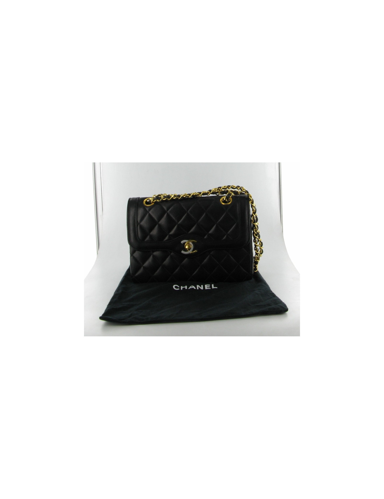 Superbe sac Haute Couture en cuir matelassé noir CHANEL.