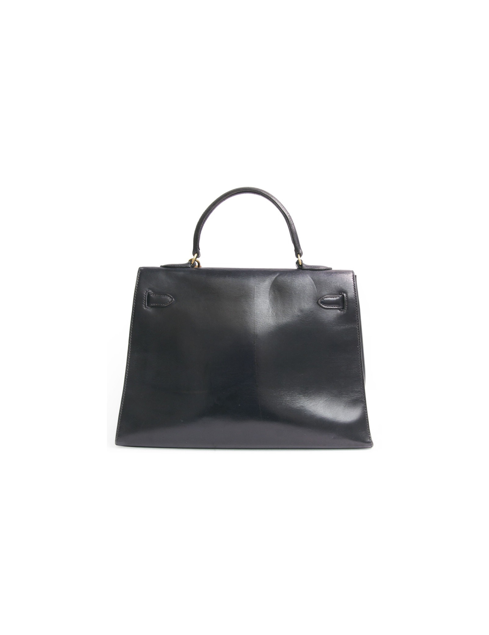 Sac Kelly 32 HERMES cuir box bleu marine vintage