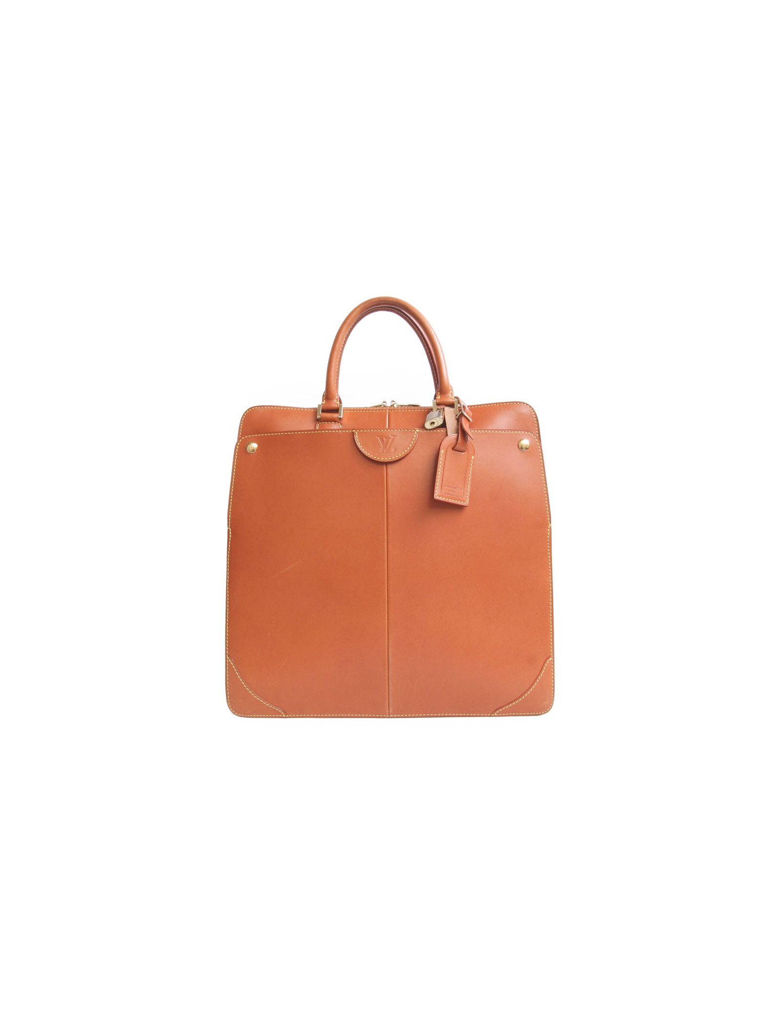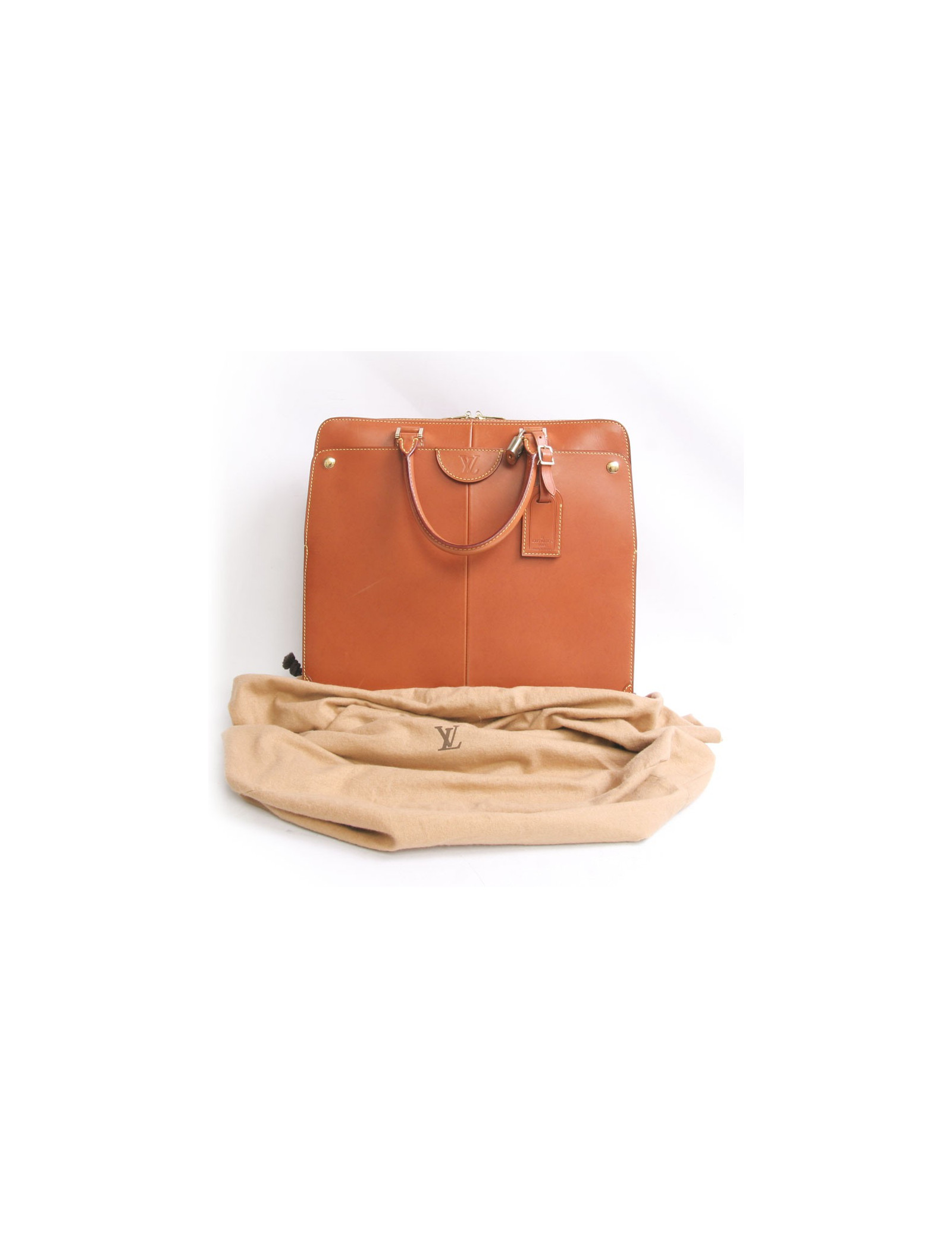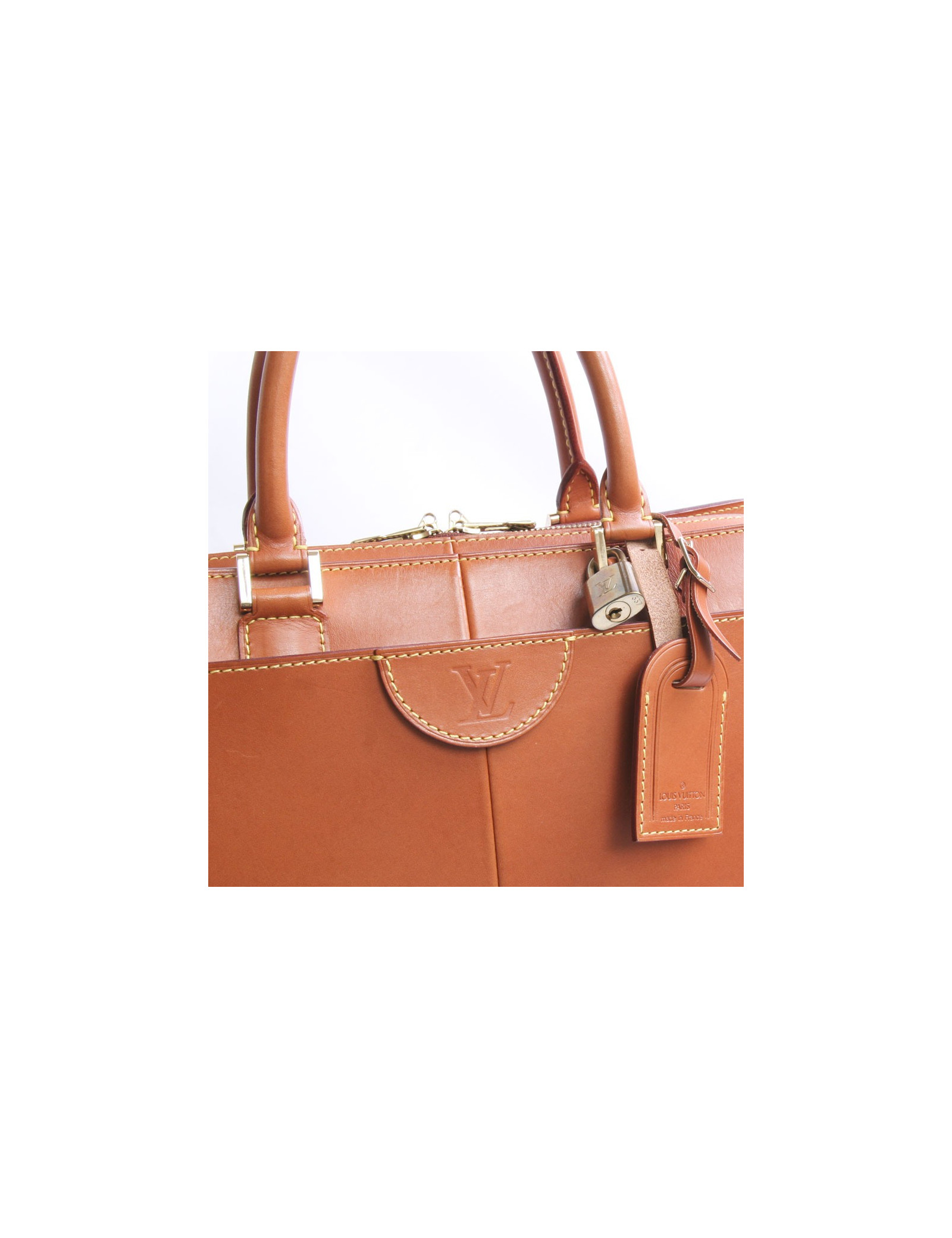Sac "Neguev" de la Maison Louis Vuitton en cuir de vachette naturel. Les bijouteries sont en laiton doré. Double poignée pour un porté main. Fermeture zippée. Cadenas, clefs, clochette et porte adresse. L'intérieur est en veau velours bordeaux avec 3 poches. A l'avant, il dispose d'une grande poche plaquée. En très bon état. Quelques légères rayures sur le sac.