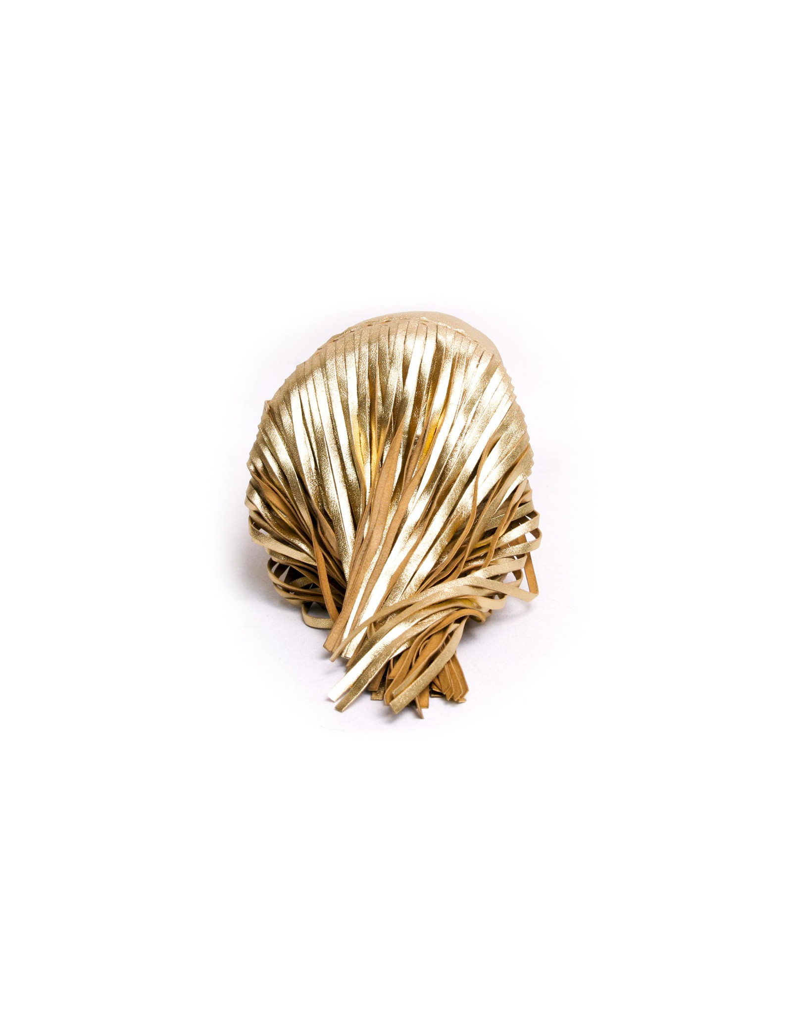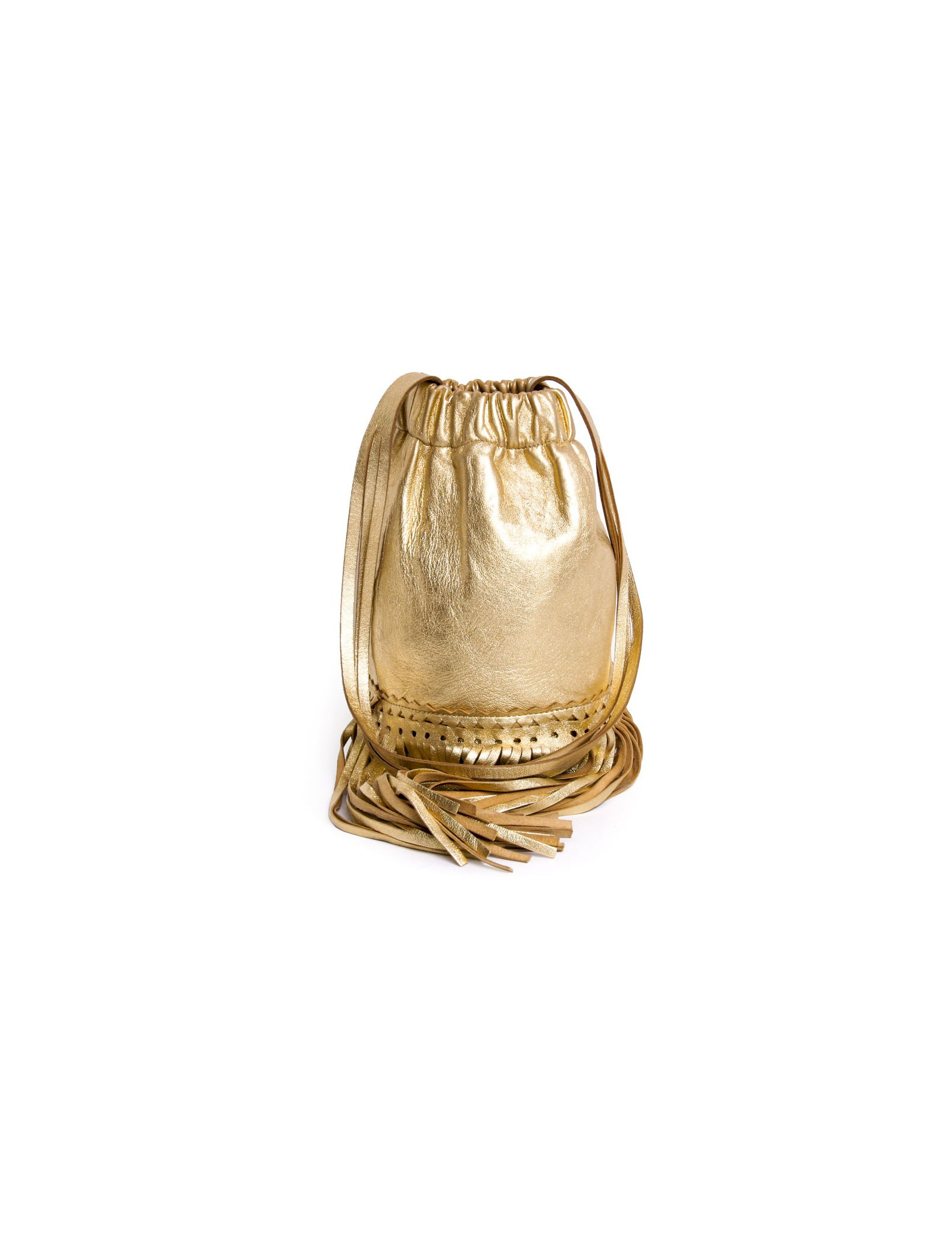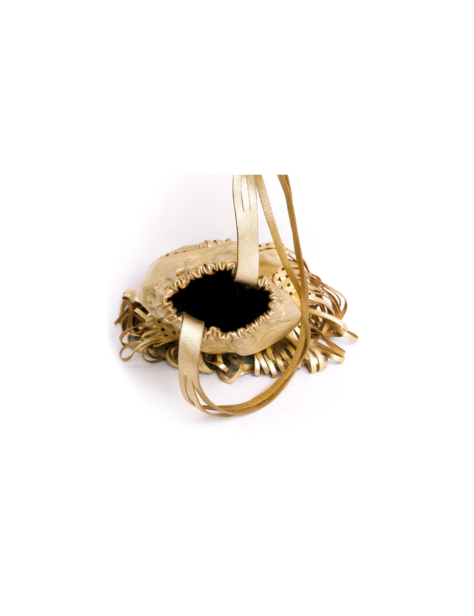 Charmant sac Sonia Rykiel en cuir lamé doré. Il se porte à l'épaule à l'aide d'une anse. Il dispose de franges en bas du sac. L'inscription "Sonia Rykiel Paris est gravé sur le sac. En très bon état.