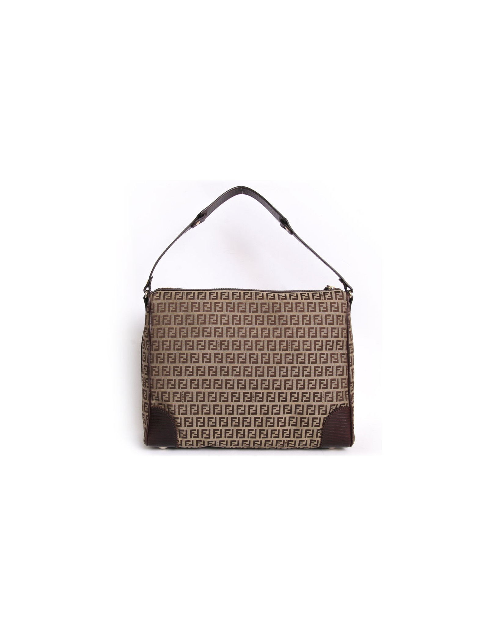 Sac sacoche FENDI toile monogram et cuir marron