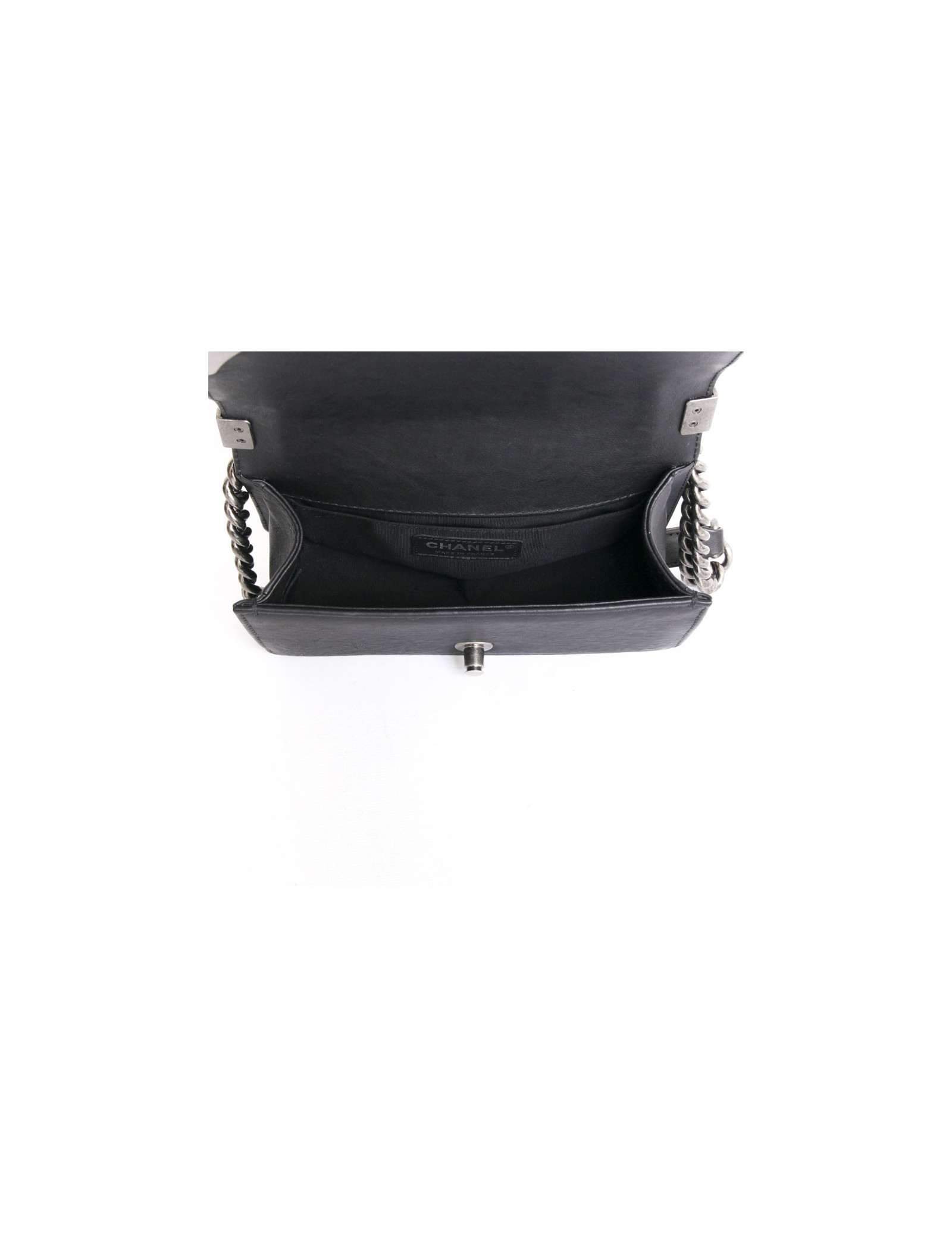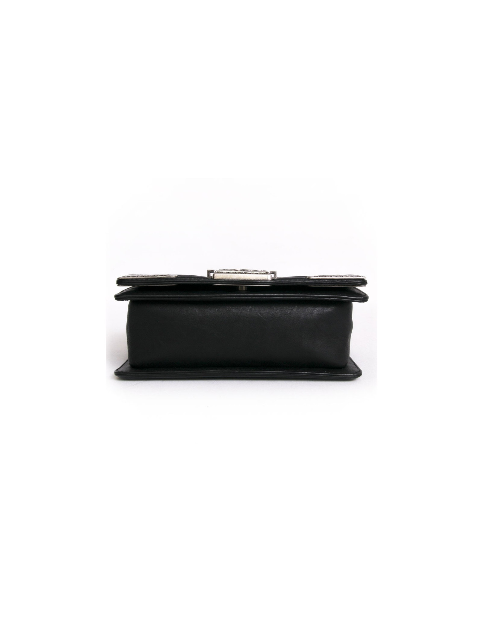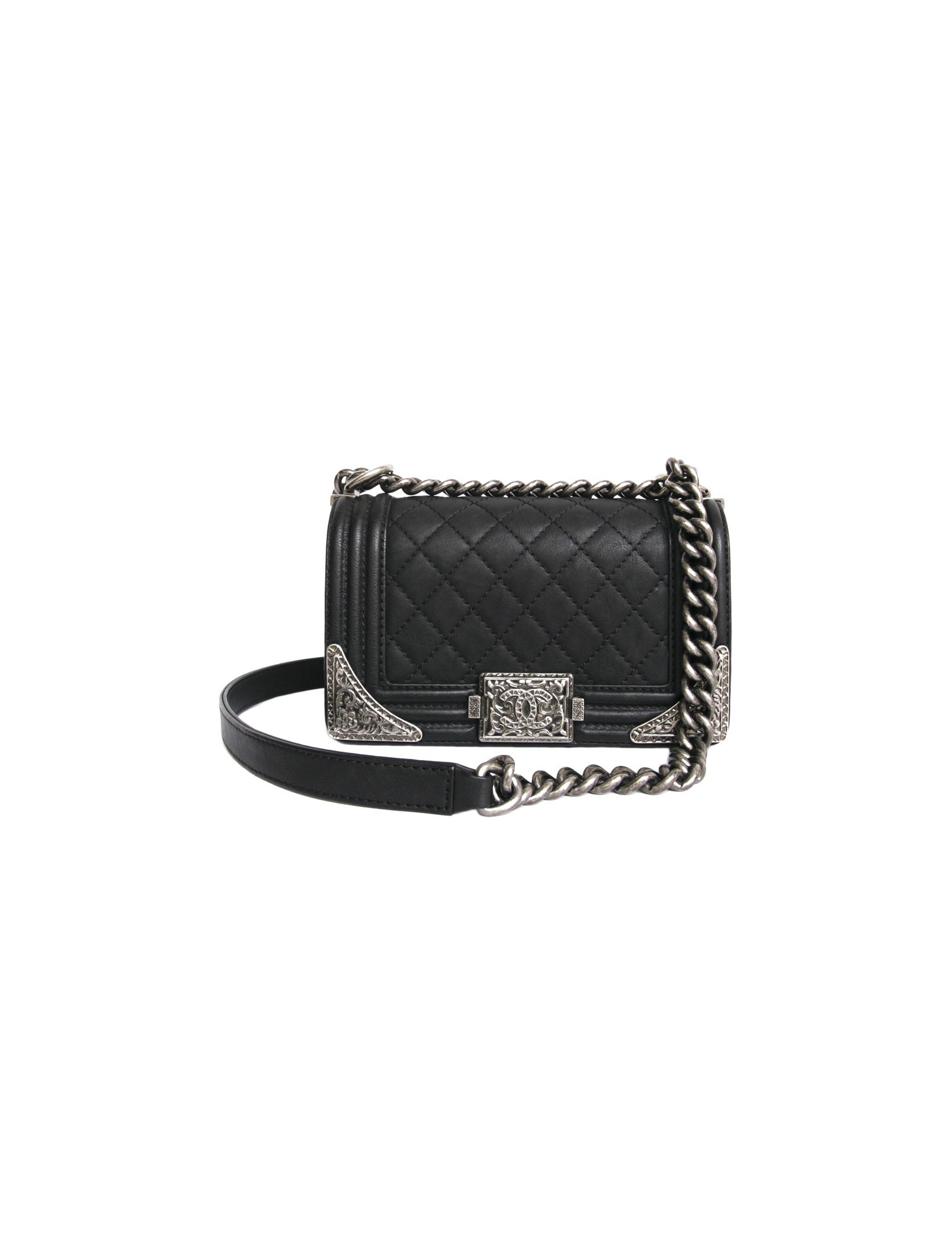 Sublime! Pièce rare! Sac Boy de la Maison Chanel, collection "Paris-Dallas" édition limitée. Il est en cuir noir matelassé. Il se porte à l'épaule ou en crossover à l'aide d'une bandoulière en cuir et chaine en métal argenté vieilli. Fermoir "Boy".