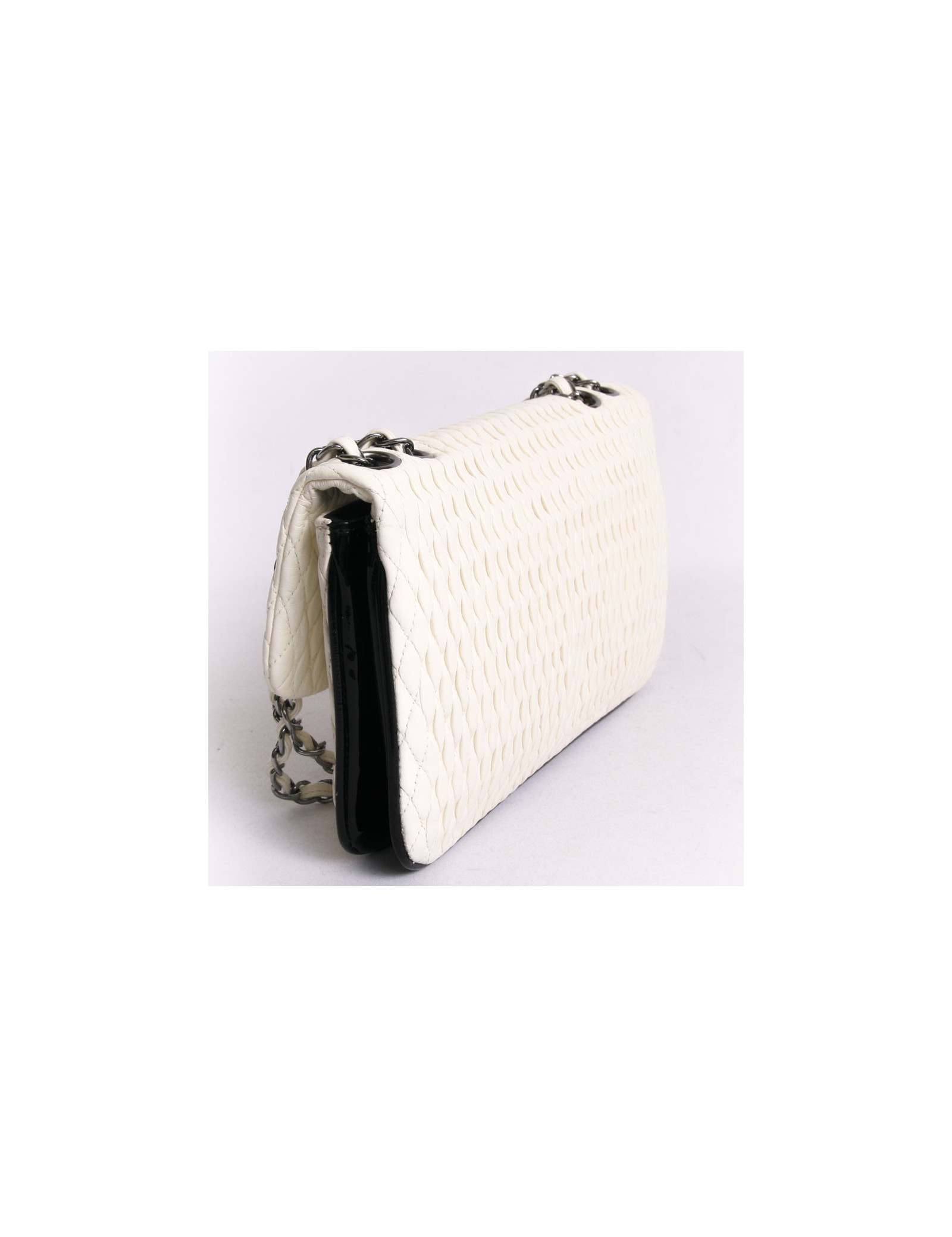 Sac CHANEL cuir gaufré coquille d’œuf et verni noir