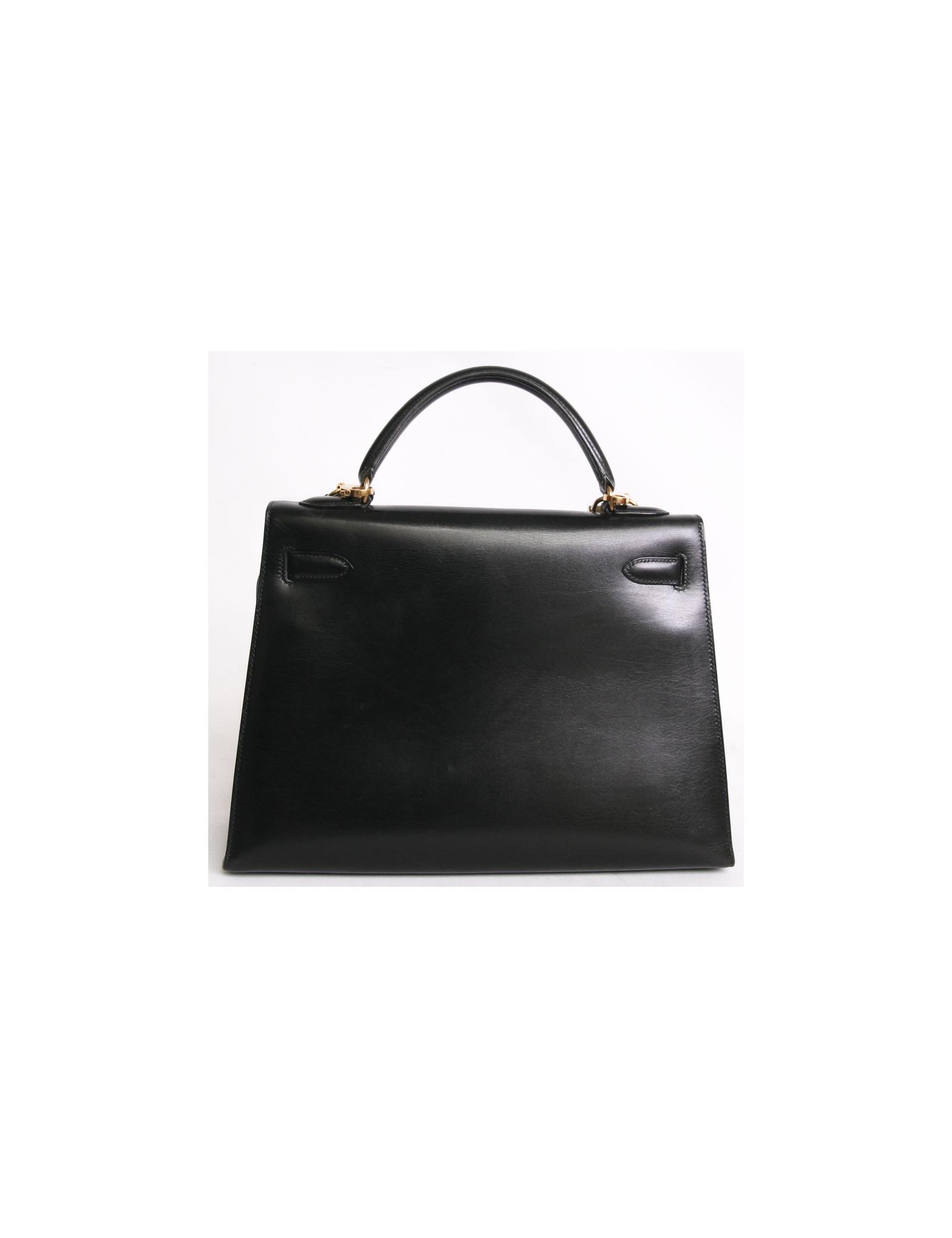 Sac Kelly 32 HERMES cuir box noir piqûres sellier bijouterie dorée
