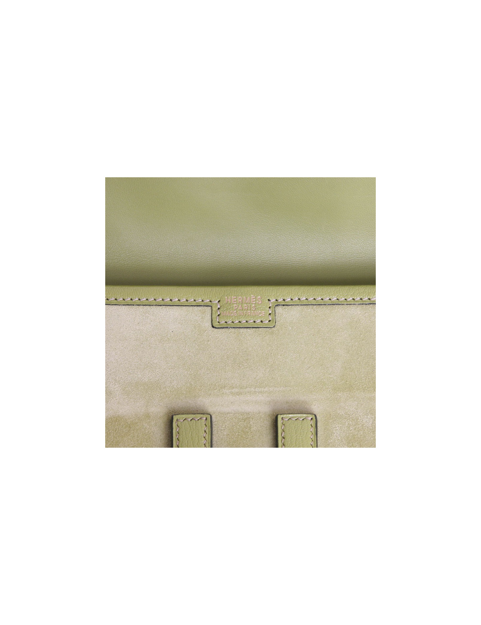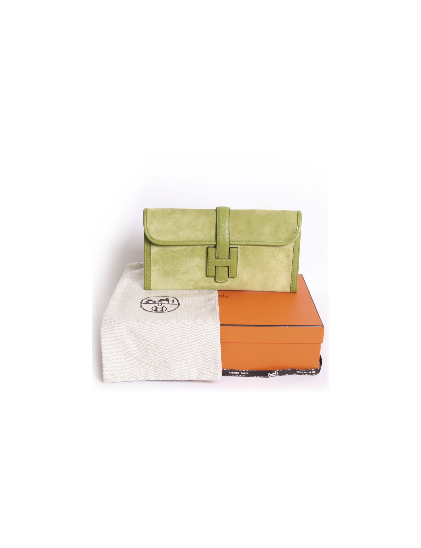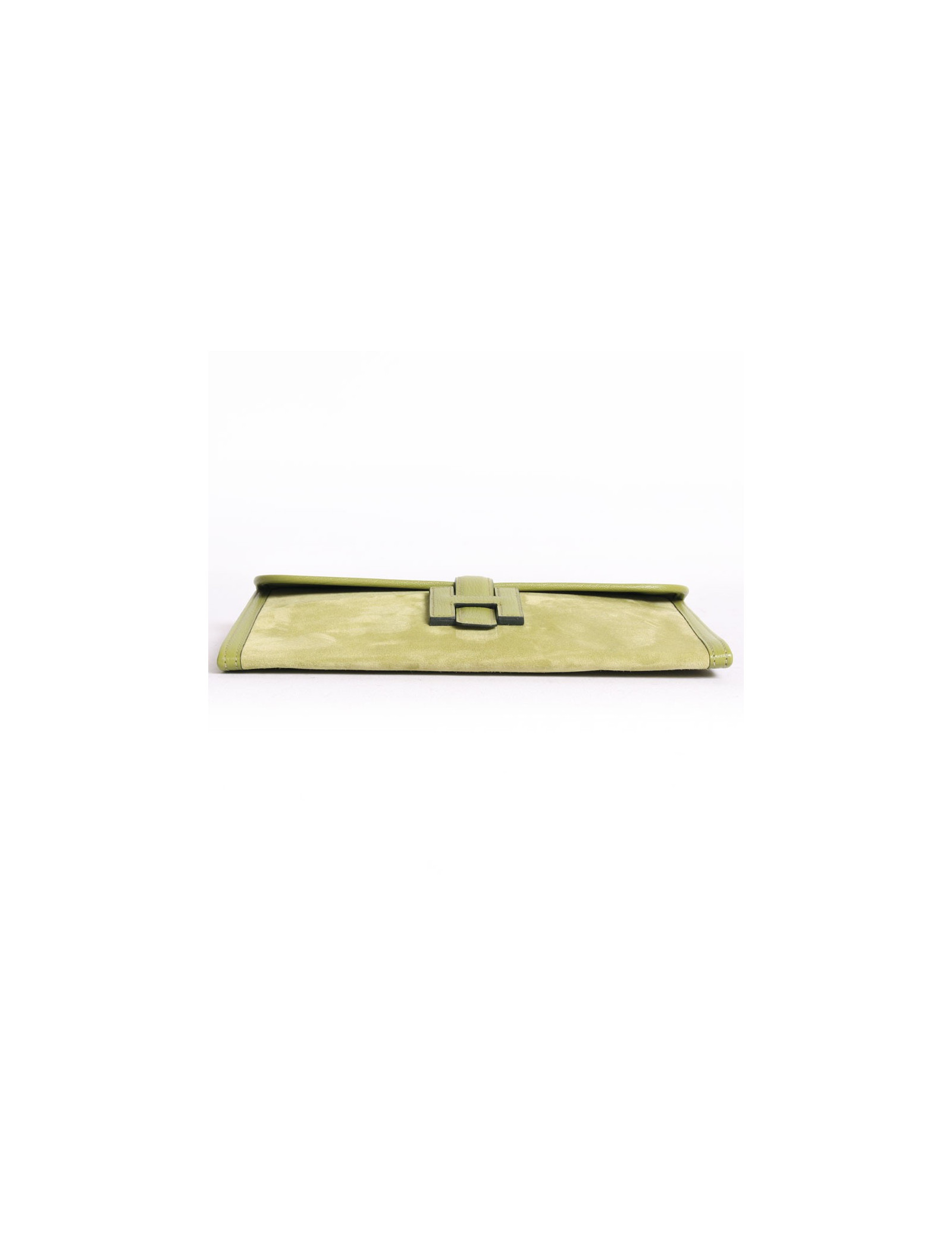 Pochette Jige HERMES veau doblis vert anis et cuir
