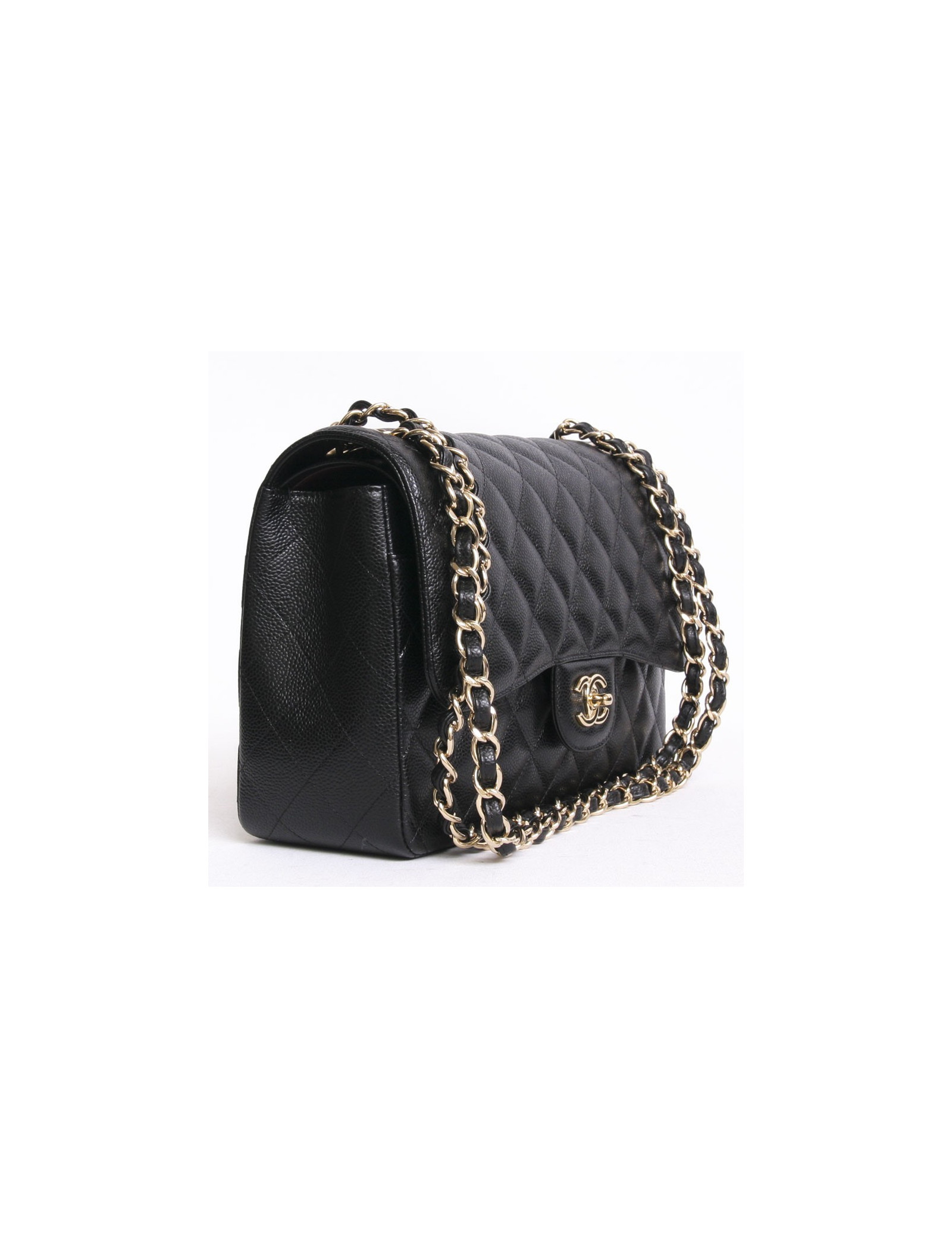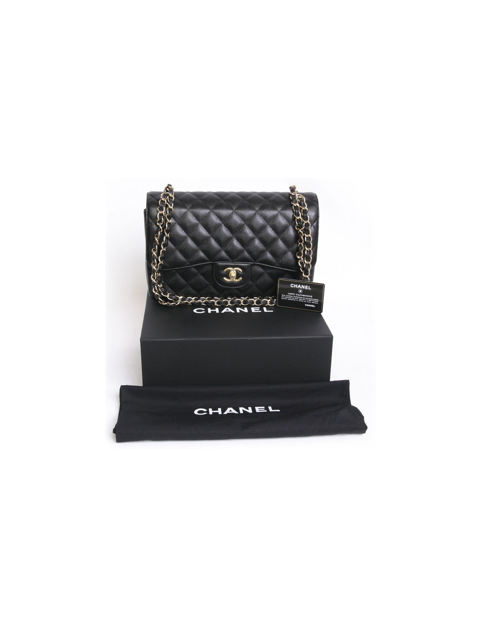 Sac Jumbo CHANEL en cuir caviar noir doré