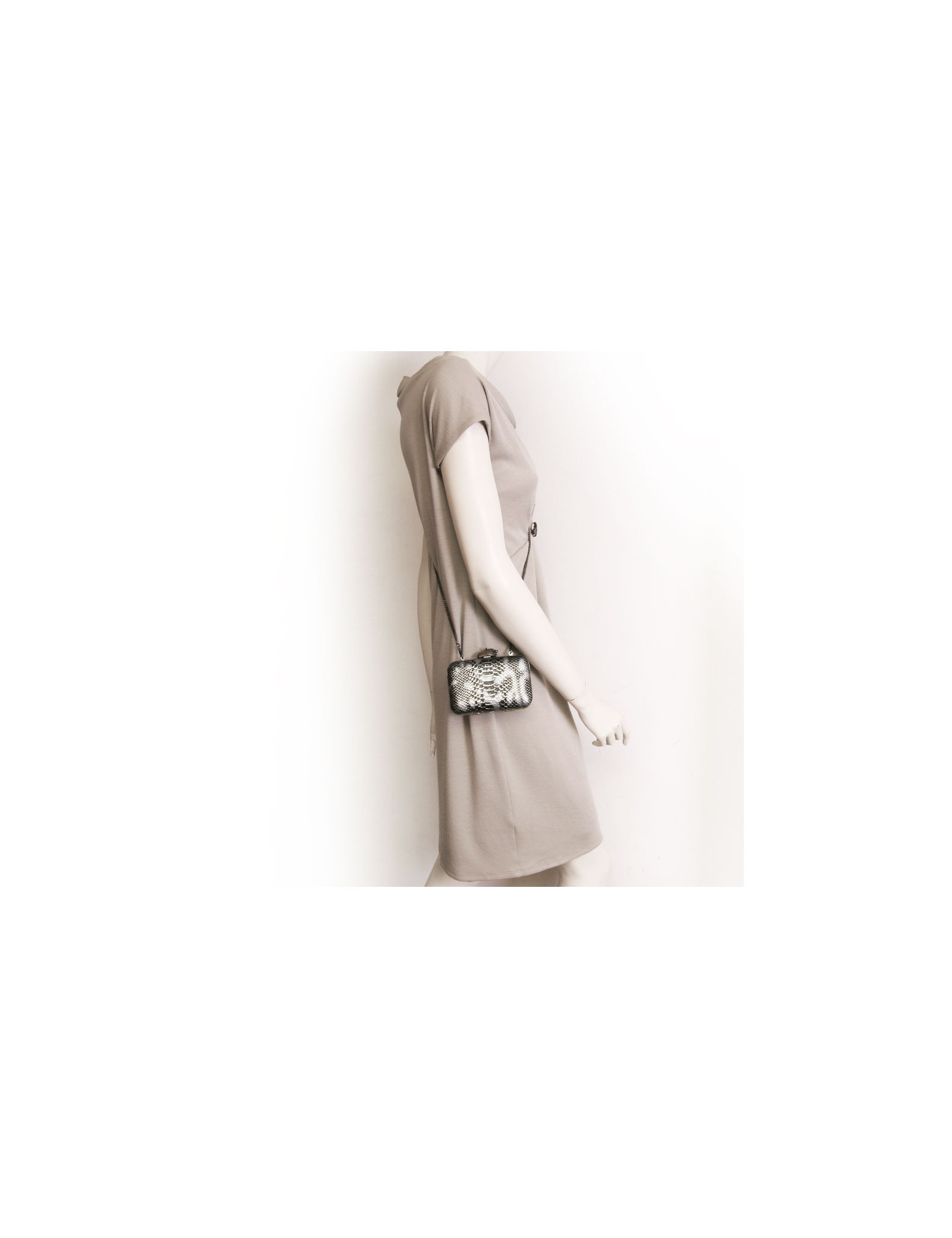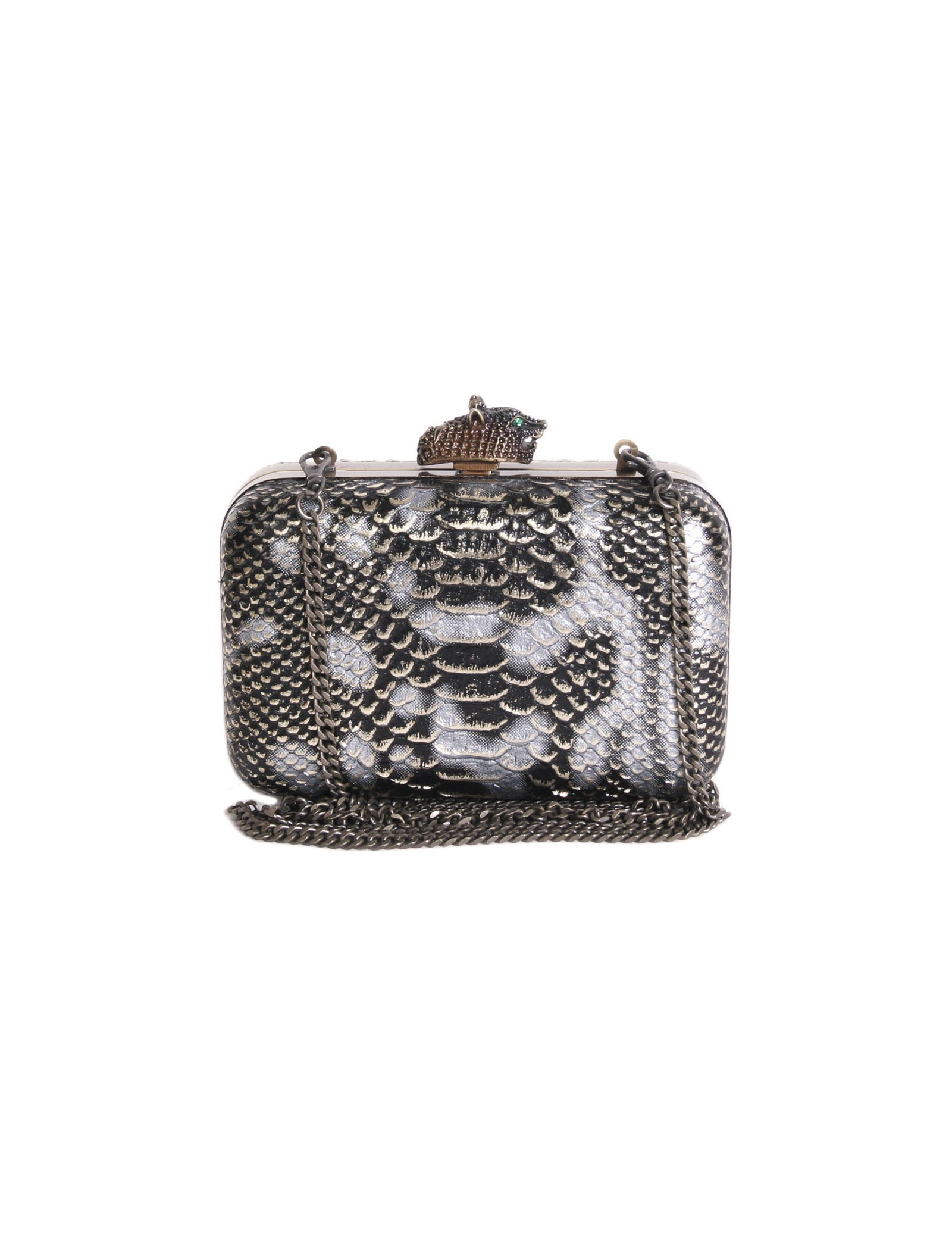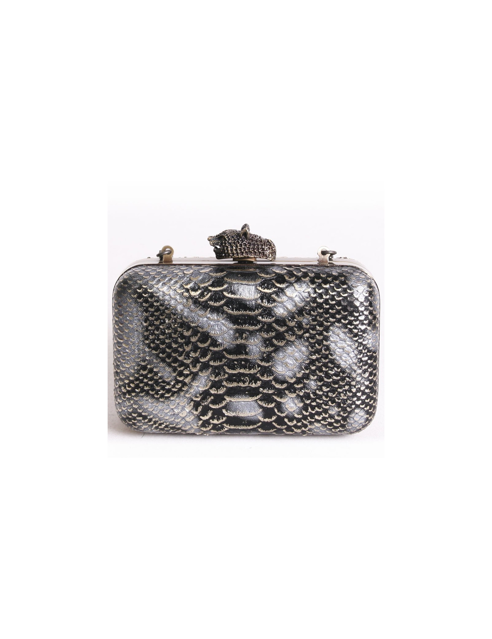 Pochette HOUSE OF HARLOW 1960 en cuir façon serpent noir argent et doré