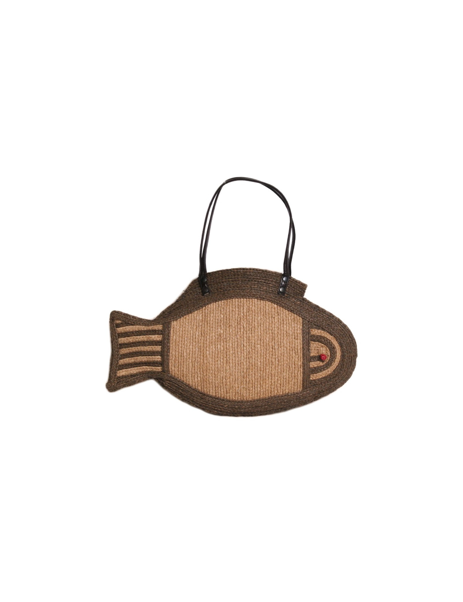 Petit sac à main fantaisie entièrement en osier et anses en cuir.