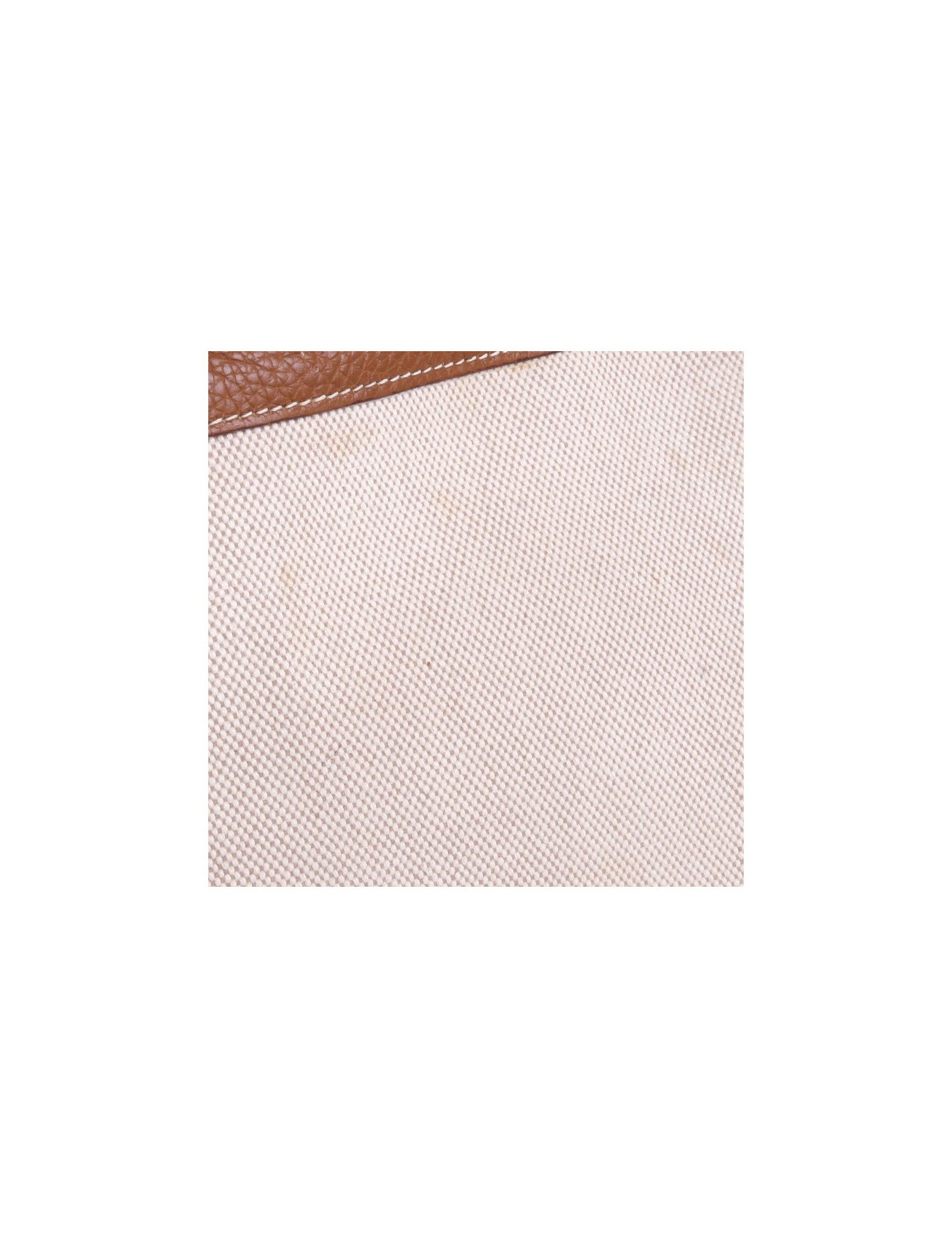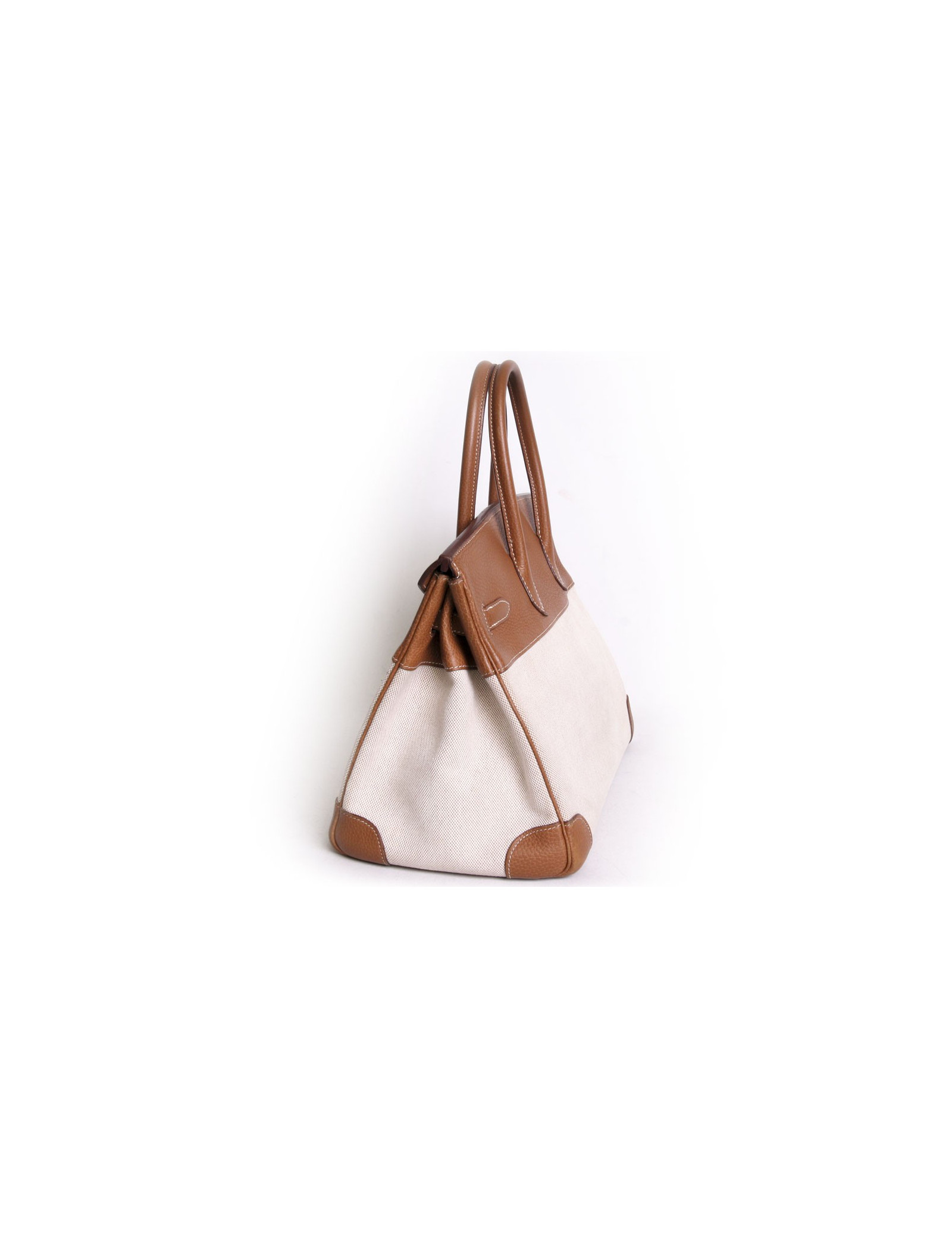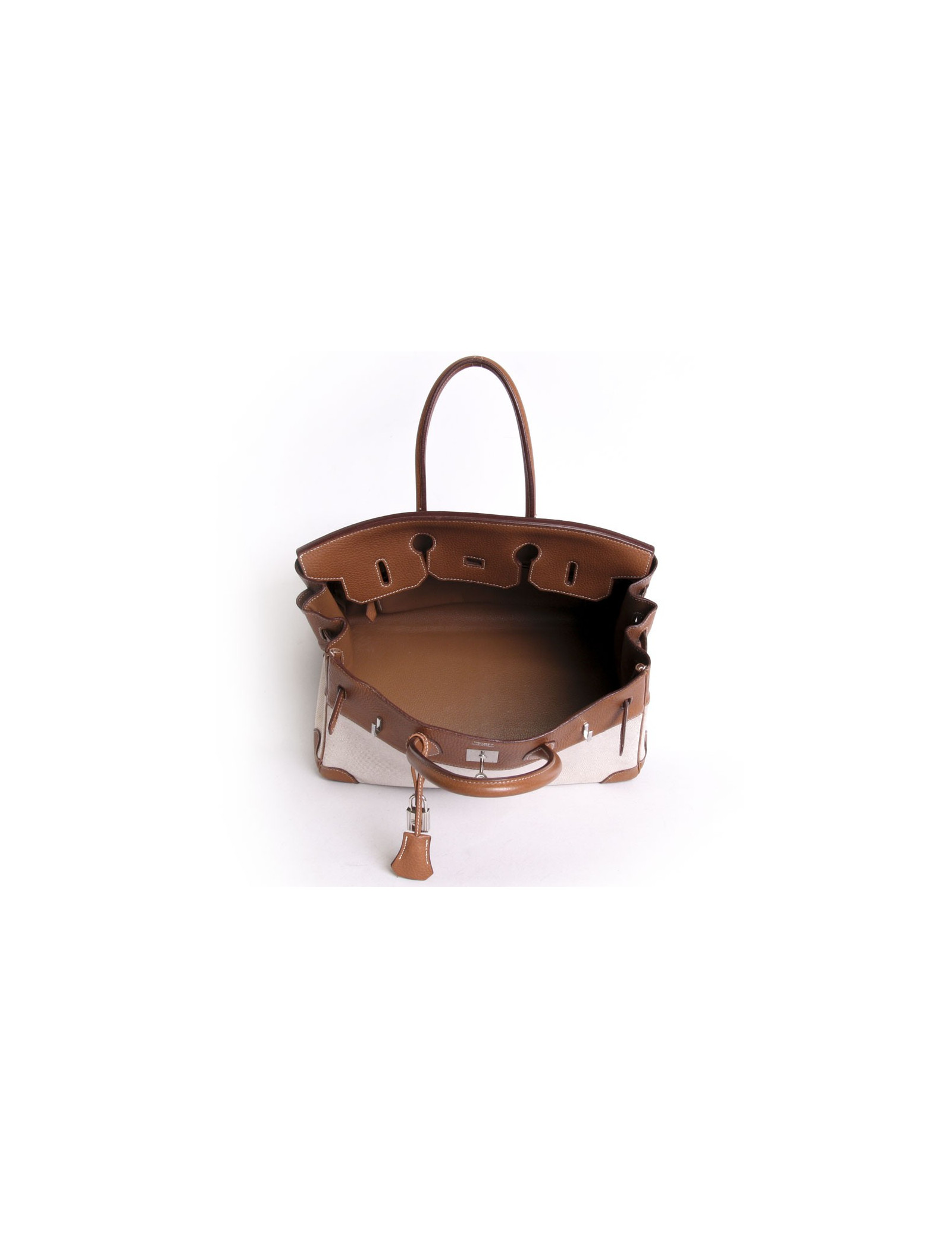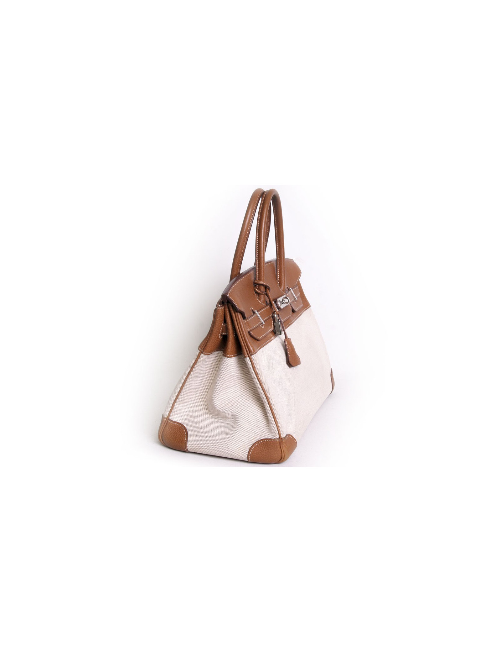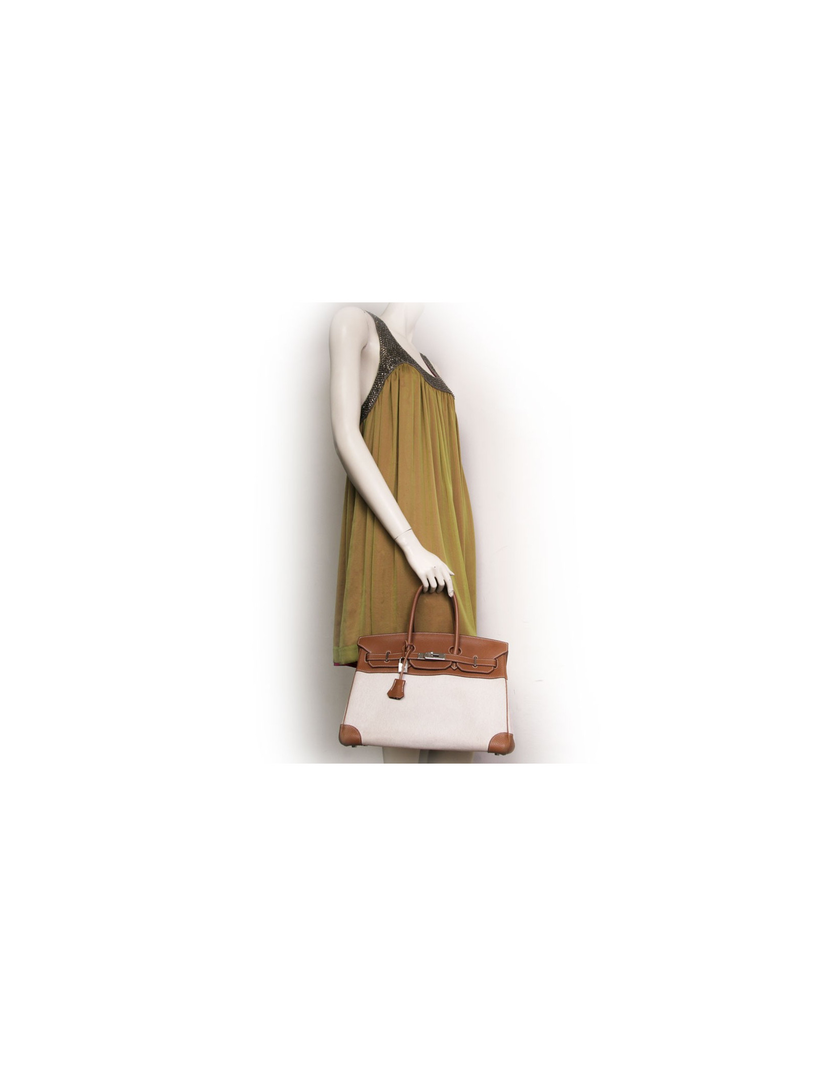 Birkin 35 en toile couleur naturelle et cuir togo gold.