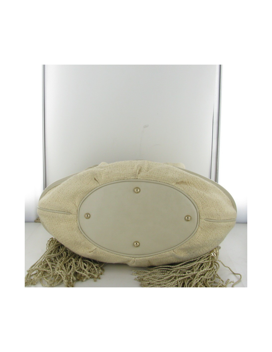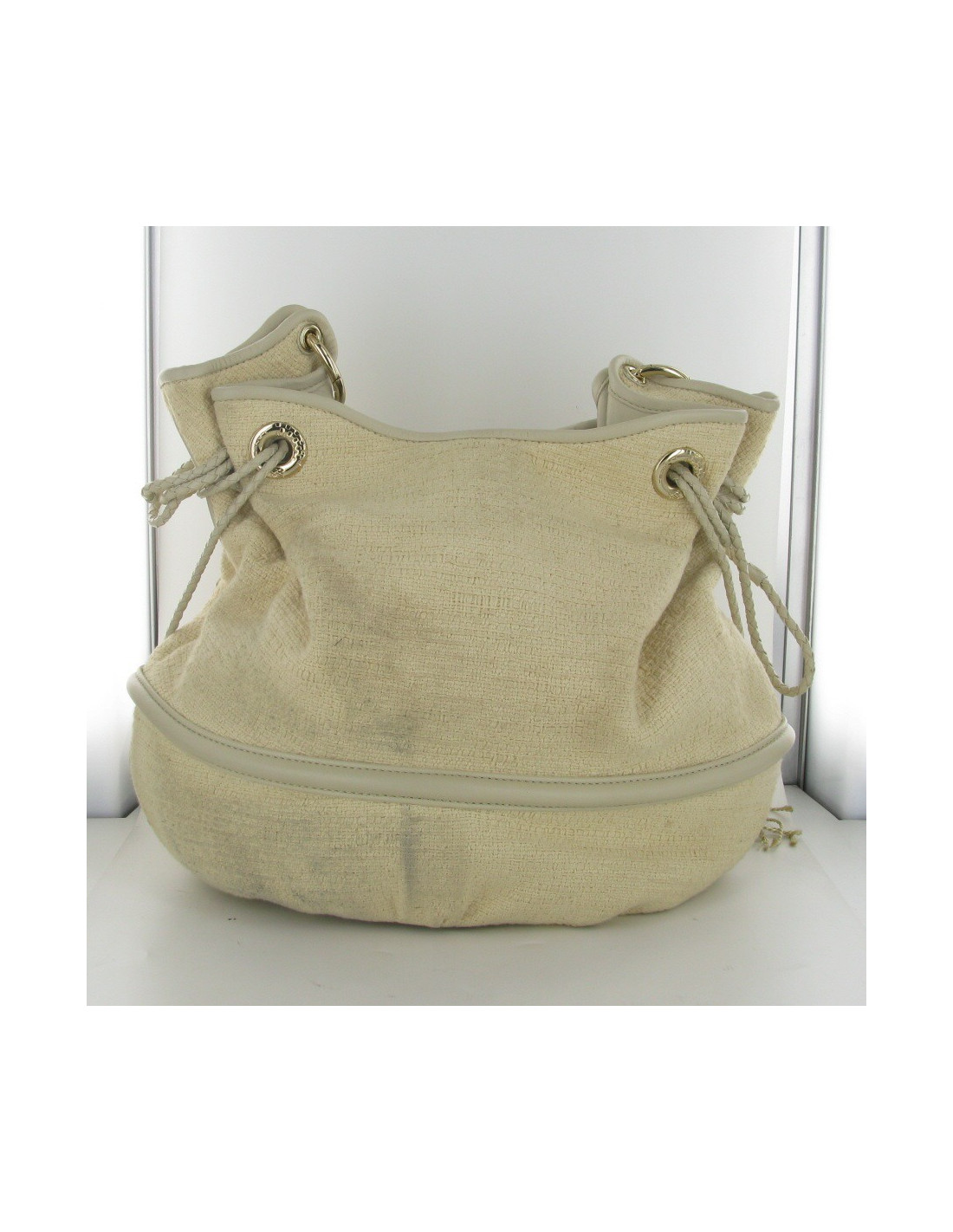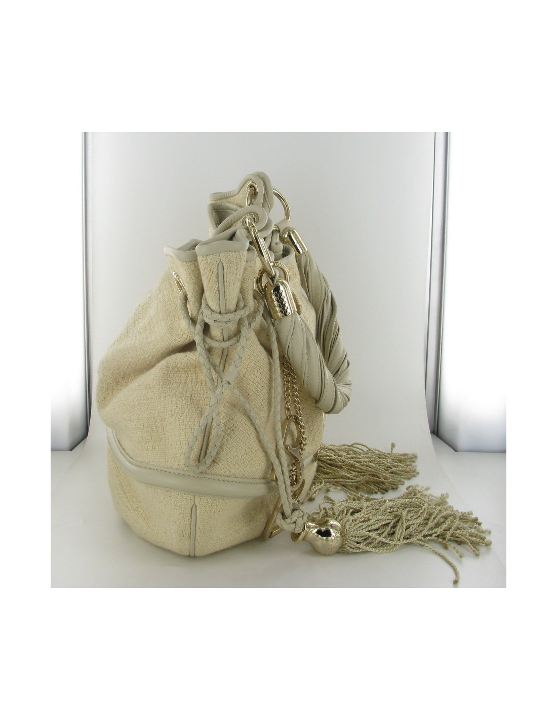 Magnifique sac seau Brigitte Bardot en tweed ivoire LANCEL.