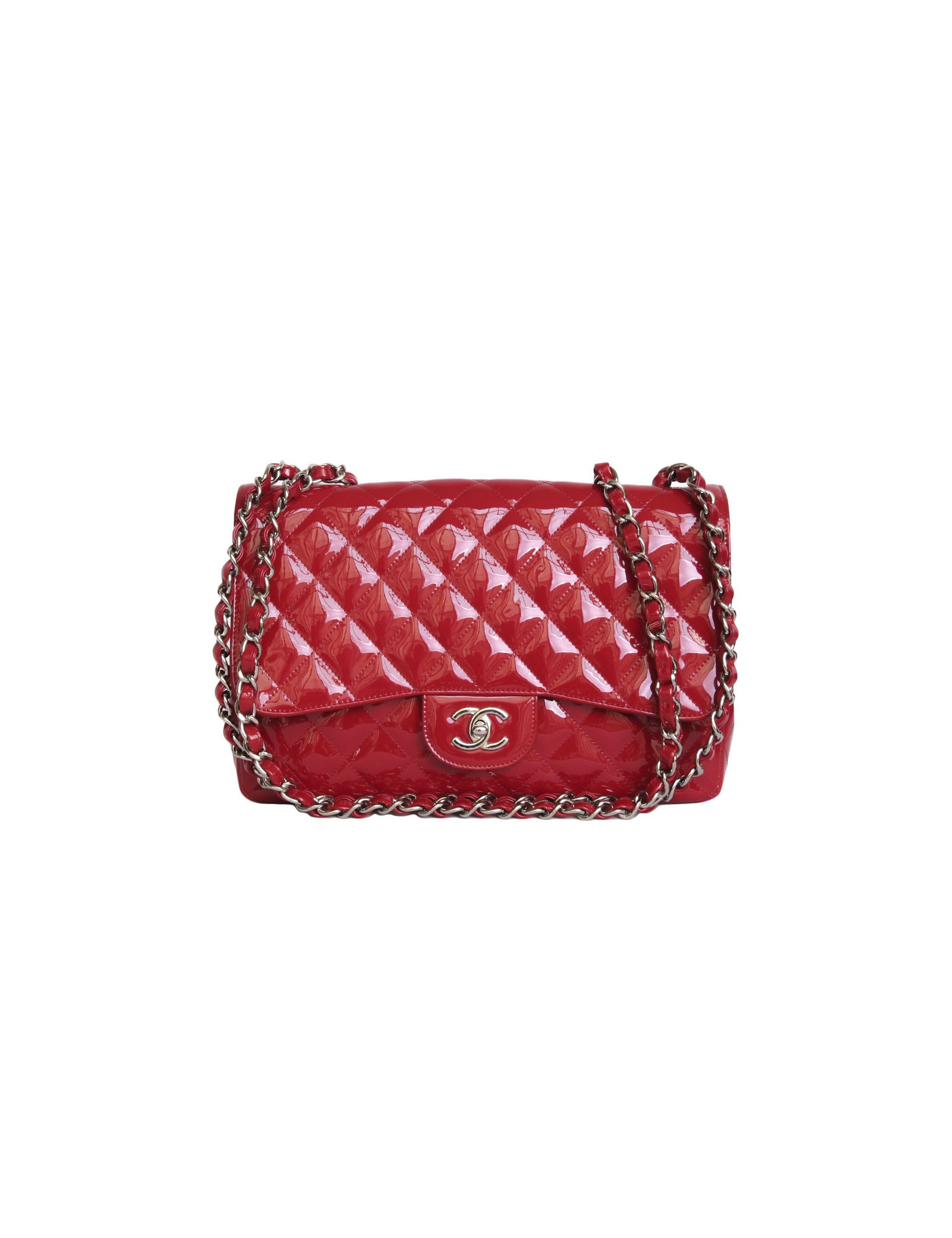 Sac Jumbo CHANEL cuir verni rouge