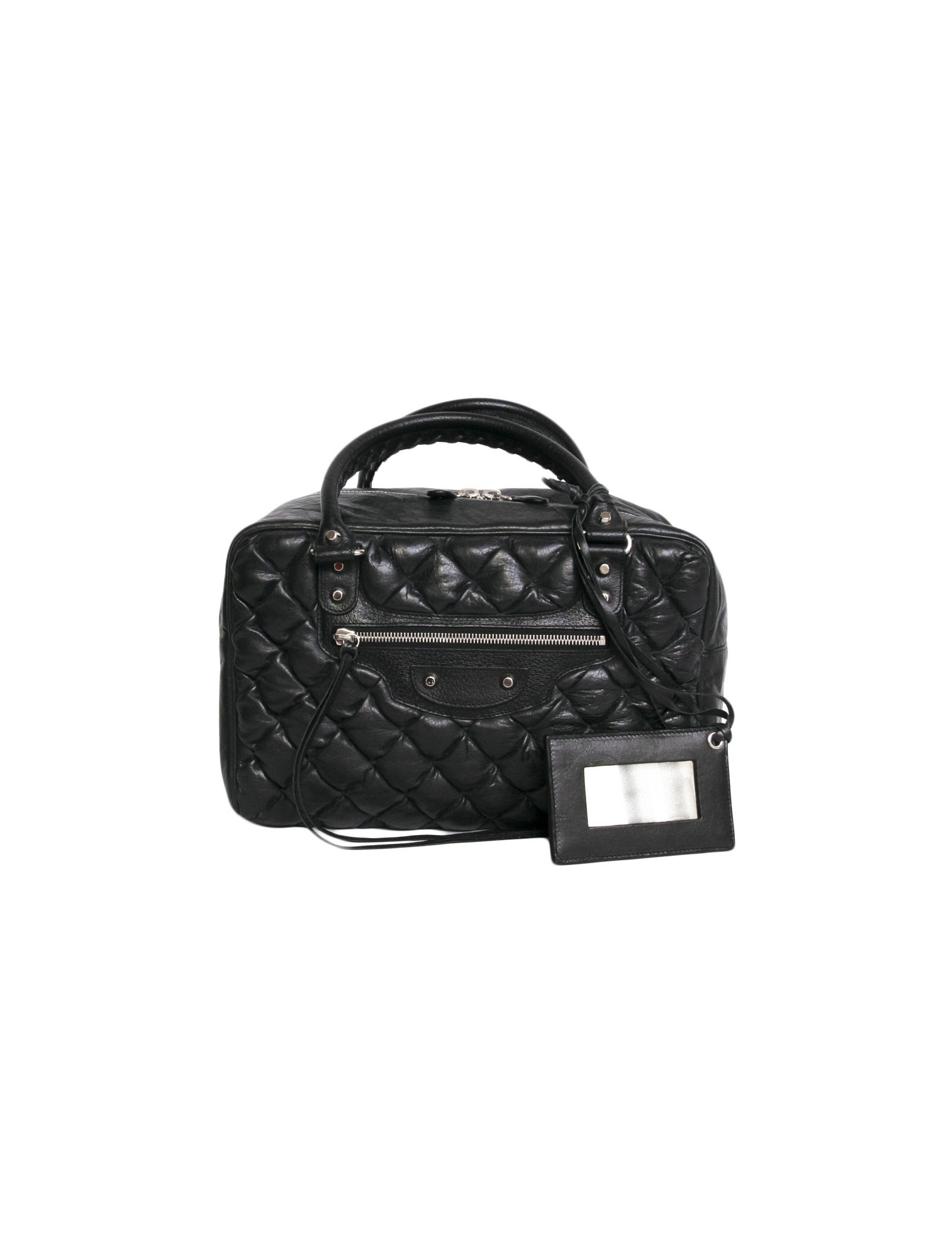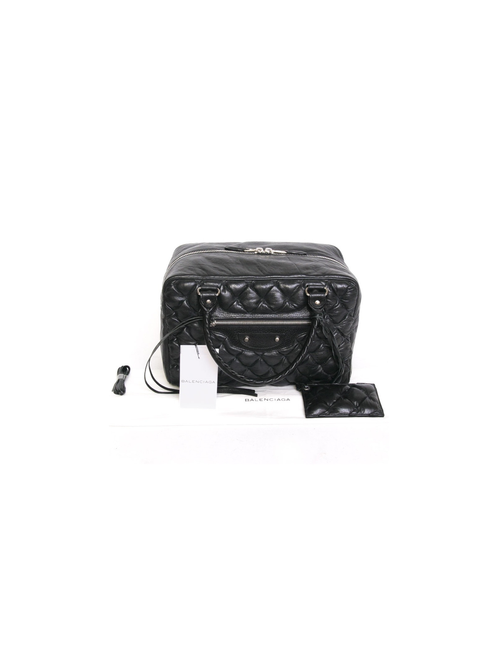 Sac en cuir pleine fleur aniline matelassé Balenciaga Paris, numéroté sous la languette de la marque à l'intérieur.