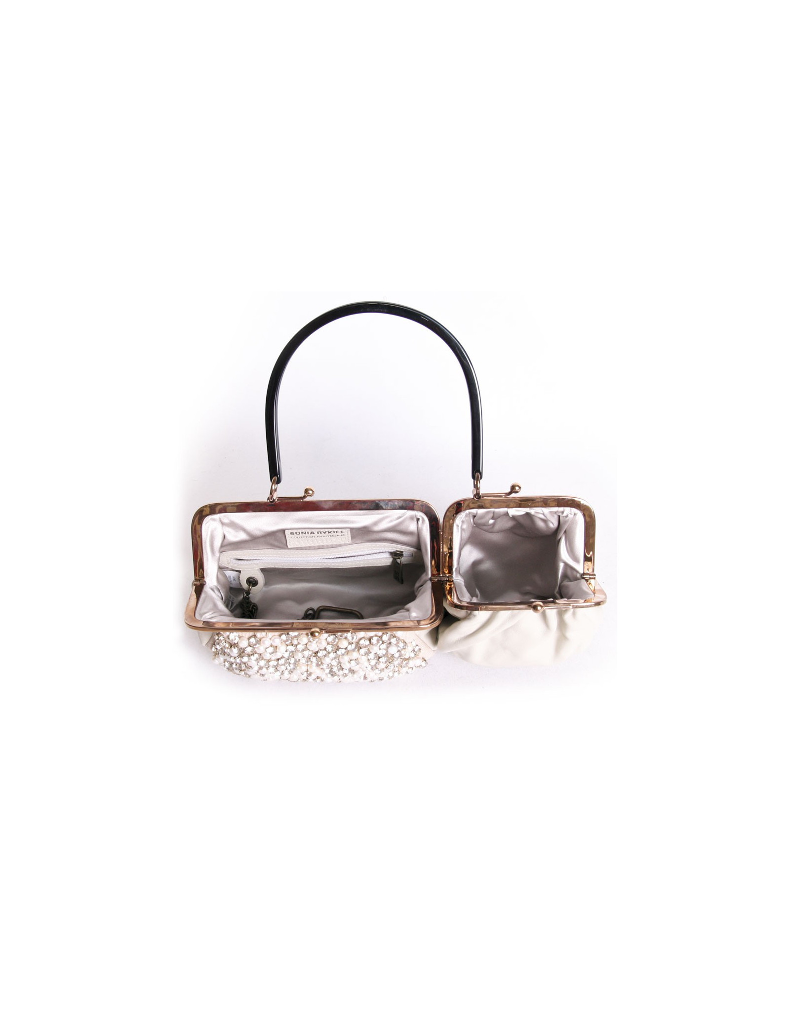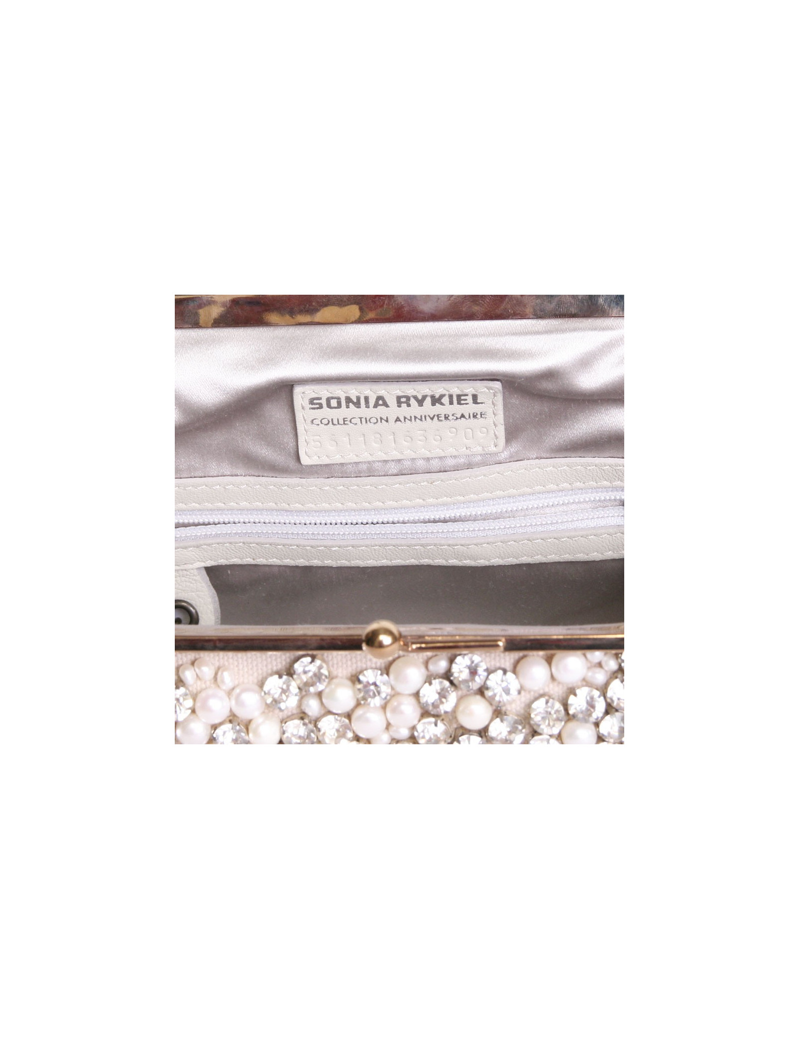 Sac à main SONIA RYKIEL collection anniversaire en cuir blanc et perles