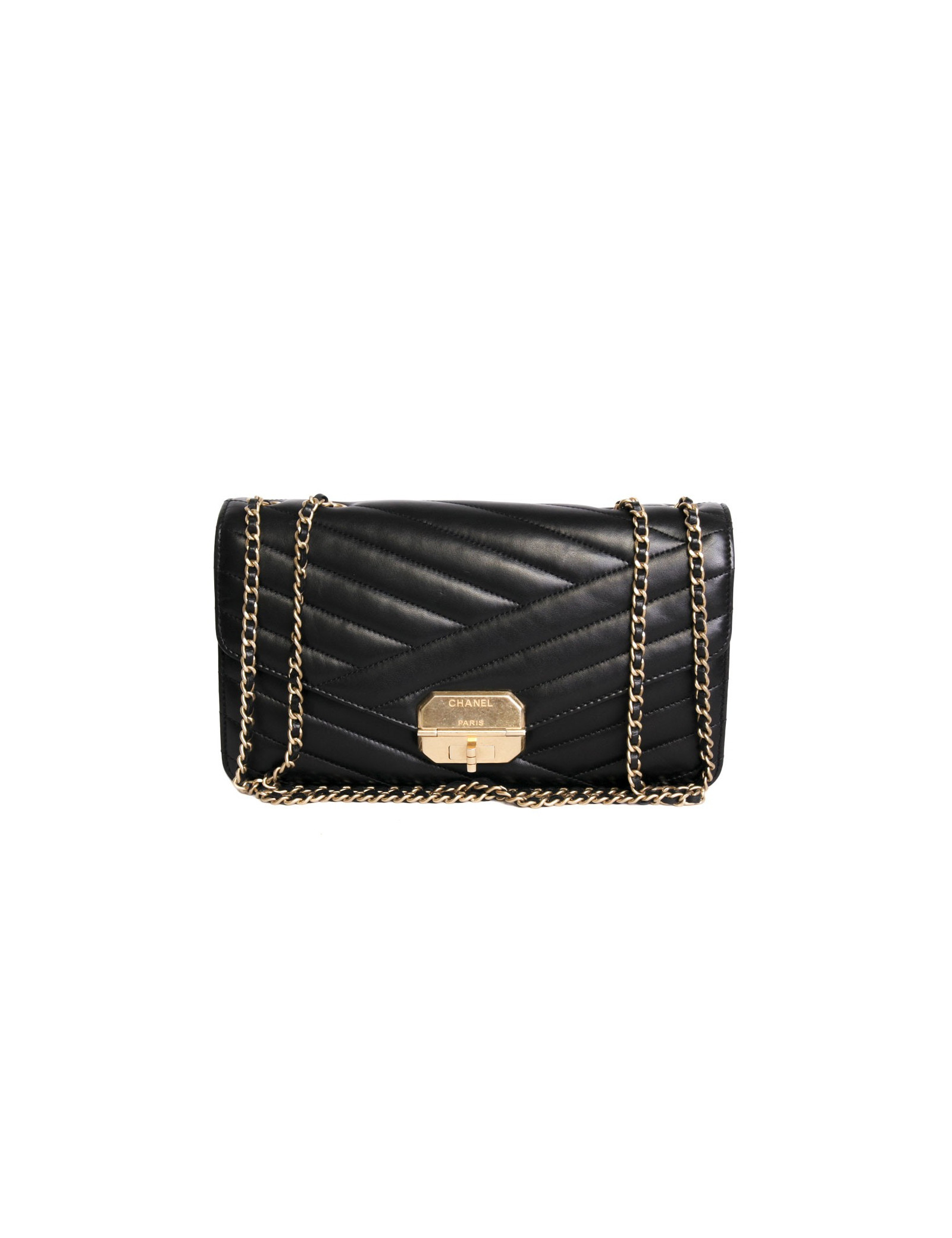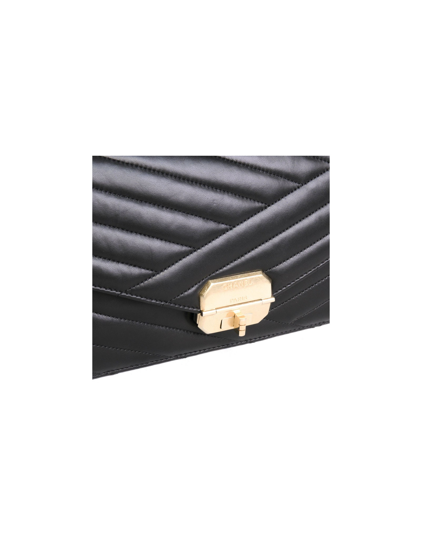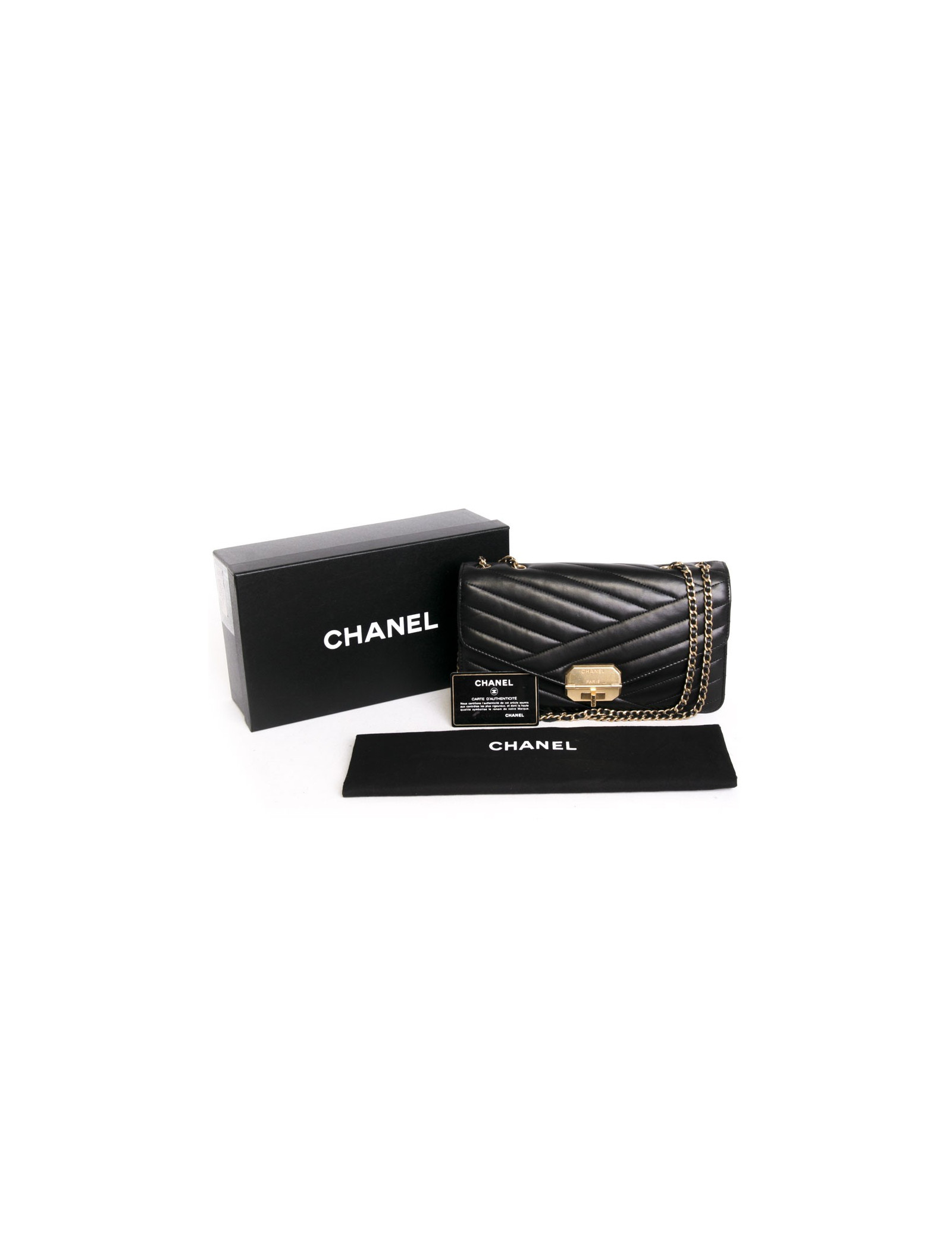 Collection récente. intemporel ! Sac Chanel en cuir d'agneau finement grainé et matelassé "chevron", en très bon état. (très peu porté).