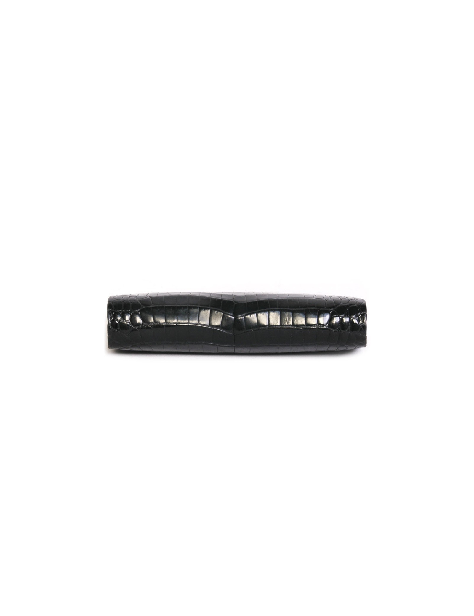 Pochette entièrement en crocodile, finement ornée de métal doré sur les finissions, contient deux poches intérieures, fermeture solide à ressorts, forme "porte-monnaie".