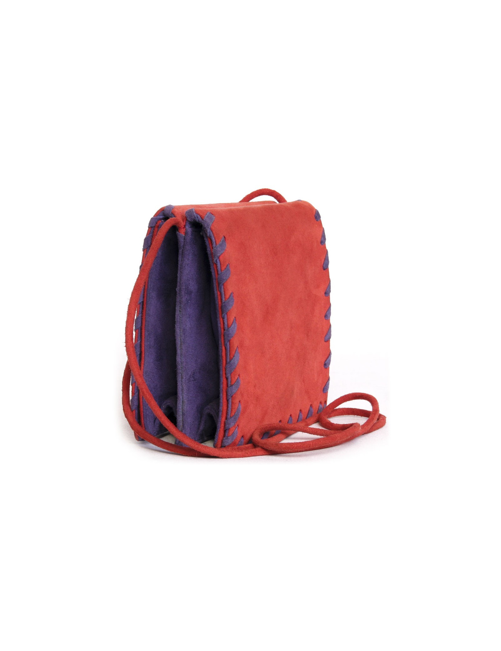 Pochette YVES SAINT LAURENT en veau velours rouge et violet Vintage