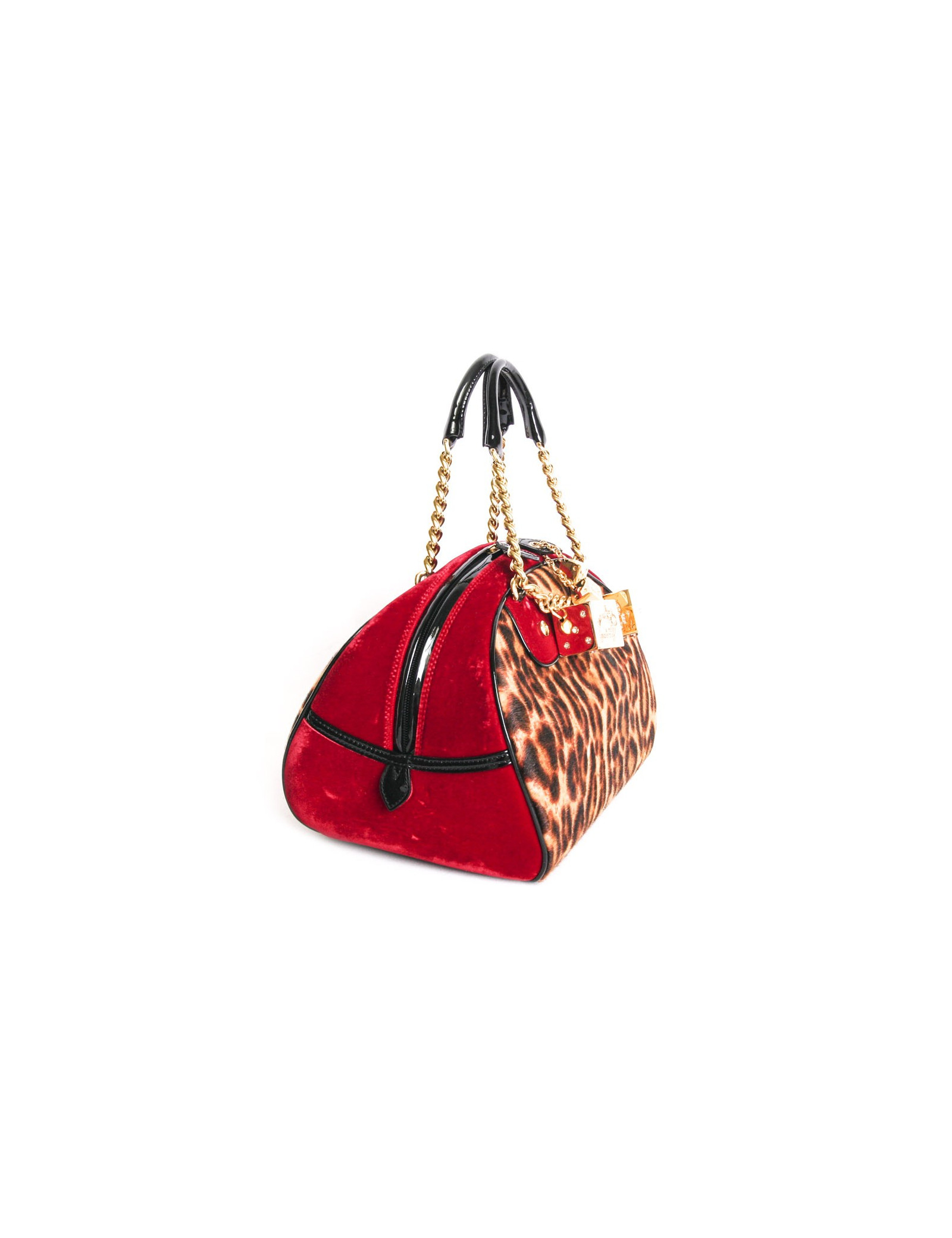 Sac Dior, en poulain façon léopard et velours rouge sur les côté, jamais porté. Le fond extérieur est en cuir verni noir.