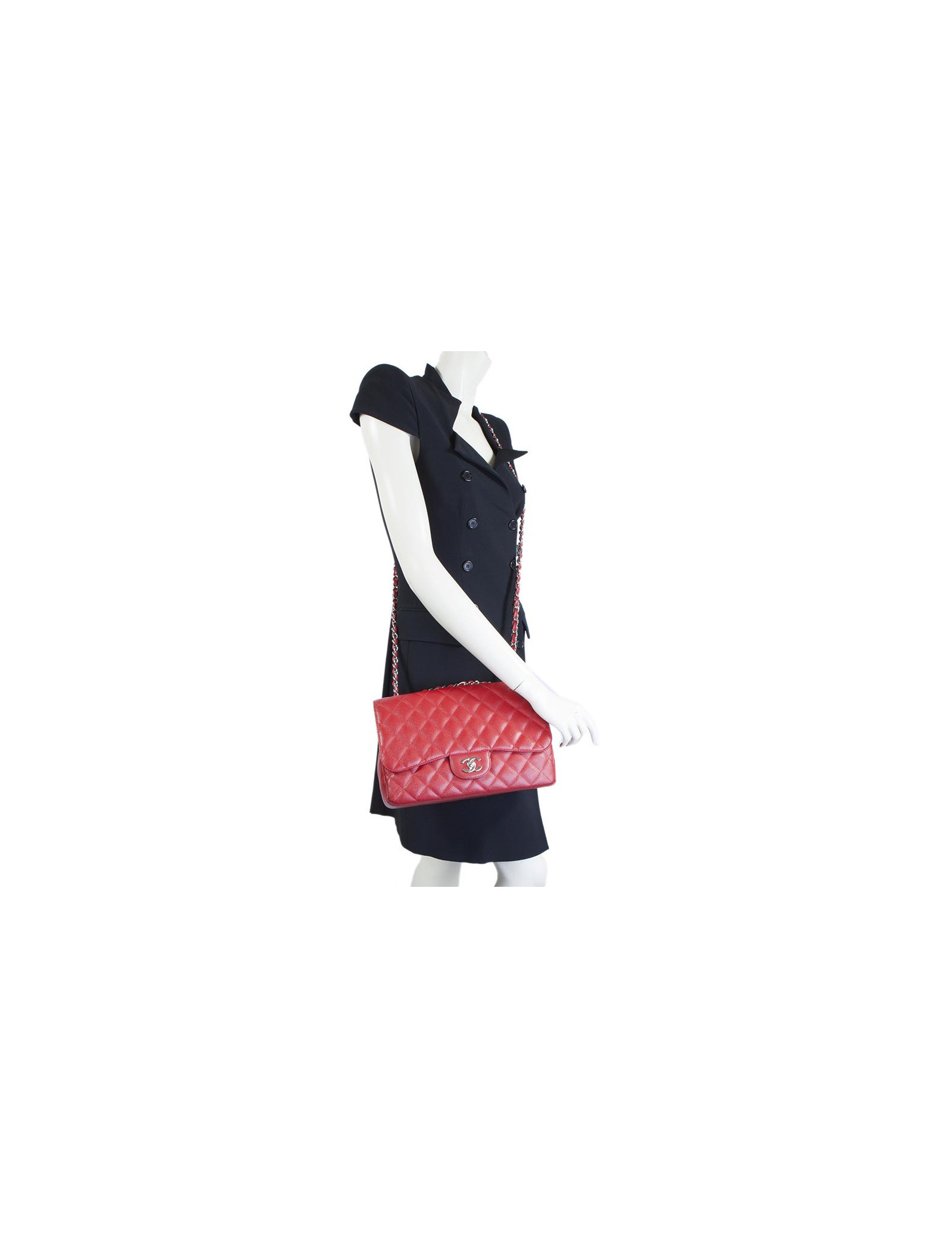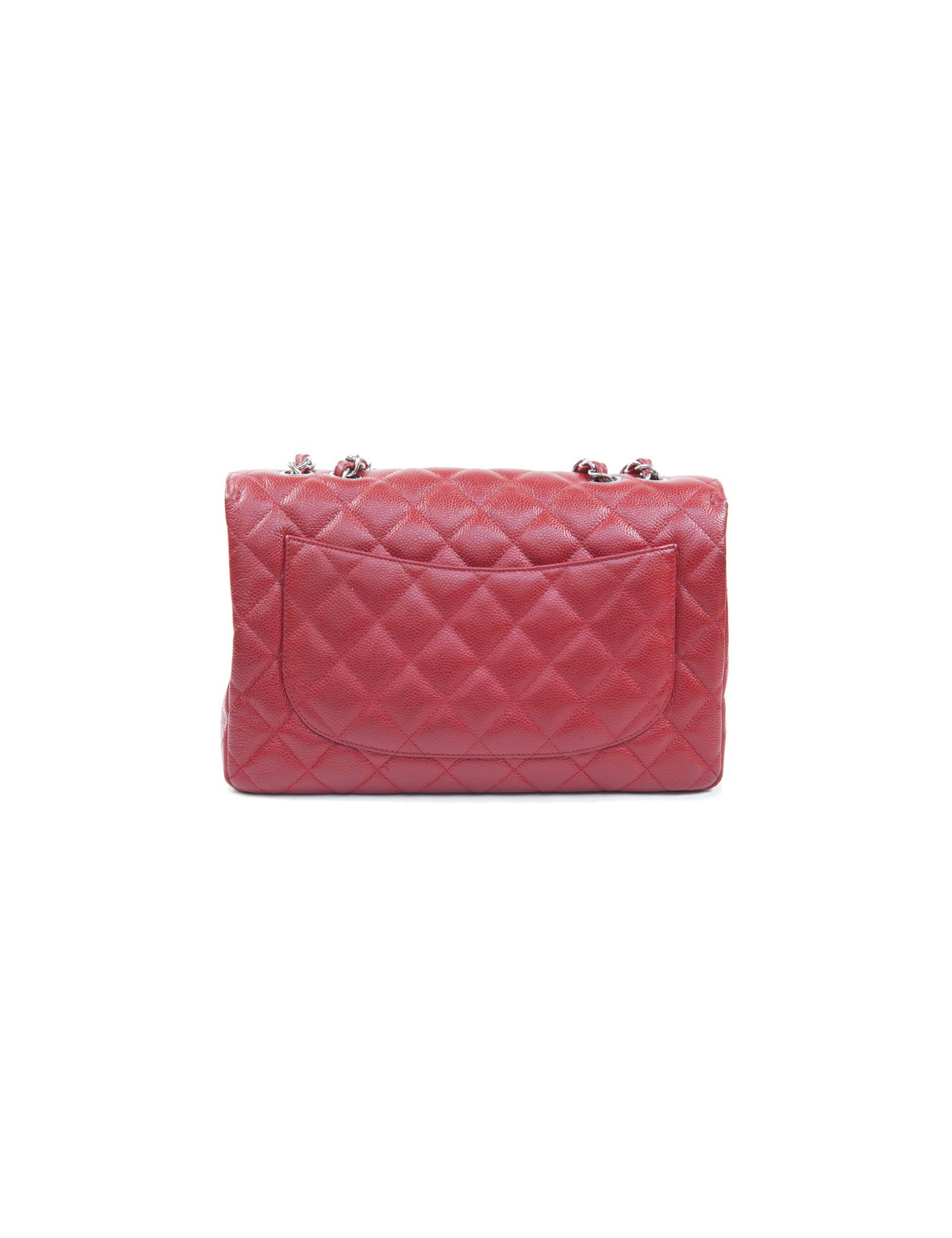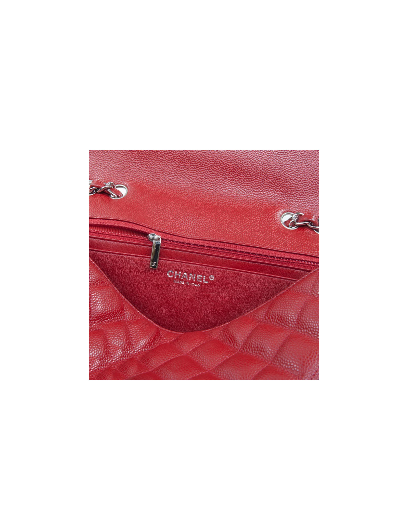 Un grand classique! Superbe sac 'jumbo' de la Maison Chanel en cuir caviar rouge.