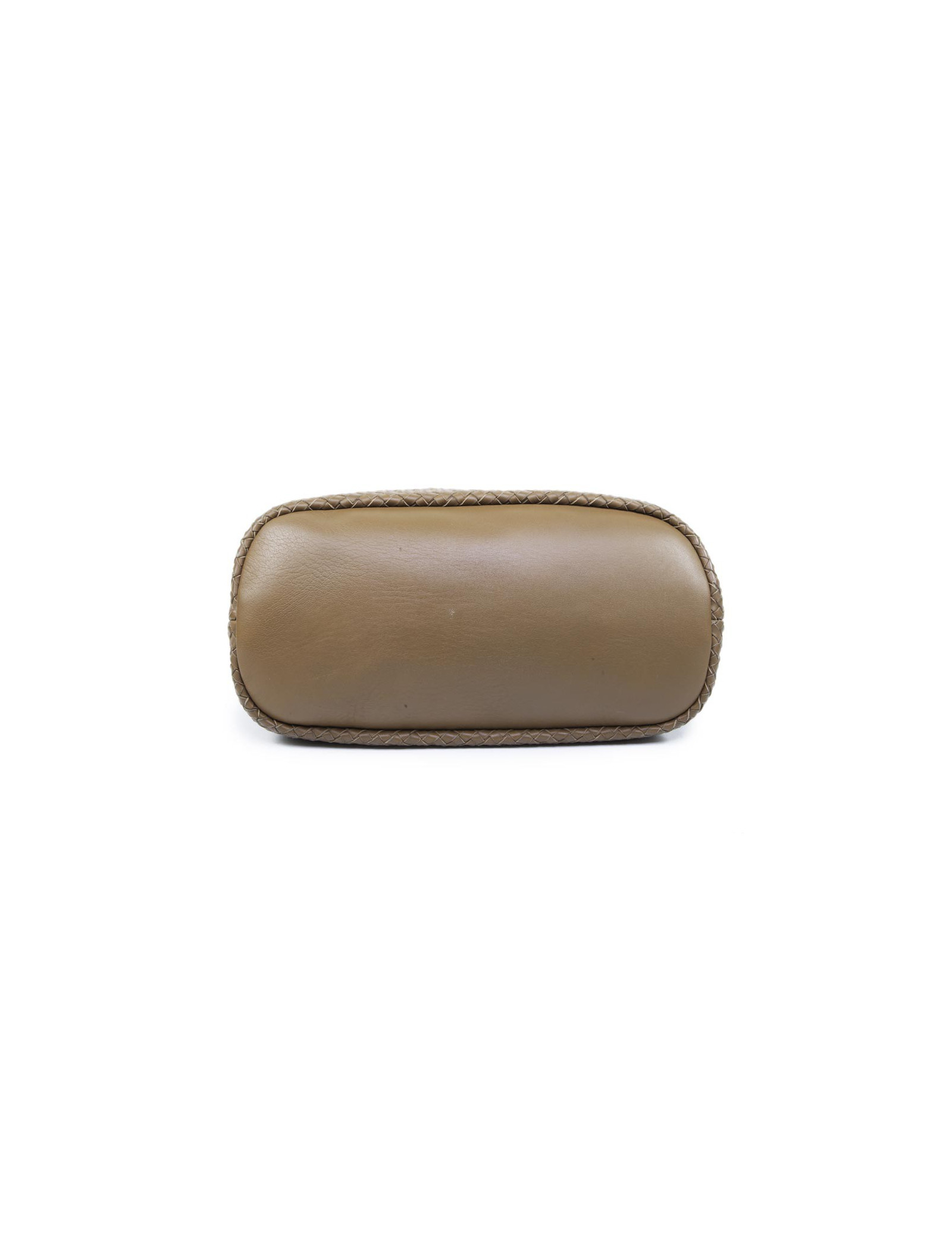 Sac 'Nightingale' de la Maison Givenchy en cuir tressé gold. La bijouterie est en métal doré. Fermeture par un bouton aimanté. L'intérieur est en suède ocre et toile beige avec deux poches dont une zippée. Porté à la main à l'aide de deux anses ou à l'épaule avec sa bandoulière amovible.
