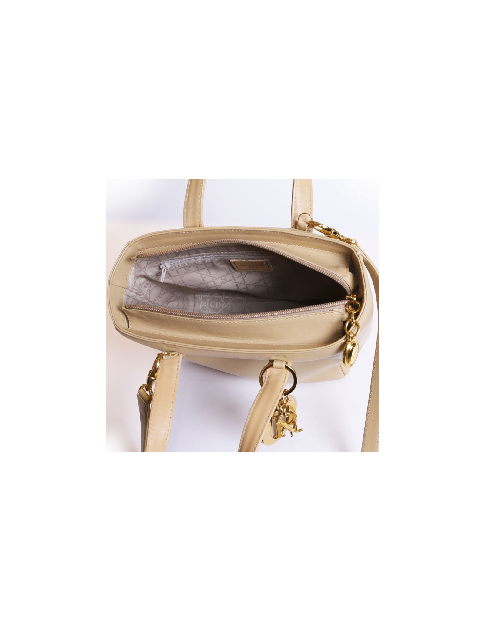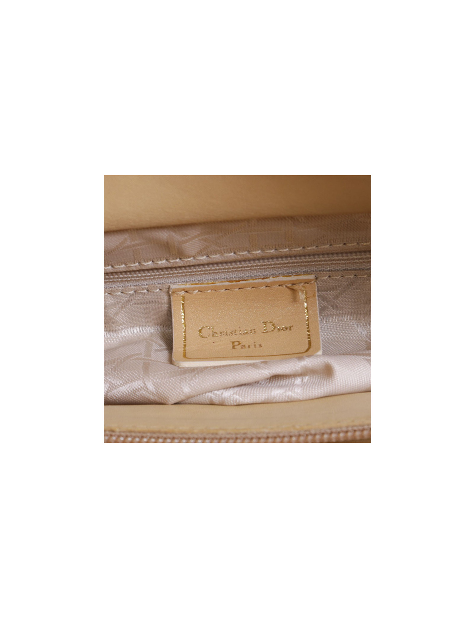 L'indémodable! Sac Lady D de la Maison Christian Dior en cuir lisse beige. Fermeture zippée. La bijouterie est en métal doré. L'intérieur est en toile beige avec une poche zippée. Il peut se porter aussi bien à la main à l'aide de deux anses ainsi qu'à l'épaule avec une bandoulière amovible. En très bon état. Très légère usure d'un des coins sous le sac. Très peu visible.