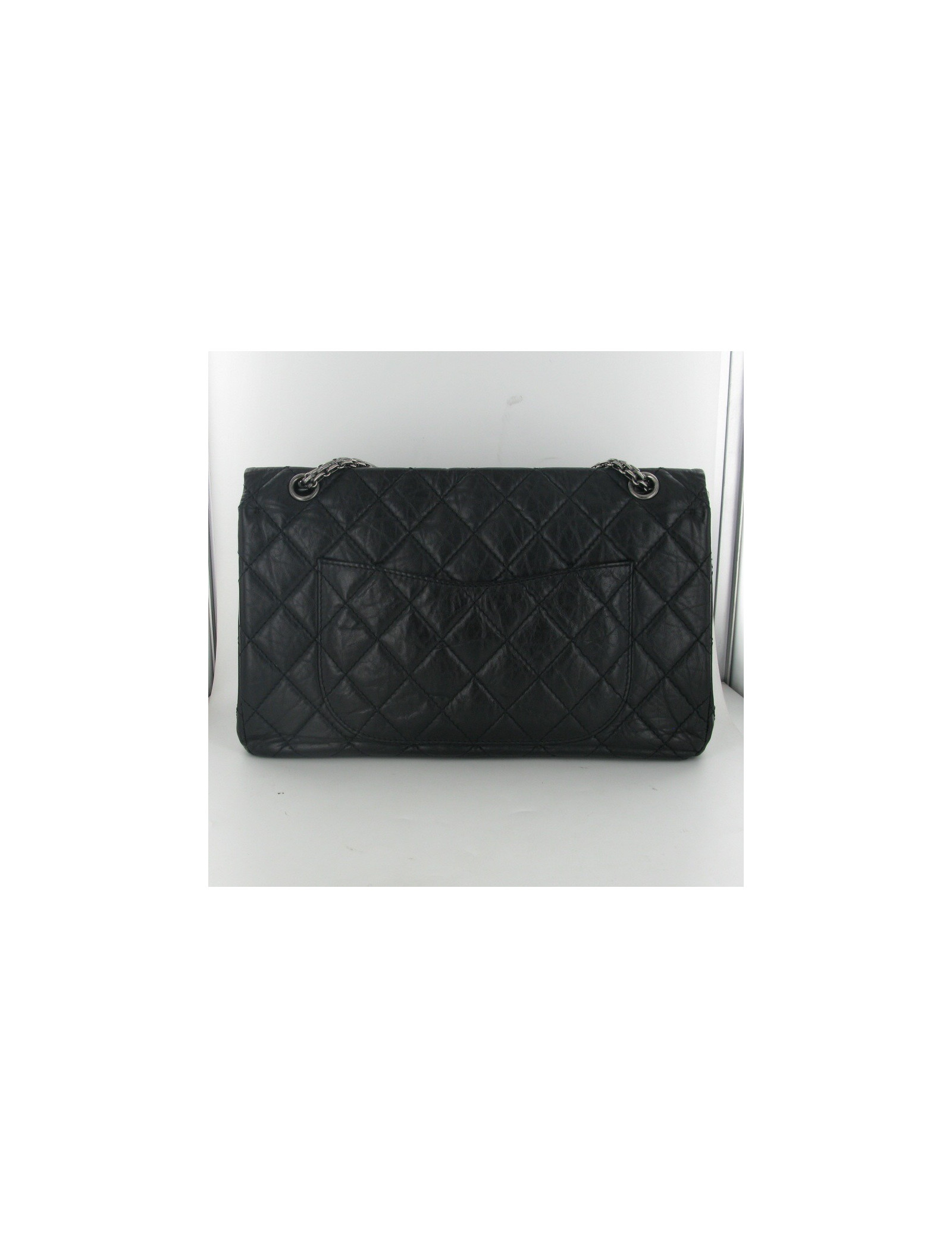 Incontournable 2.55 en cuir vieilli noir CHANEL.
