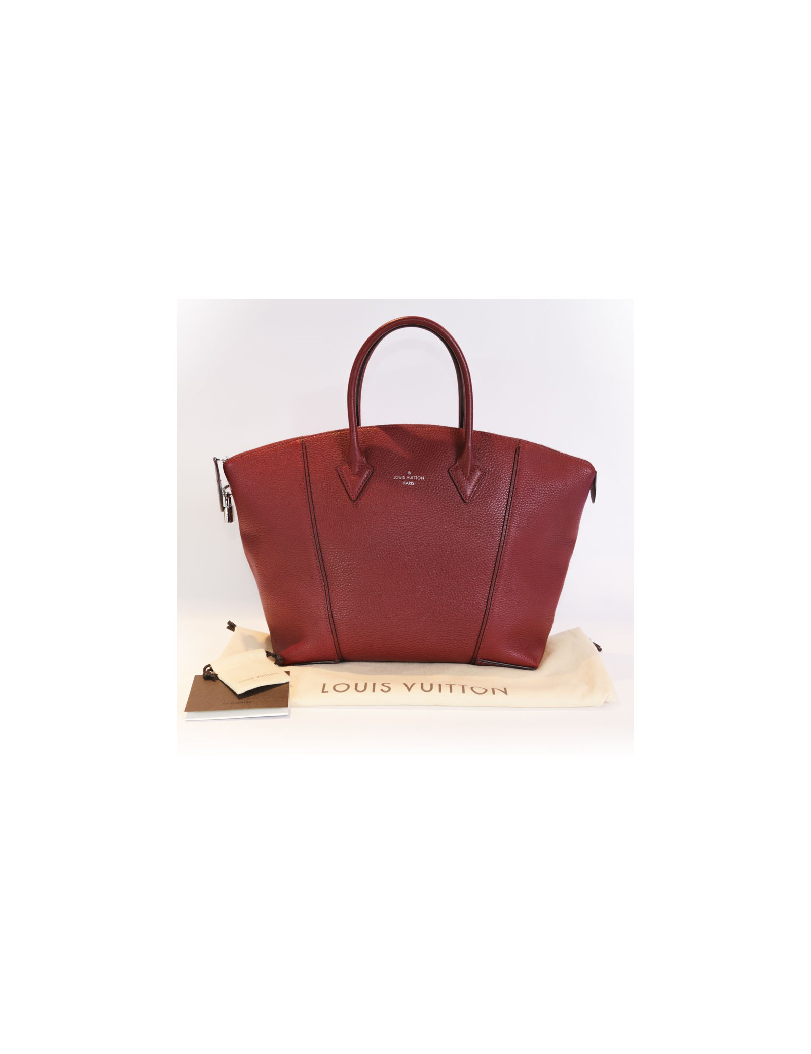 Sac 'Lockit MM' de la Maison Louis Vuitton en cuir de veau cachemire, couleur grenat. Fermeture zippée. La bijouterie est en métal argenté. L'intérieur est en suède grise avec 3 poches plaquées dont 1 zippée. Hologramme AH41...(poche intérieure).