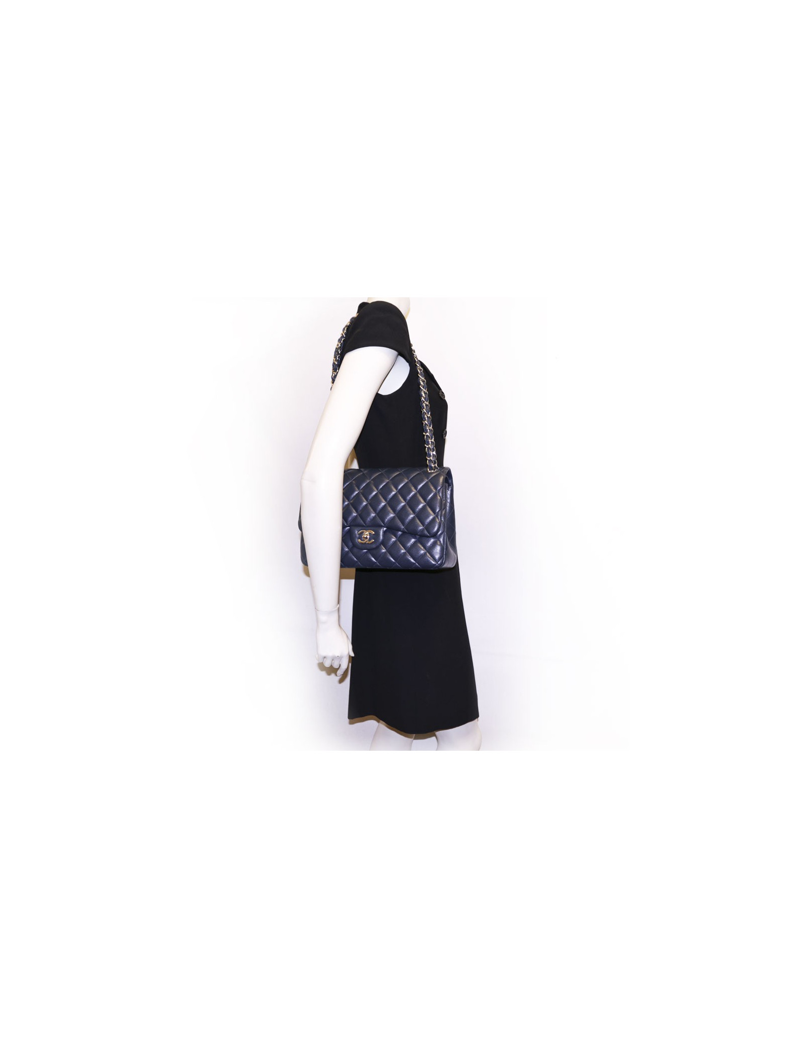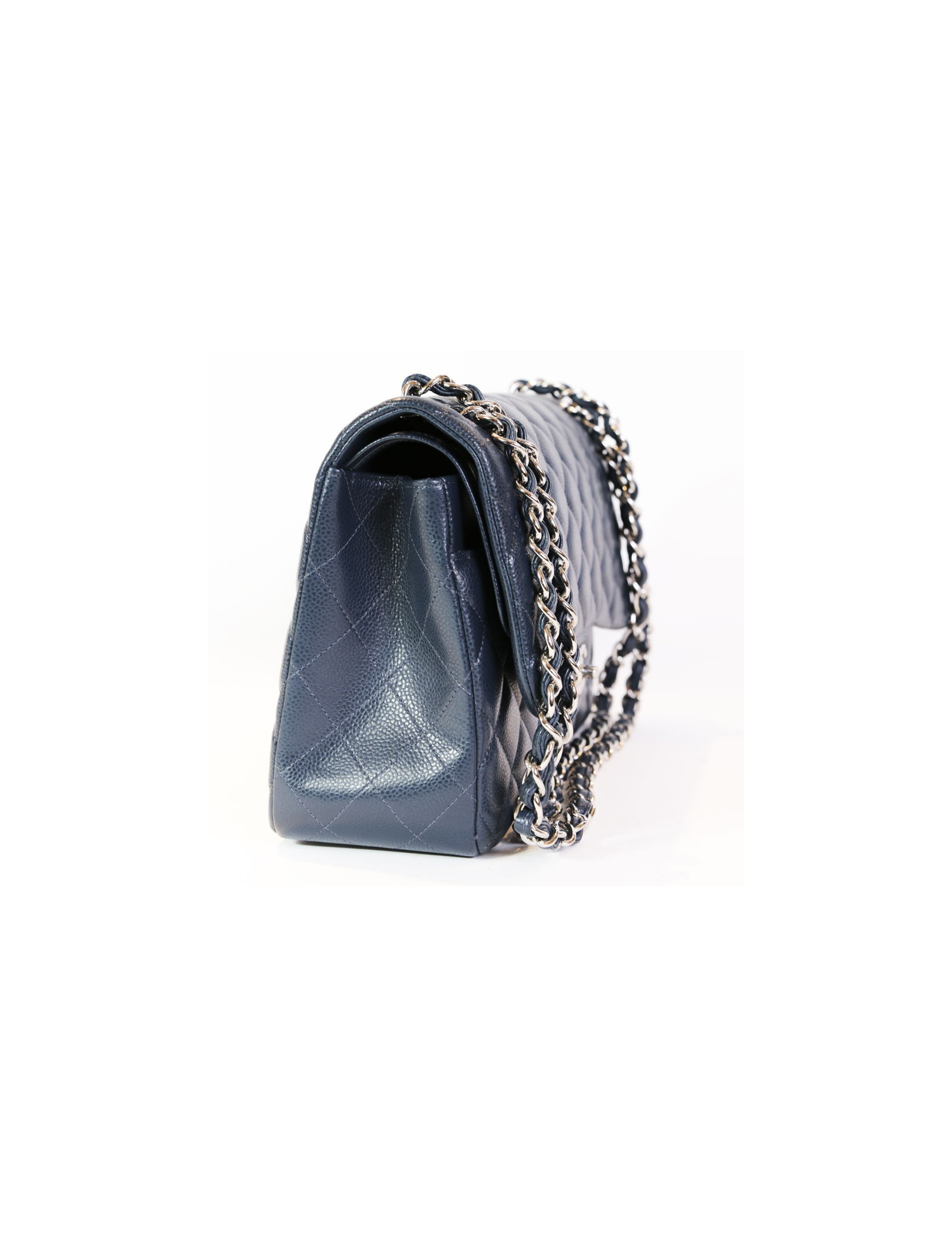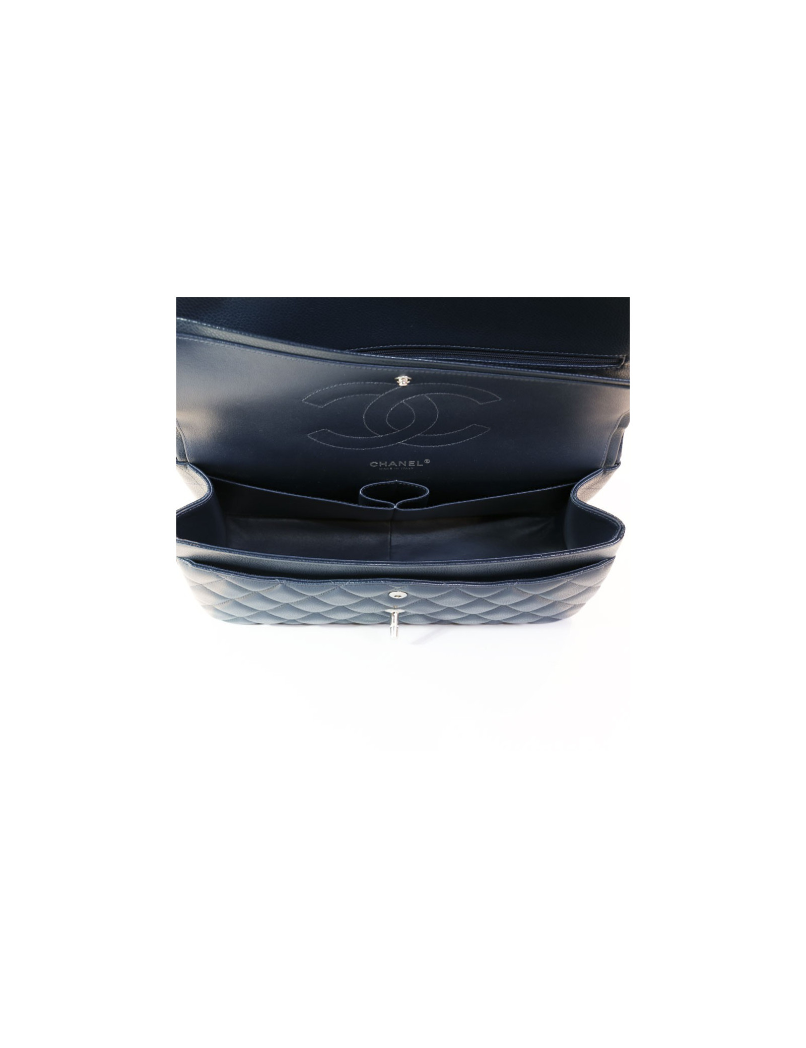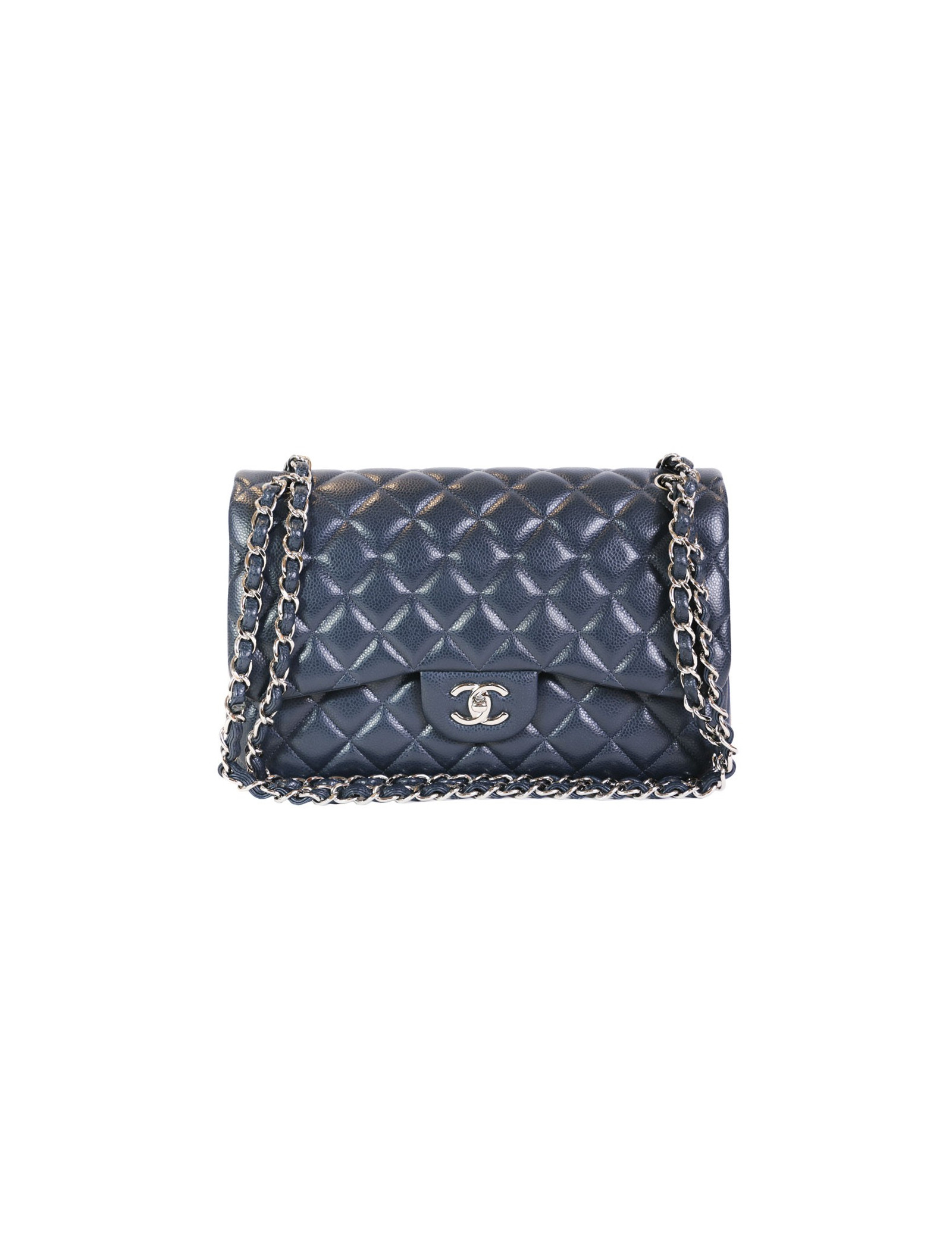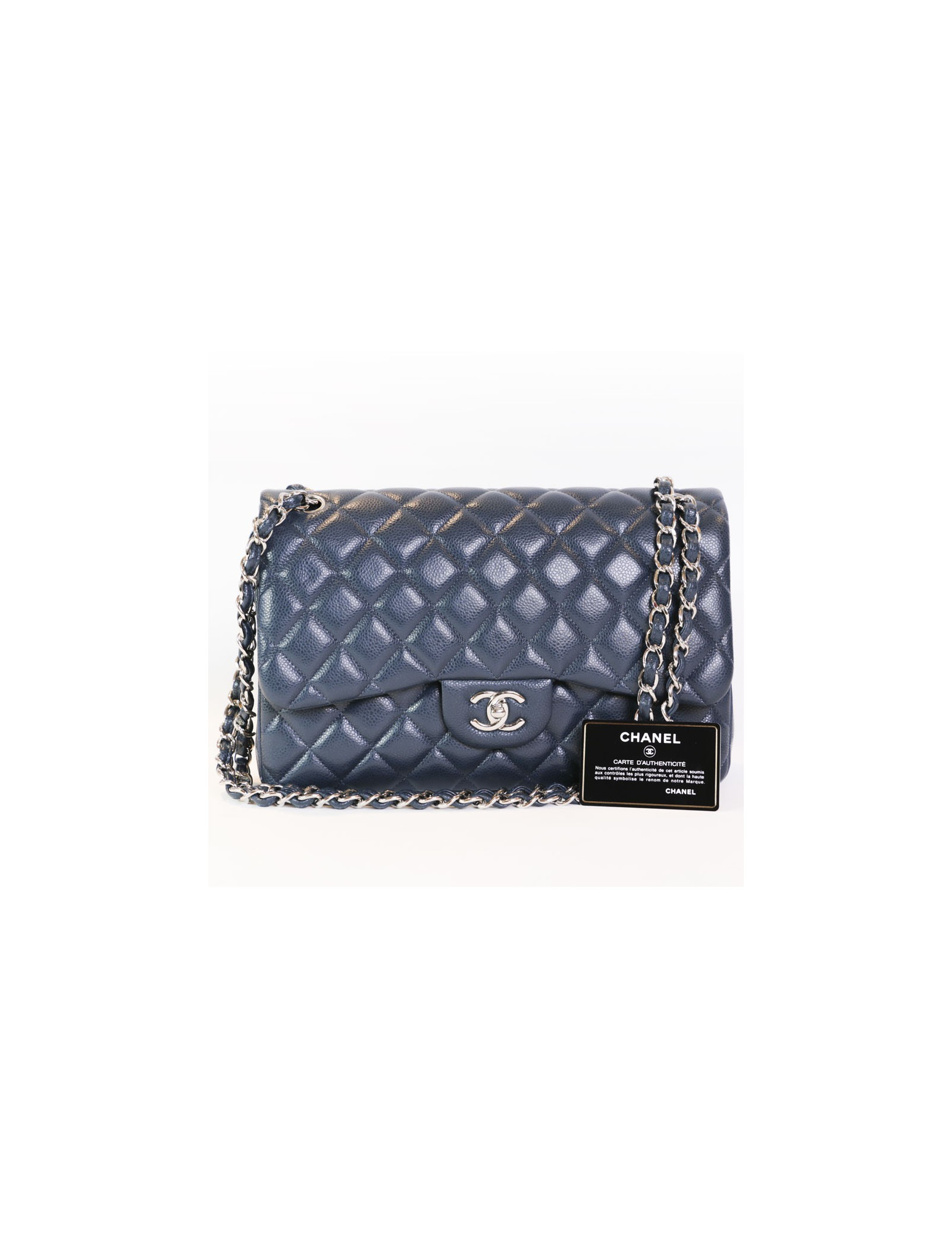 Sac jumbo CHANEL en cuir caviar bleu