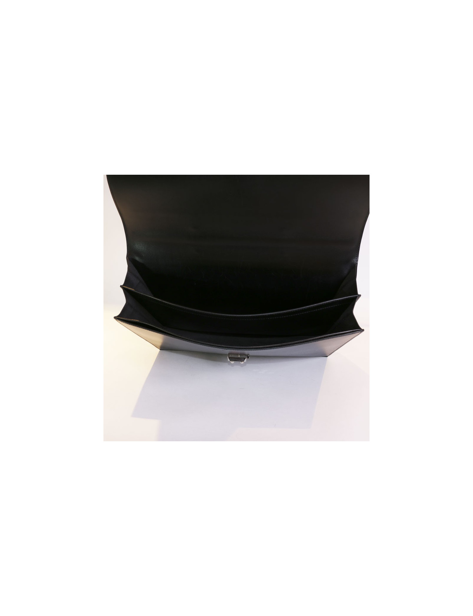 Superbe sac à dépêches de la Maison Hermès en cuir box noir. La bijouterie est en métal palladié. L'intérieur est entièrement doublé en cuir noir avec 3 grands espaces de rangement. clefs + tirette = clochette.En très bon état. Quelques micro rayures d'usage à l'intérieur ainsi qu'à l'avant de la sacoche. Très peu porté.